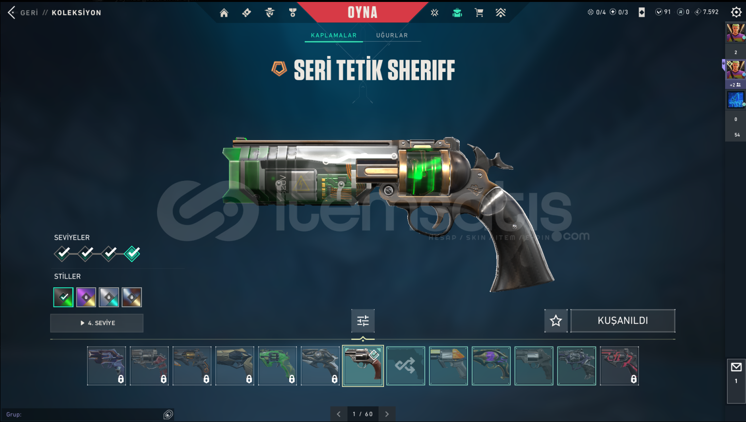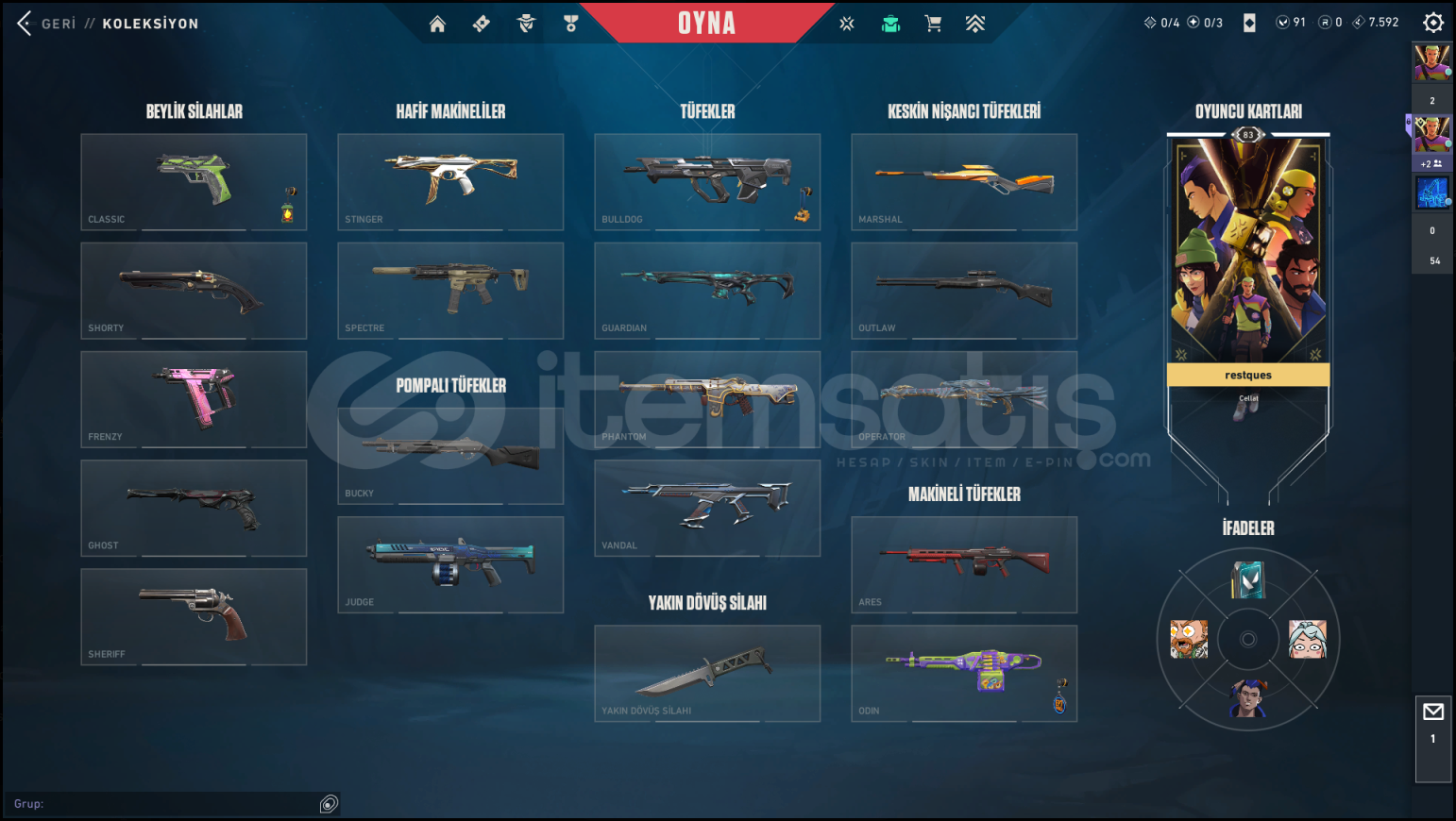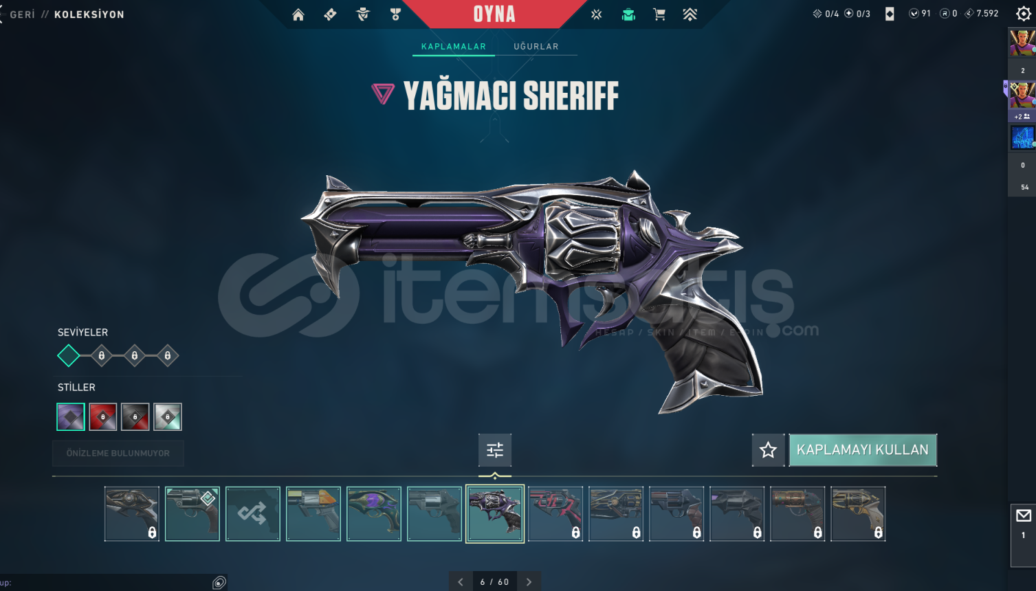 Valorant Uzun Süredir Ranked Oynanmamış, Keyifli Şekilde Rank Kasılacak bir hesaptır.Hesabın İçerisinde ;RGX Classic, Yağmacı Ghost, Seri Tetik Sherrif, Yağmacı Sherrif, Fatih Stringer, Özel Harekat Spectre ,Sihirpunk Spectre, Protokol Bulldog ,Afet Guardian Oni Phantom, Asil Phantom, Kuronami Vandal, Ejderin Buyruğu Vandal, RGX Vandal, Yağmacı Vandal, Yıldız Belası Vandal, Ejder Ateşi Oper...