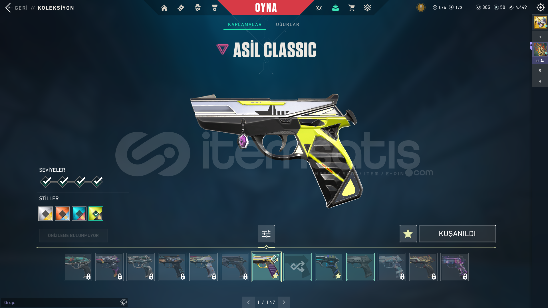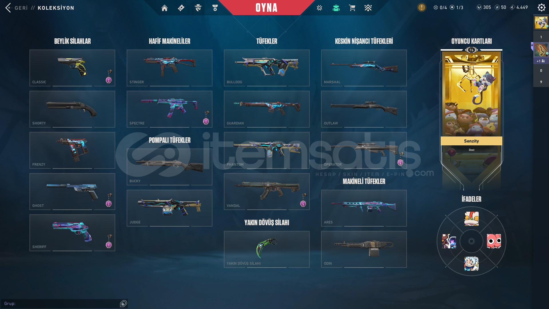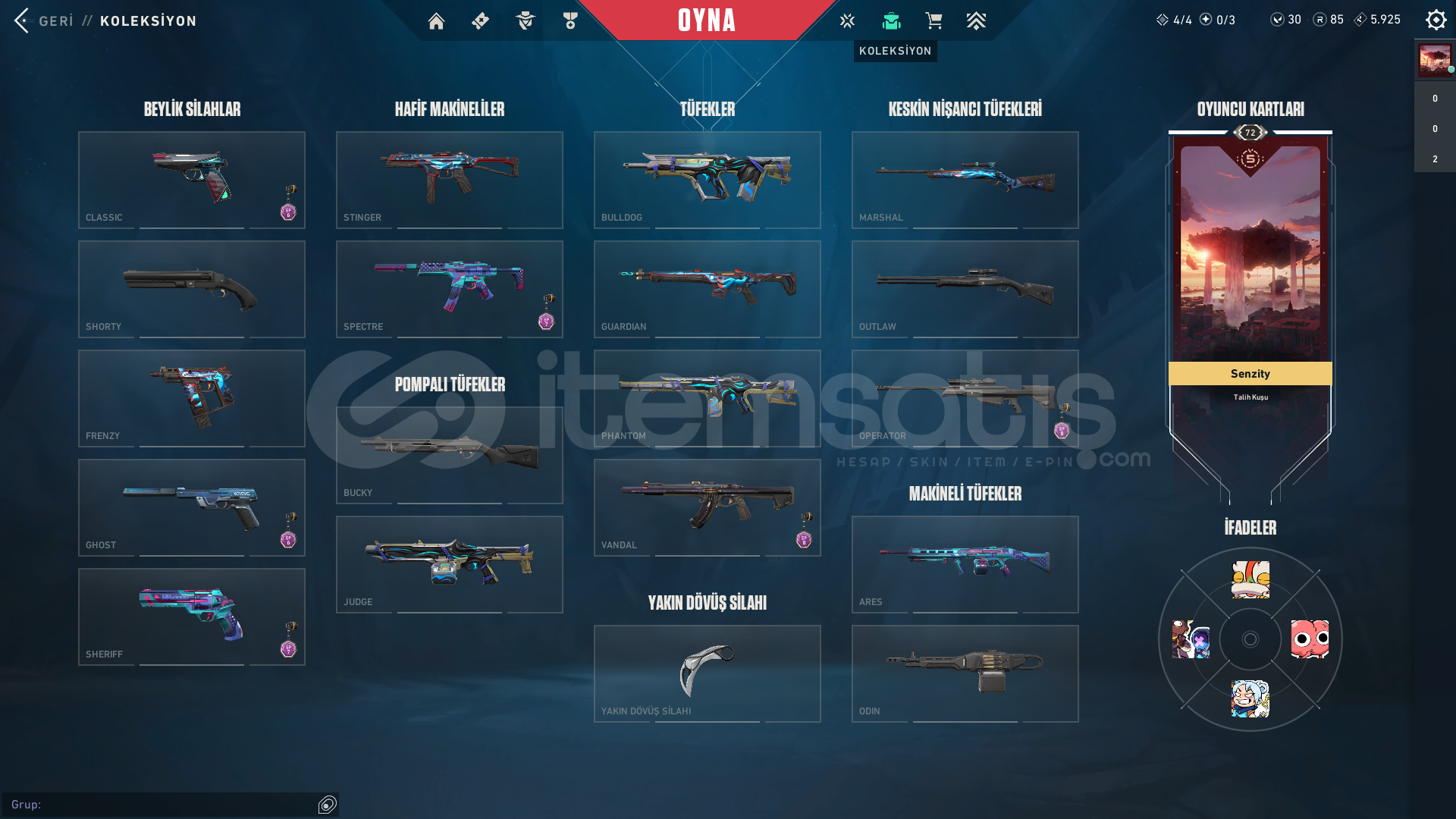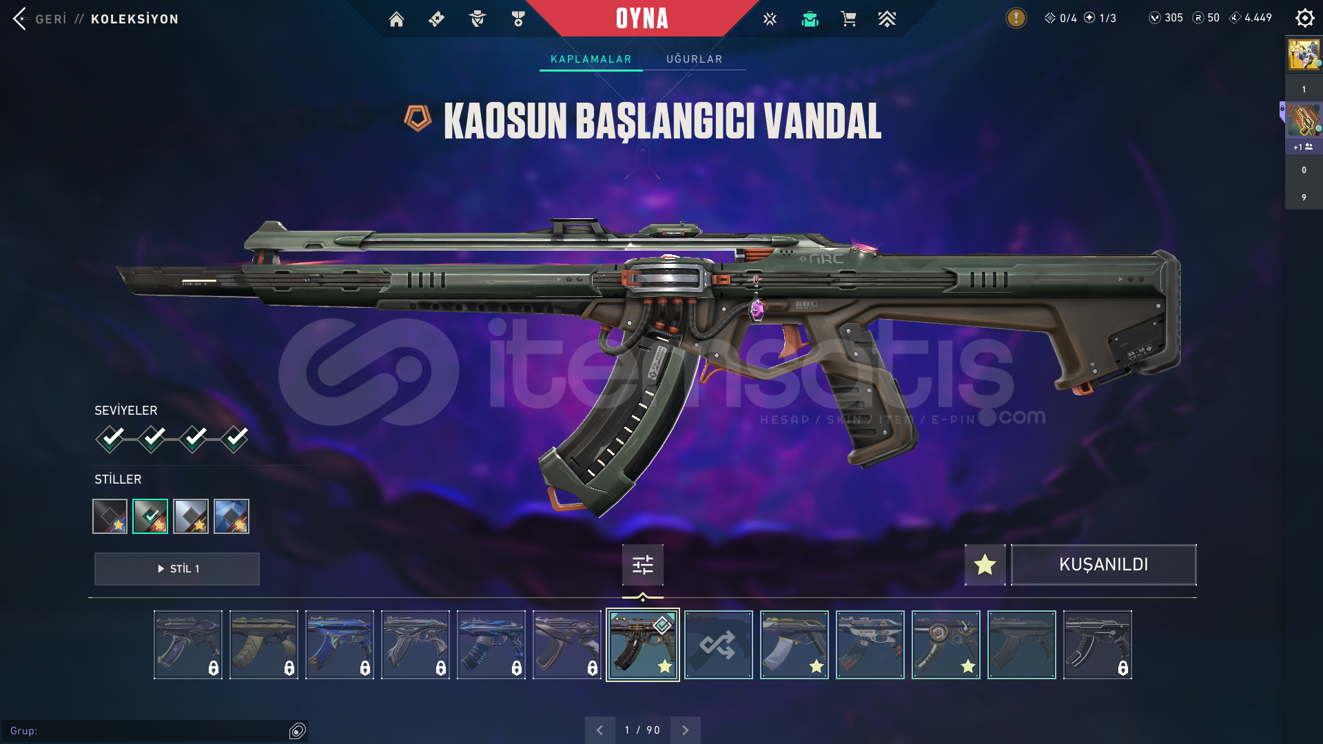 HESAPTA KAOS VANDAL ASİL VANDAL KÖKEN VANDAL İYON KARAMBİT ASİL CLASSİC BULUNMAKTA VE ÇEŞİTLİ BATTLEPASS SKİNLERİ BULUNMAKTADIRHESAP 76 LEVELDİR PLAT 1 MAİL DEĞİŞİMİ YAPILACAKTIRMAİNLEMELİK ÇOK GÜZEL BİR HESAPTIR ALANA HAYIRLI OLSUNPAZARLIK YAPILIR