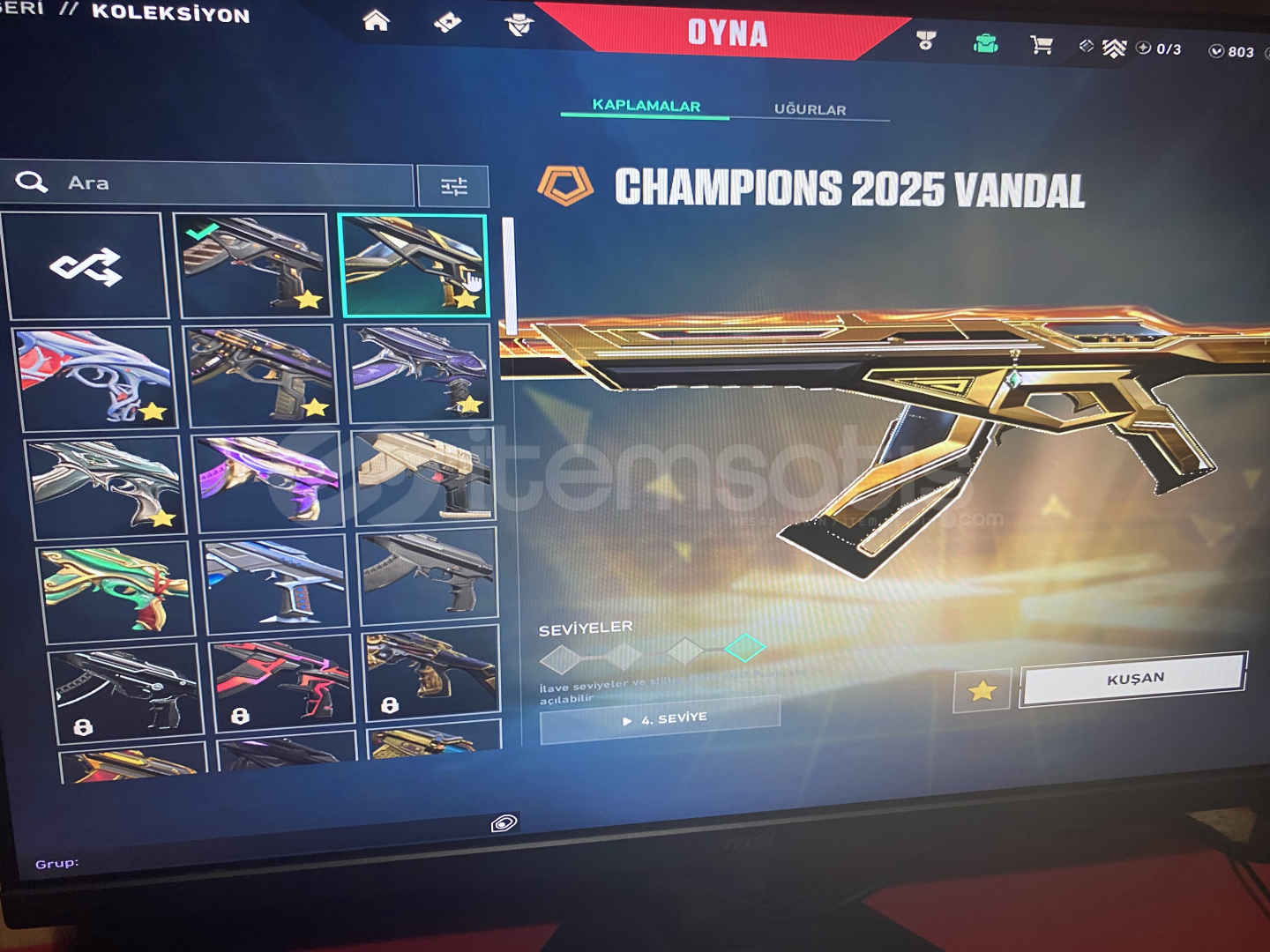 İçerisinde 7-8 tane vandal 3-4 tane phantom iyon bucky yitik ıperatör faz kotuyu bıçak şhampions bıçak hepsi görselde mevcut