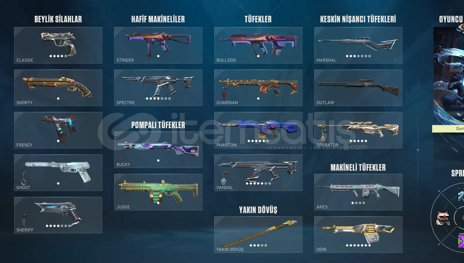 Hesabı oynamadığım için satıyorum çok seviyorum ama bilgisayarım kaldırmadığı için satmak drumunda kalıyorumHesap İçeriğiBıçak: Kuronomi,Rgx katana,Rgx kelebek,İyon karambit,Semaci Yelpaze,Uzaylı avcısı afet hancerbpVandal: Kuronomi,Asil,İyon,Oni,Neptün,Rgx,YitikPhantom: Radiant entertainment,İyon,Zamanın ötesiSpectre: Asil,KuronomiOdin: AsilClassi...