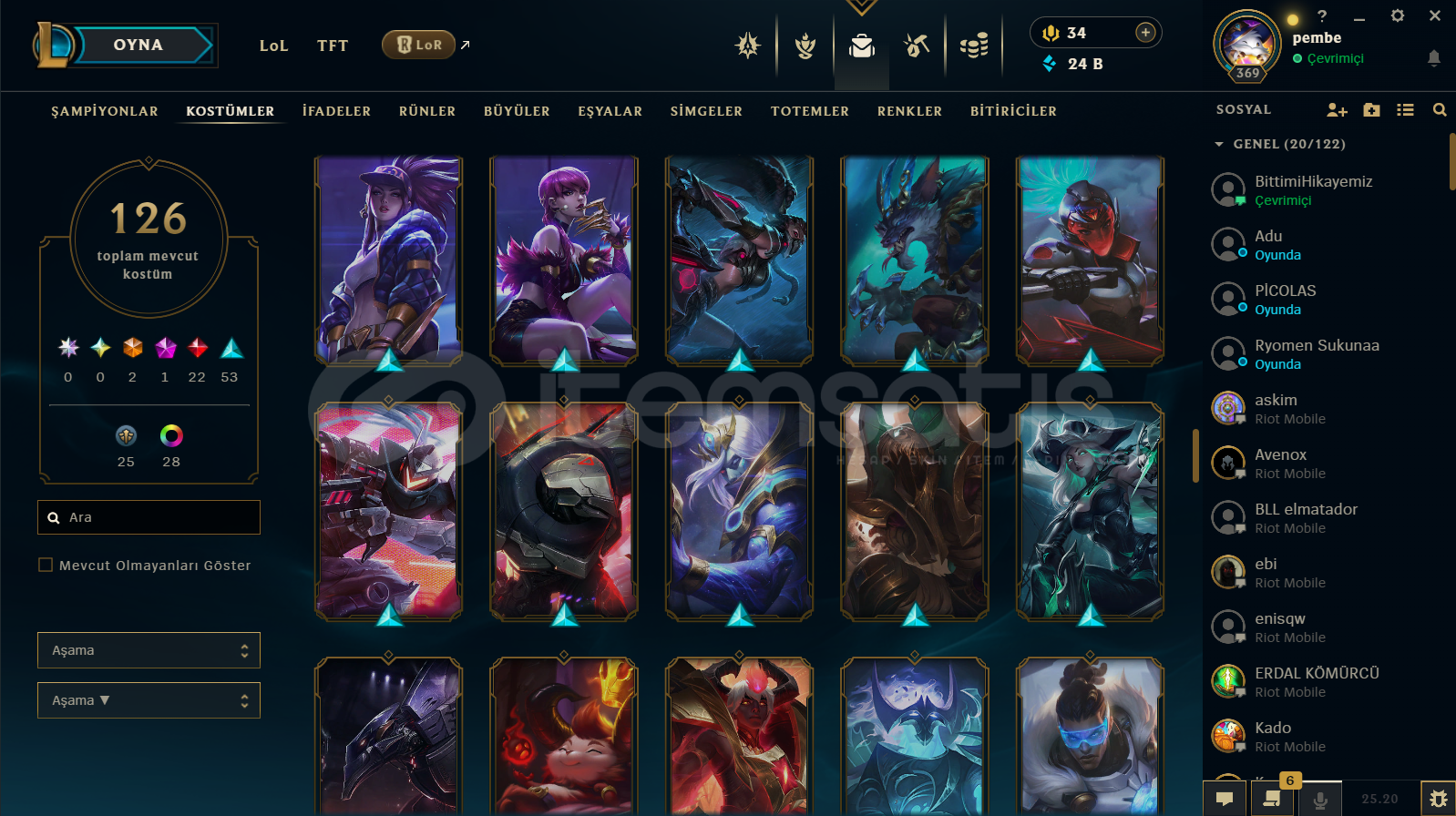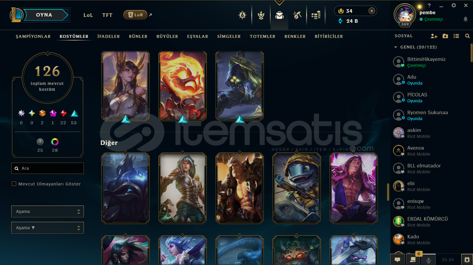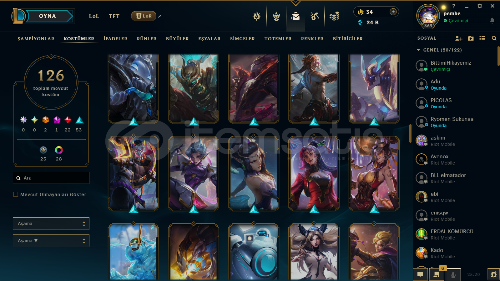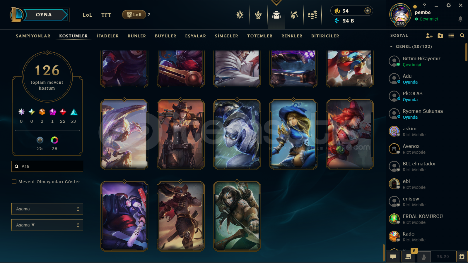 Not: Hesapta ekstra olarak battle pass skinleri de mevcuttur.