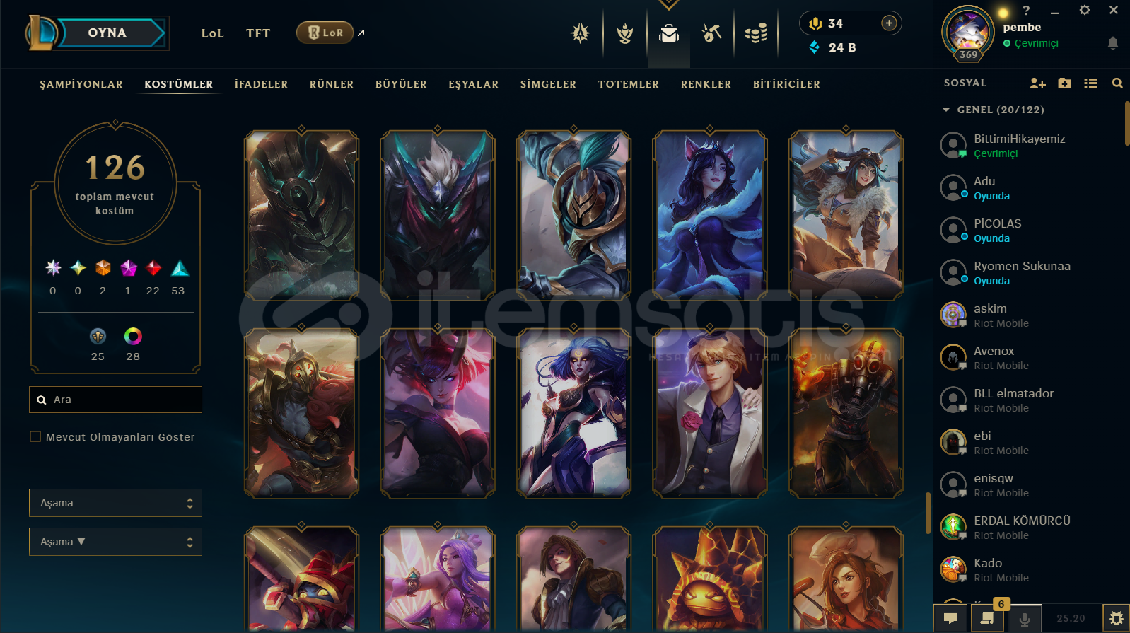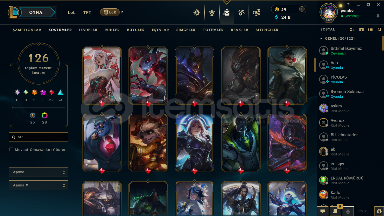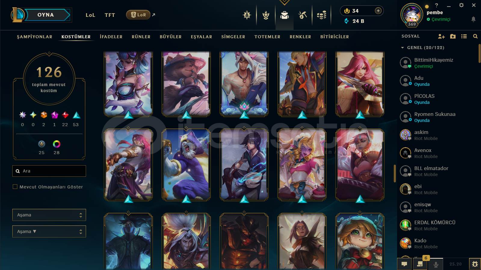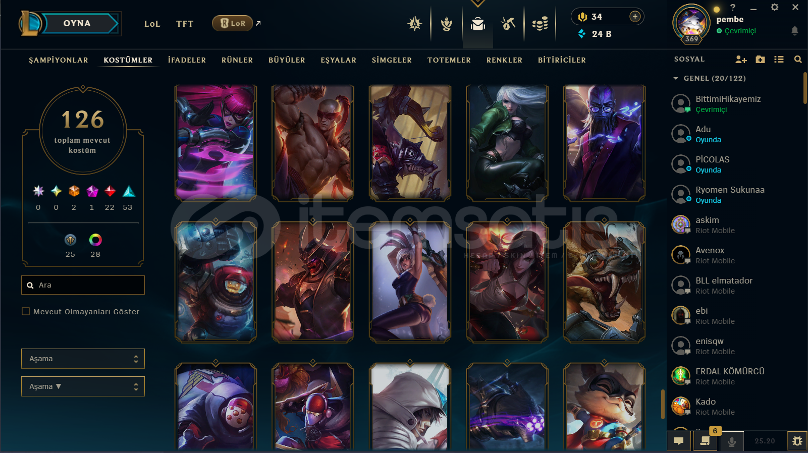 Not: Hesapta ekstra olarak battle pass skinleri de mevcuttur.