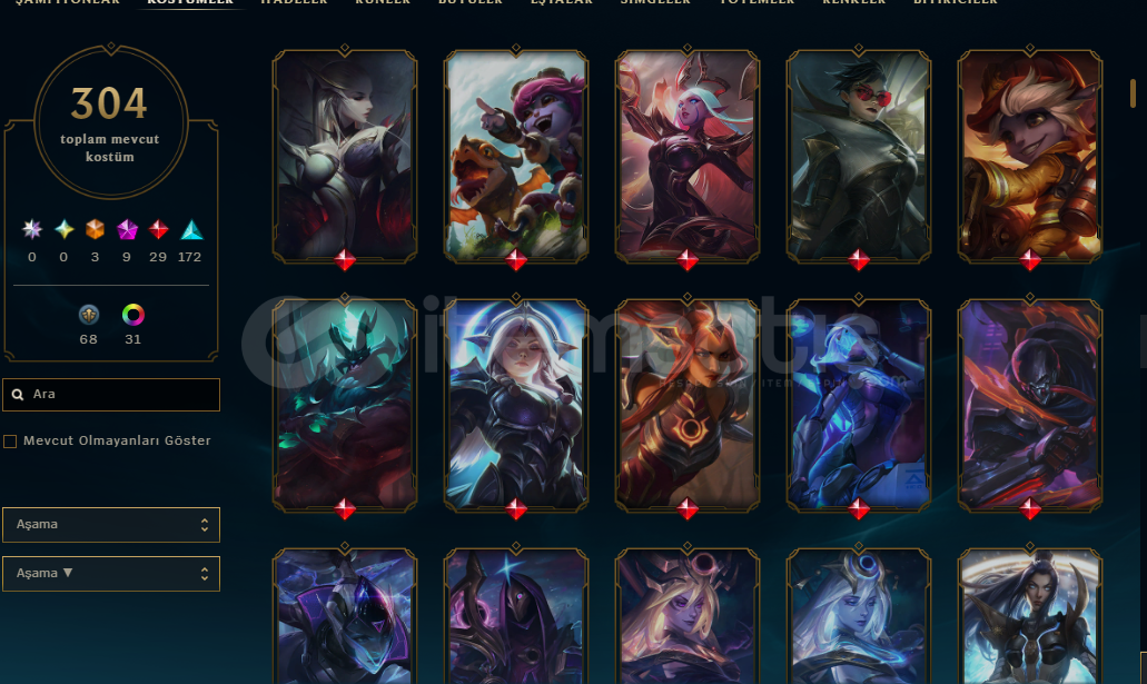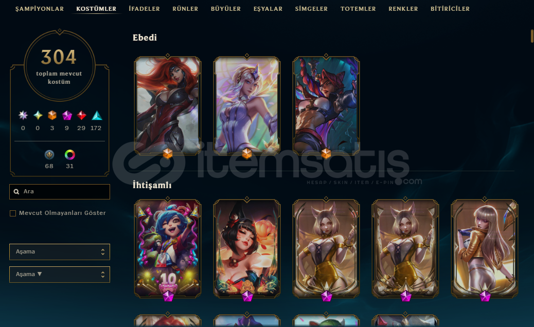 • Kostüm Değeri: Çoğu efsanevi, destansı ve özel etkinlik kostümlerinden oluşuyor.