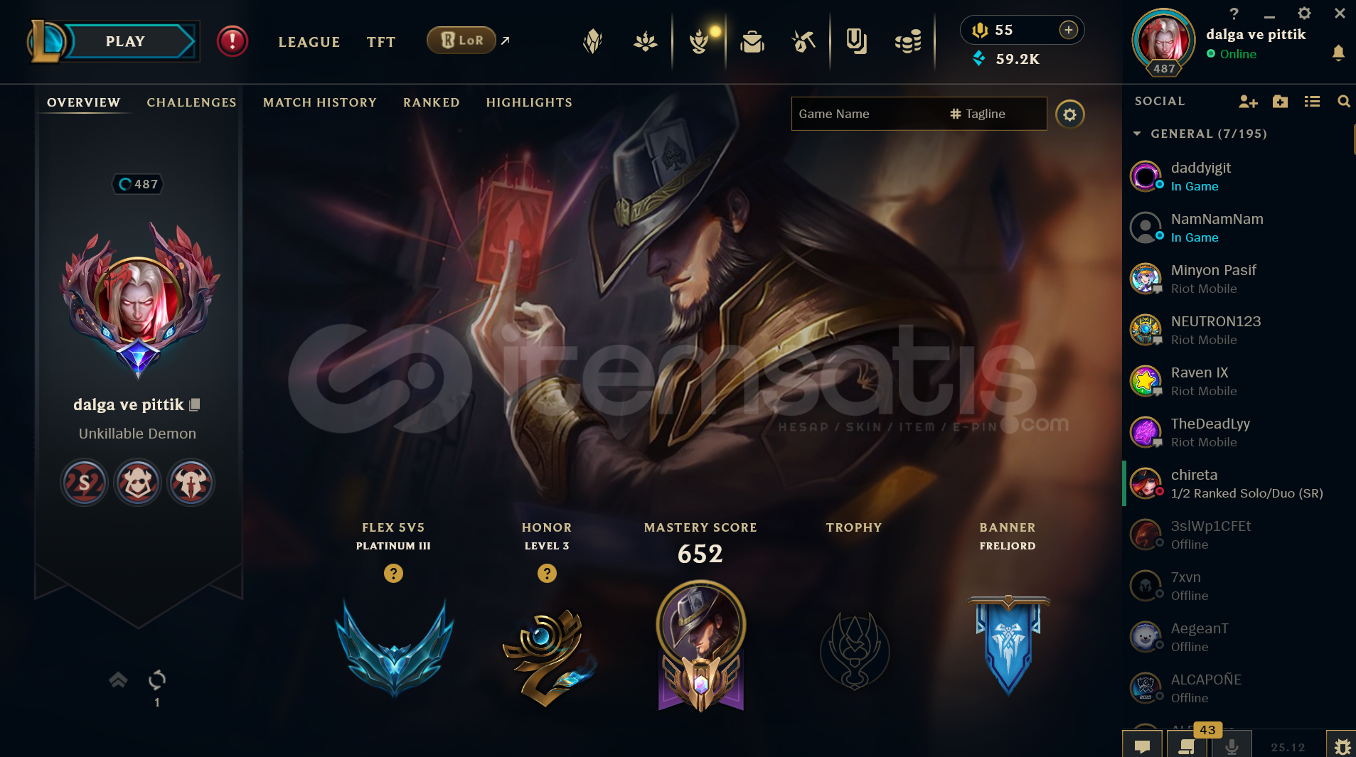 LoL: 487 seviye, 230 skinValorant: 90 seviye, çok sayıda koleksiyon skin, Closed Beta Gun Buddy mevcutCiddi alıcılara detay verilir.Mail Mevcuttur