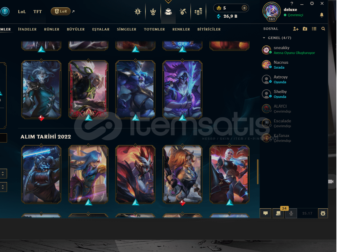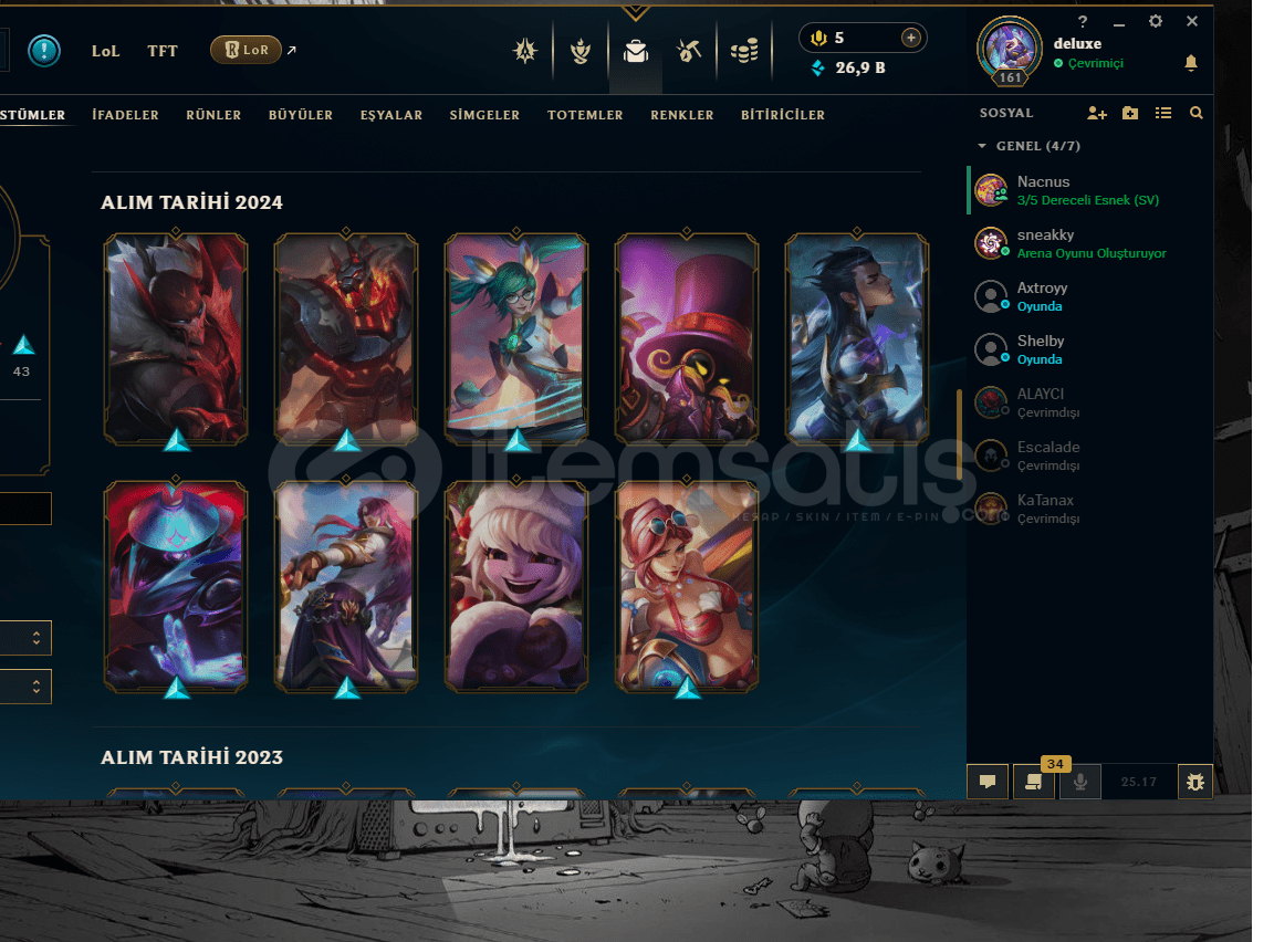 Çalıştığım için oynamaya zamanım yok. Hesap derecesizdir. Hem valorant hemde Lol hesabı mevcuttur. Lol hesabında da sağlam kostümler bulunmaktadır.