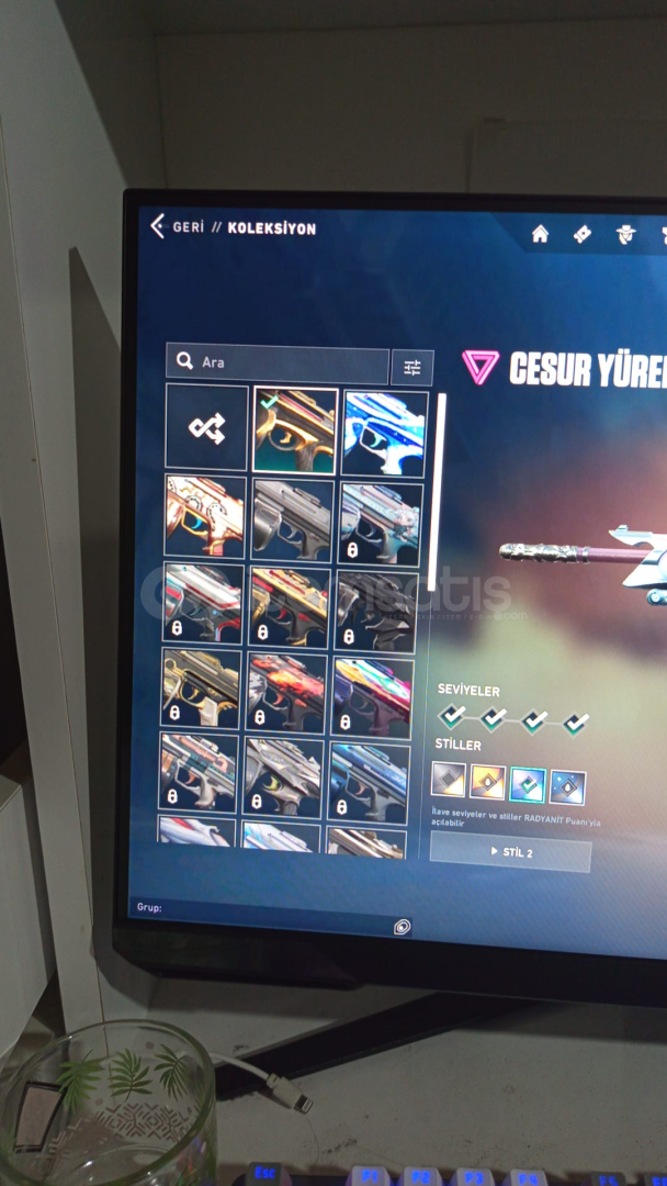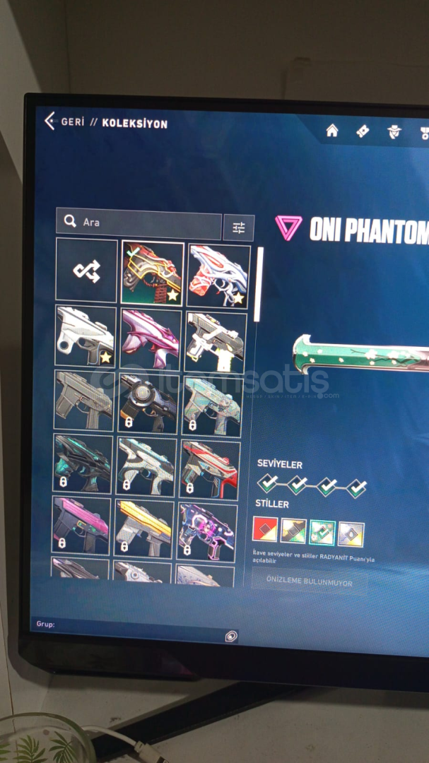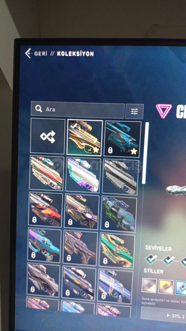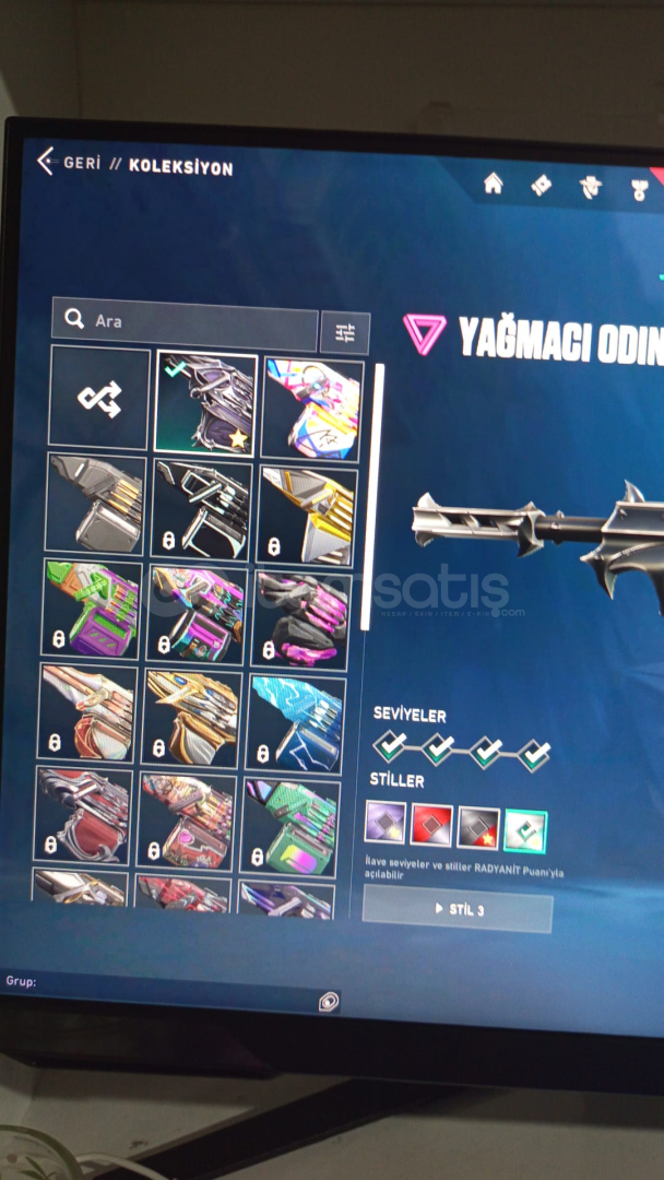 Hesap içerisindeki skinler;Araxys Vandalİon VandalReaver VandalTeam Ace VandalGaia's Vengeance Phantomİon PhantomOni PhantomForsaken Classicİon SheriffTigris SpectreChronoVoid JudgeHorizon BulldogRecon GuardianValiant Hero OperatorValiant Hero AresReaver OdinReaver KarambitOrion SwordHesapta bu skinlerden başka battlepass skinleride vardır çok sayıda sprey bulunmaktadır aynı şekilde oyuncu simgeside.Hesapta düşük biktarda ...