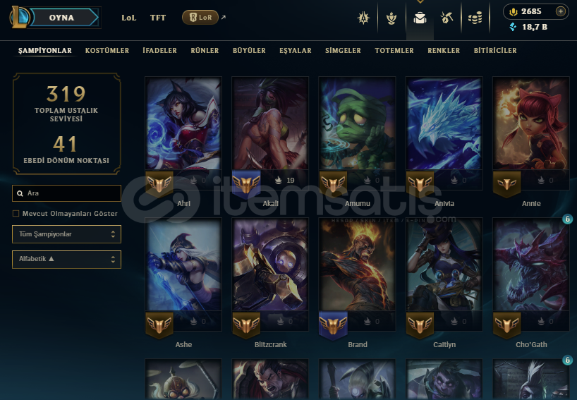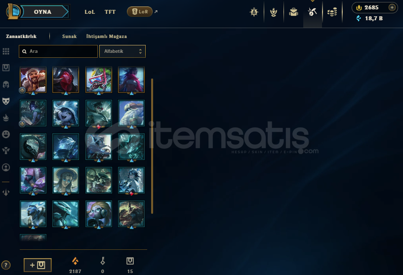 Hesabı artık eskisi kadar oyun oynamadığım için satıyorum. Valorant, lol ve tft alanlarında kostüm ve skinler mevcuttur. 1 kez mail değişimi yapılmıştır. Direkt mail devirli şekilde satım yapılacaktır. Hesabın geri alınması gibi bir durum söz konusu değildir. Valorant kısmında son gelen 5-6 ajan açık değildir oyunu bırakmadan önce diamond-yücelik elodaydı. Lolde 100+ hero ve 70+ kostüm bulunmaktadır(envanter kısmında açılabilir kostümler ve bir miktar rp bulunmaktadır) hesapta neredeyse hiç ranked atılmamıştır. TFT de 50+ strateji ustası mevcuttur.