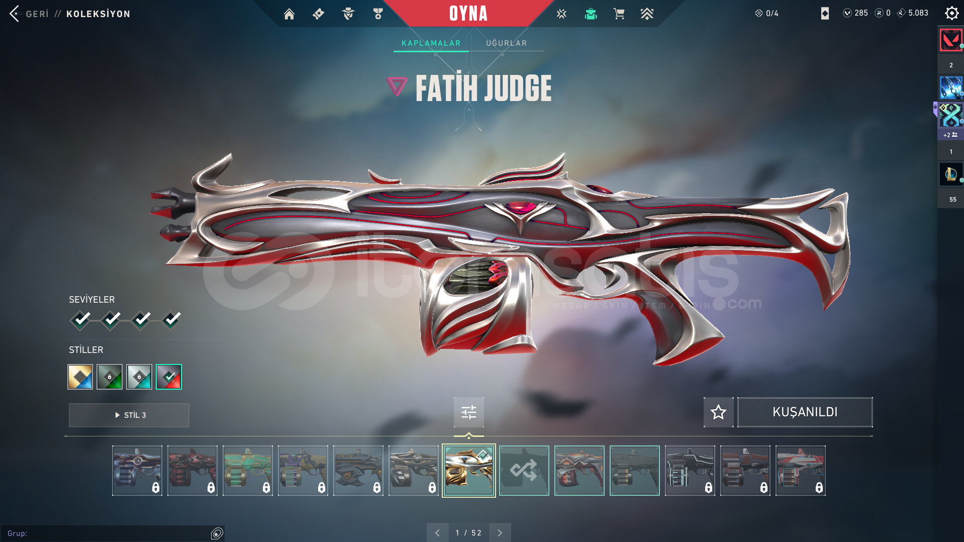 Rank: Plat 3Skinler:Kankuş Uğurluk SetiFatih FrenzyRadiant Entertainment Ghostİyon SpectreFatih JudgeChaos 2 PhantomFatih PhantomEvrim VandalChampions 2025 VandalEbedi KılıçChampions 2025 KelebekYağmacı KarambitExo OutlawRGX OperatorFatih Odin