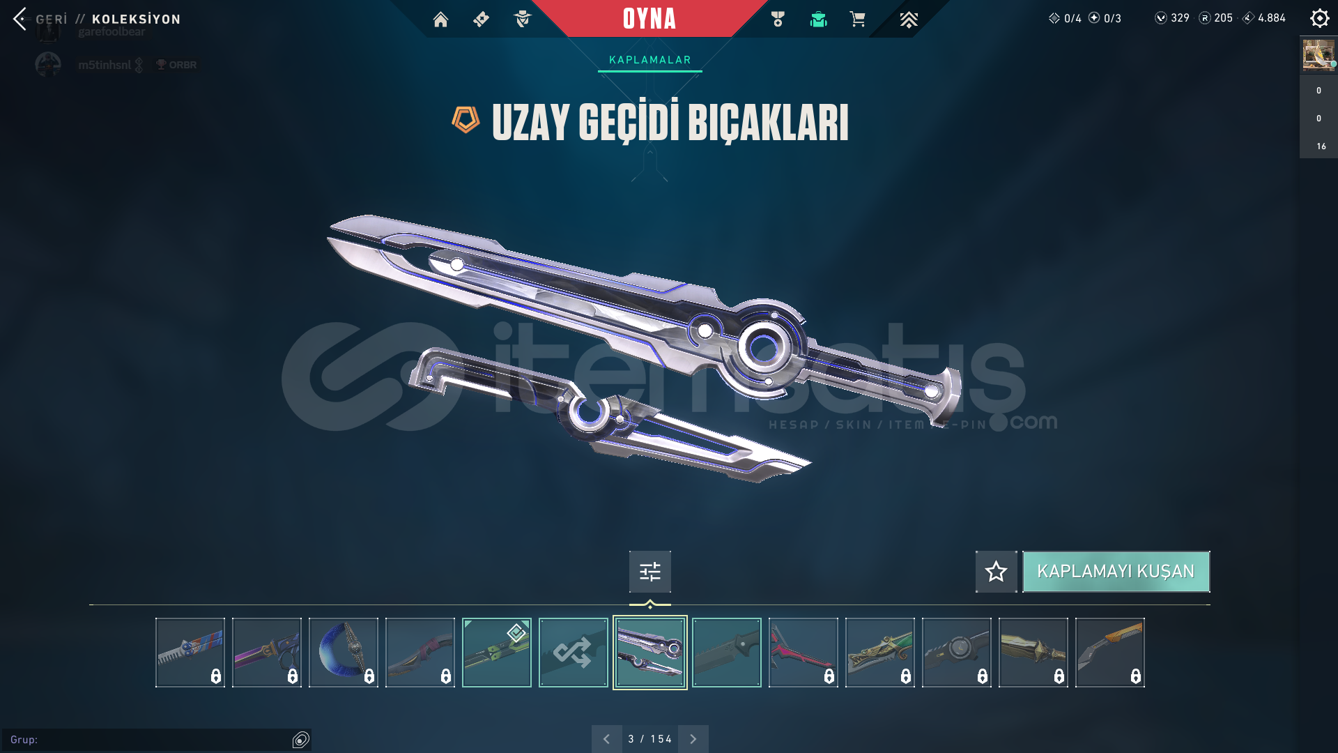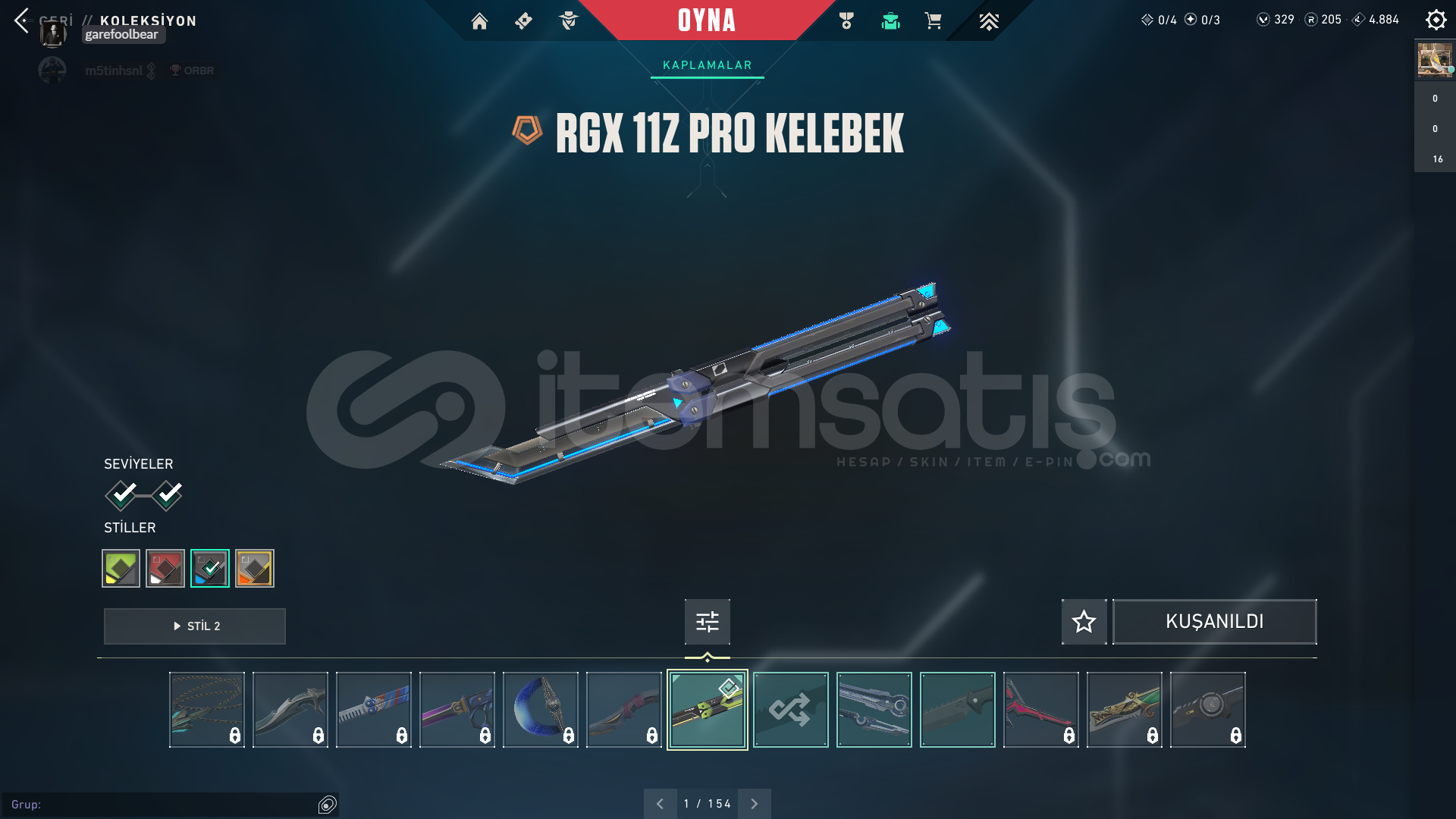 uzay geçidi bıçağı , rgx pro kelebek. En önemli skinler bunlardır her silaha skin var zaten mail ile teslim edilir . Belirtmediğim,sormak istediğiniz bişey varsa sorabilirsiniz.