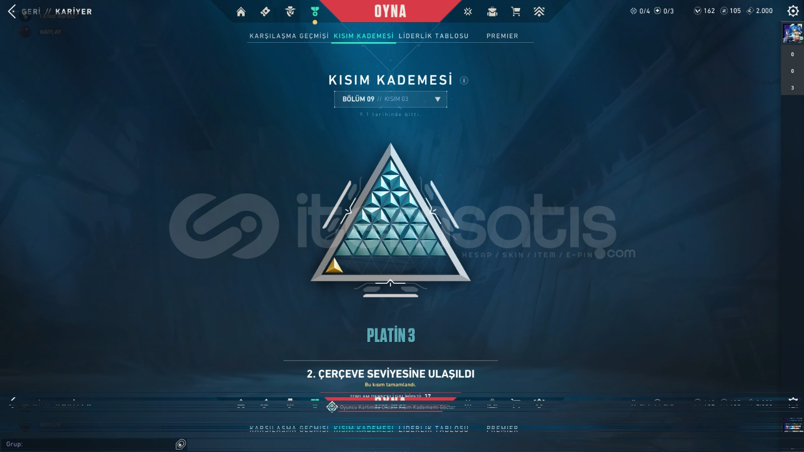 Hesap peek rankı (en yükseğe çıkmış rank) plat 3 dür.
