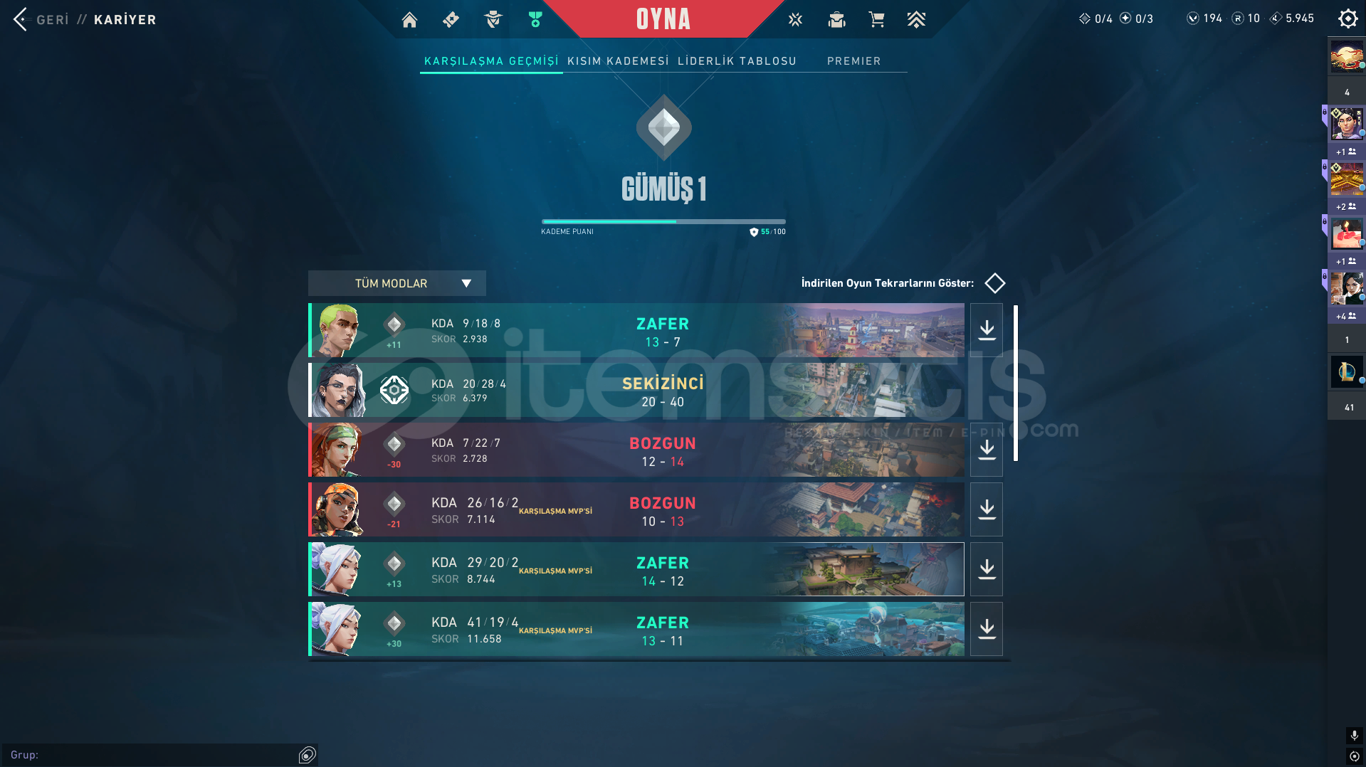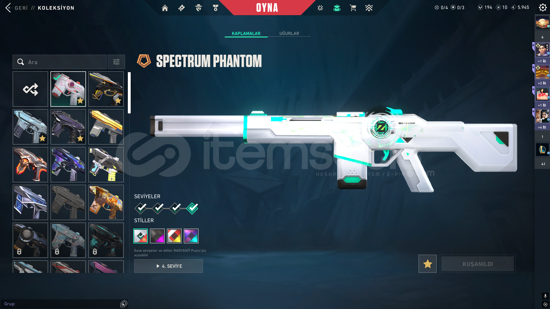 Oyunu bıraktım diye satıyorum Hesap değeri 17k Pazarlicaksanız mantıklı fiyat verin hesap içerikleri (Battlepass saymayarak)Vandal:KaraBorsa AemondirEjderOniChampıons 2023 ve 25DolmirİonKaosRgxPhantomRadyant KıriziChampions 2024YağmacıSpektrumBıçakOni KatanaYitik BıçakSihirPunk kelebekRGX karambıt Yoru KelebekUzaylı Avcısımarshall ve Sherifdde Seri TetikOperator YitikBBL classic 2024 se...