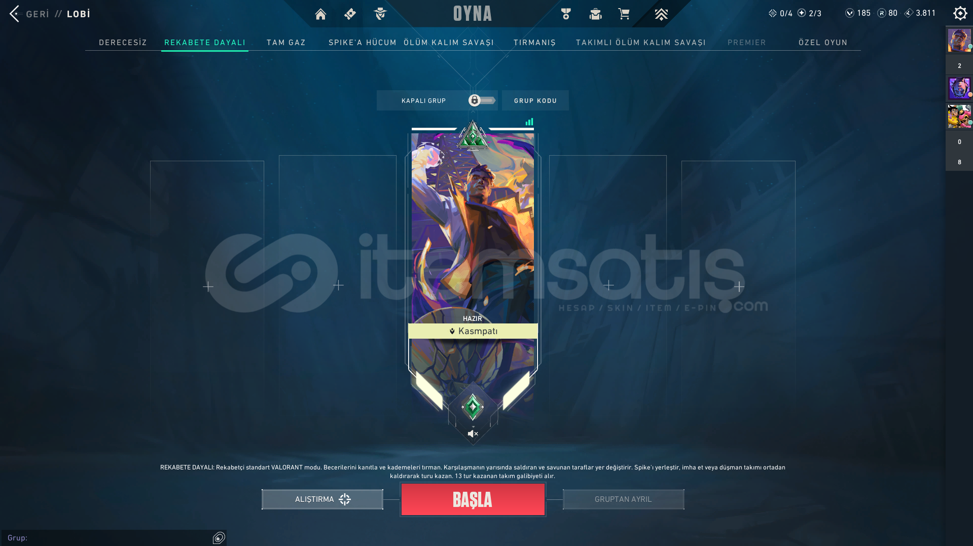 Hesapta 185 Vp 80 Rp 4000 e Yakın Kingdom Puanı vardır
