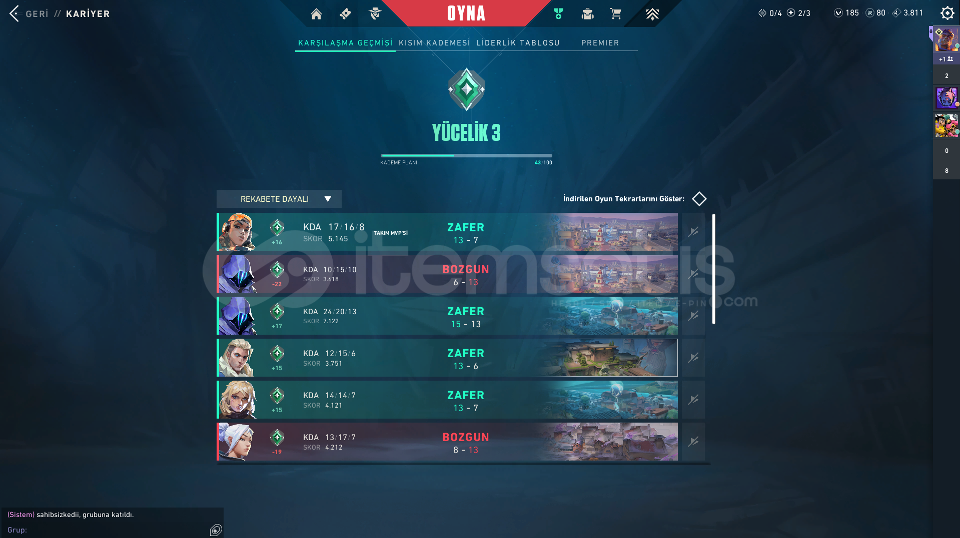 Hesap Yücelik 3 50 puandadır Tertemizdir Yan Hesap Olarak Kullanılmıştır Sadece Champions Seti VardırHesapta 185 Vp 80 Rp 4000 e Yakın Kingdom Puanı vardır