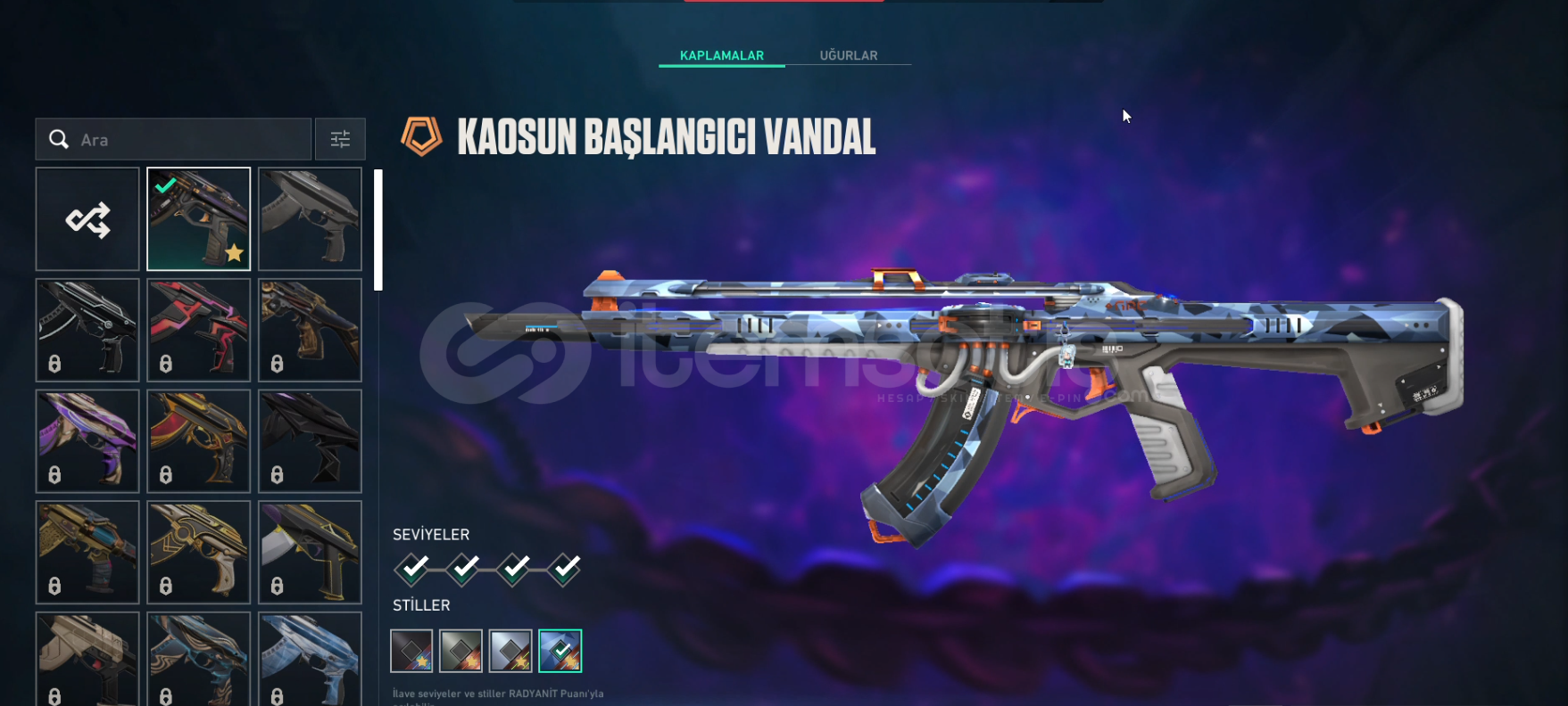 Hesap İçeriği:Kaos VandalAsil PhantomAsil GuardianAsil SpecterÜç tane tabanca deseniHesap Oyunu Bırakan Oyuncunun HesabıdırHesap TR SunuculudurHesabı Aldığınızda Hesabın Maili Üzerinize YapılacaktırHesap Temiz Mainlemelik Hesaptır Alıp Gönül Rahatlığıyla Kullanabilirsinizİçinde Nadir Kartlar ve Yüklü Miktarda Rp vardır