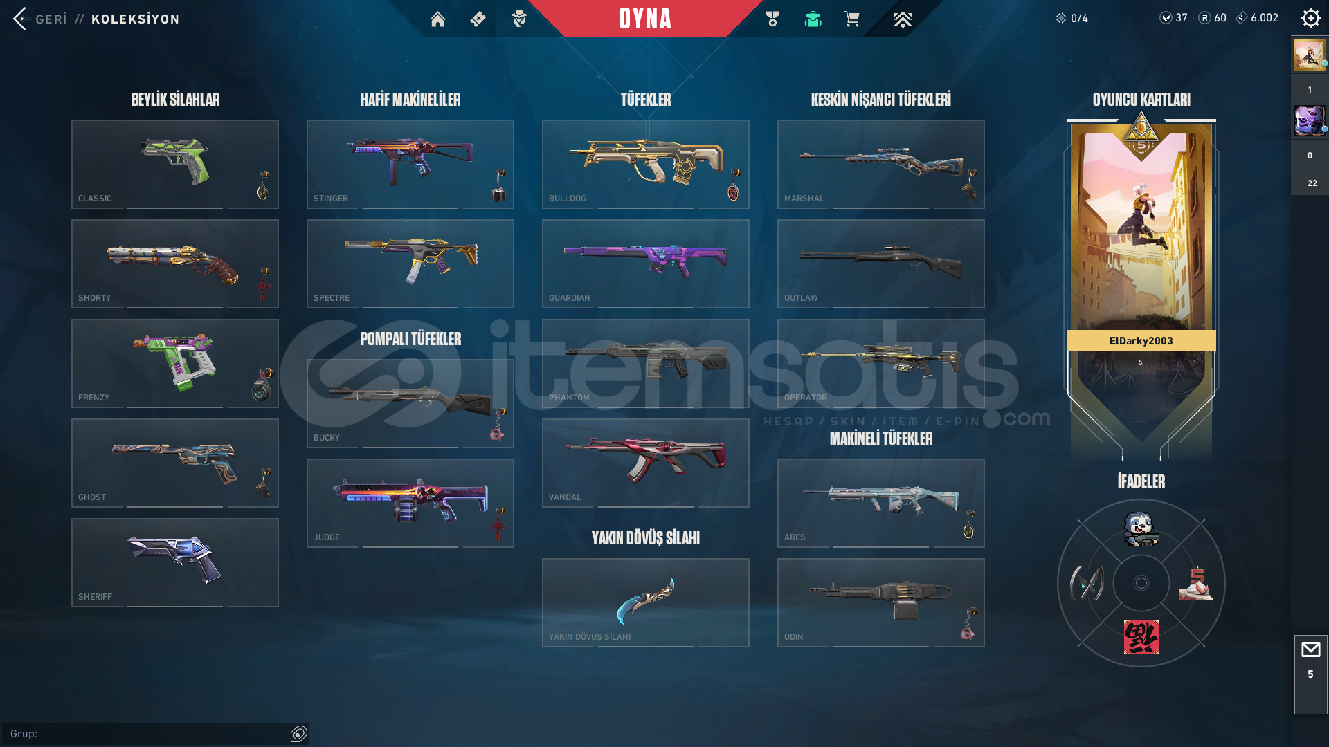 Valorant Mainlemelik Hesap İçindekiler: rgx classic oni shorty blastx frenzy asil spectre spectrum guardian uzaylı avcısı phantom zamanın ötesi vandal yerçekimsel uranyum nöroateşleyici operatör ay yadigarı bıçak 1 adet bp