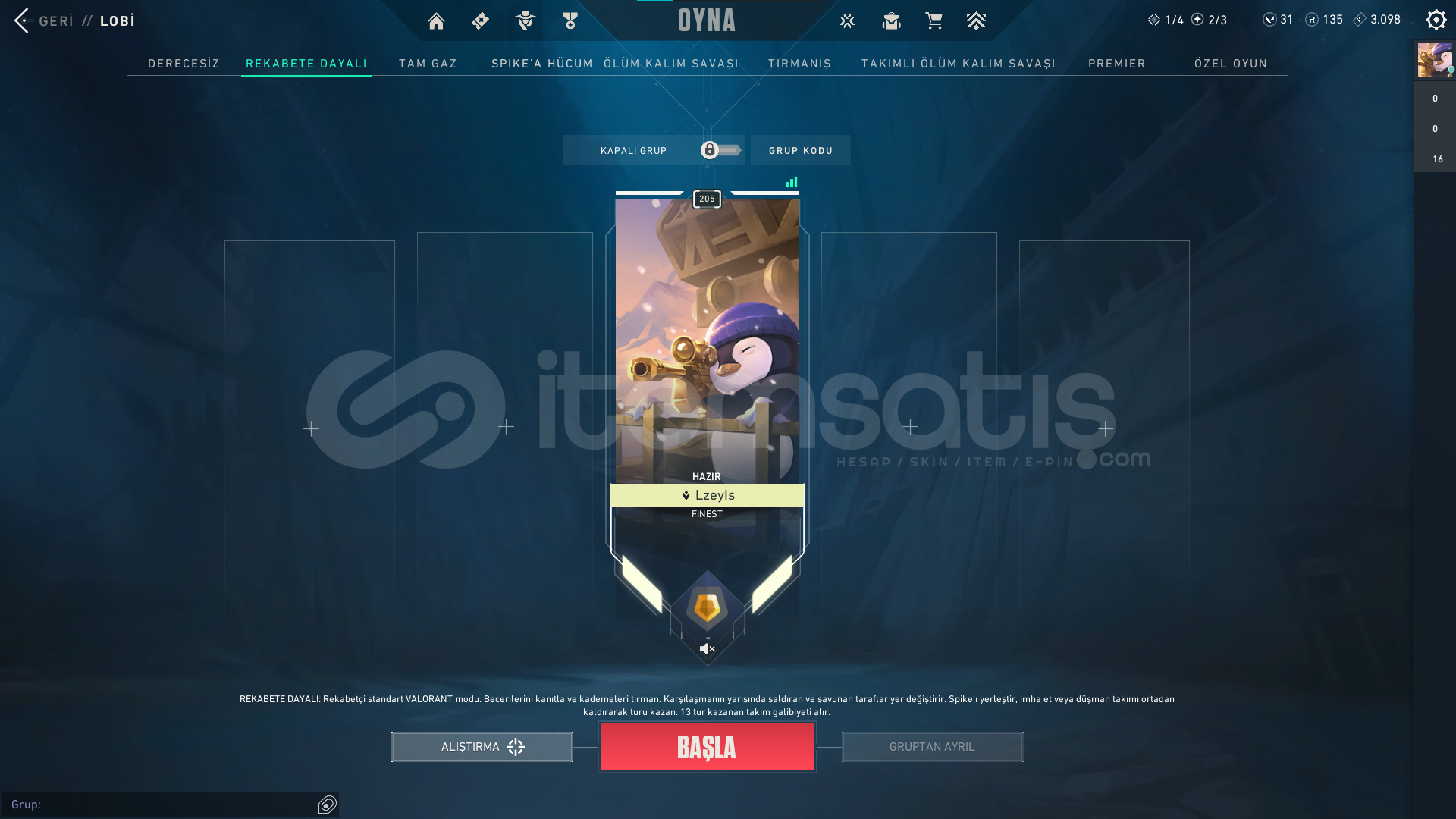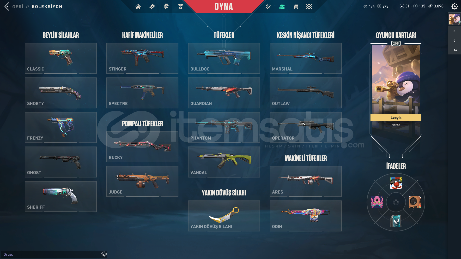6712TL Yatırılmıştır, Oyunu Bıraktığım İçin Satıyorum Güzel Mainlemelik Hesap.Hesabın İçinde 110 Vp 135, Radyanit, 3098 Kingdom Credisi Vardır.Hesap 205 LeveldirHesabın İçinde Olan Skinler.~Beylik Silahlar'ı~Classic: miinak tabanca-zarafet-popstar-panoramik-gazapShorty: kanka-devinim-alacaFrenzy: elektrik akımı-tozpembe-mehtap kurnazı-koalisyon kobra-809. özel kuvvet...