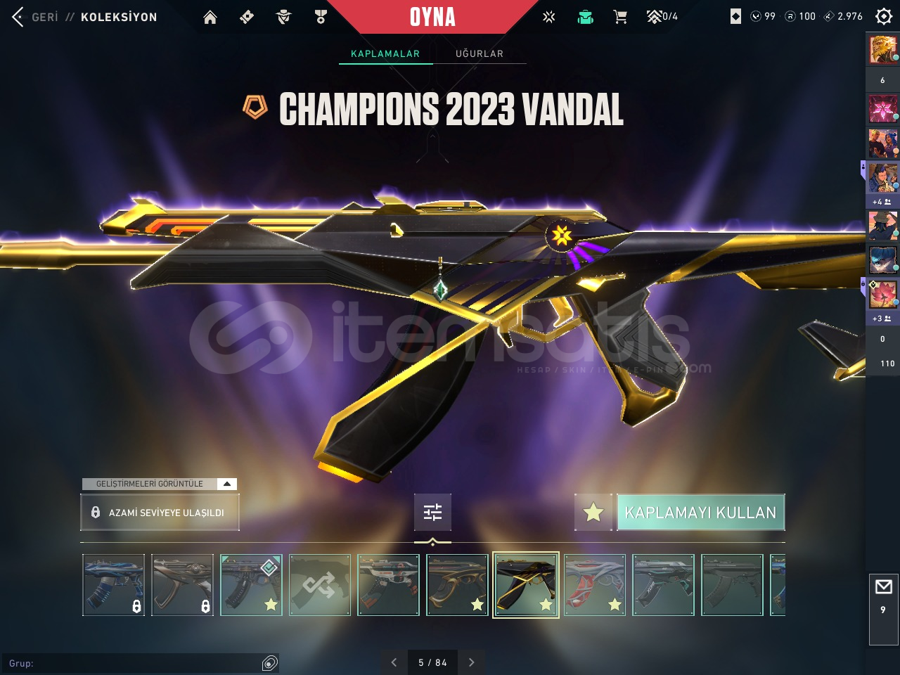 Cesur yürek setliChampions 23 VandalBütün tabancalarda skinPazarlık yoktur sabit fiyatACİLİYETTEN SATILIYOR