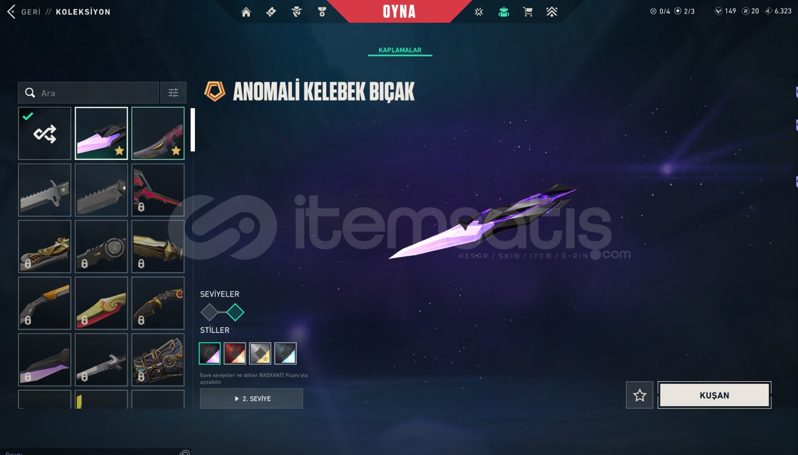 ACİL SATILIK VALO HESABI MAİNLİK GÖRSELDEKİ GİBİANOMALİ KELEBEK, ZİFİRİ TIRPAN, UZAYLI AVCISI BAYONET