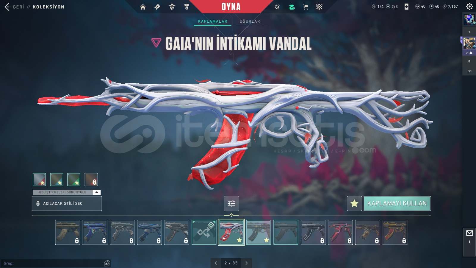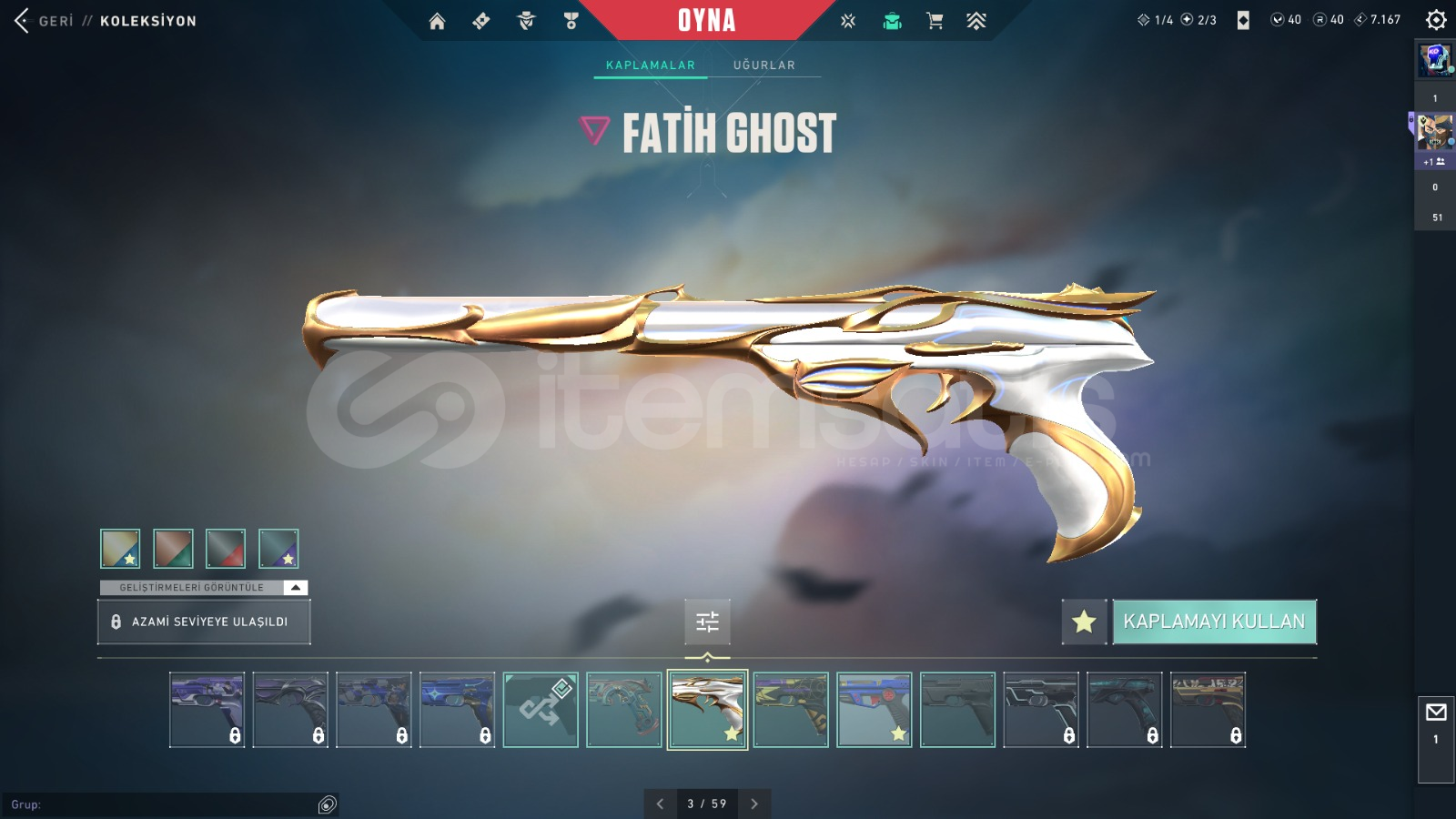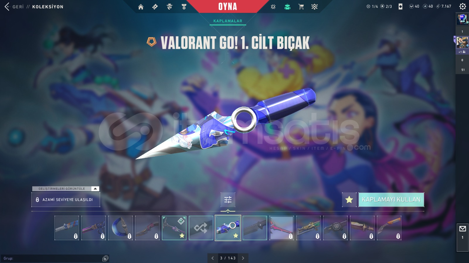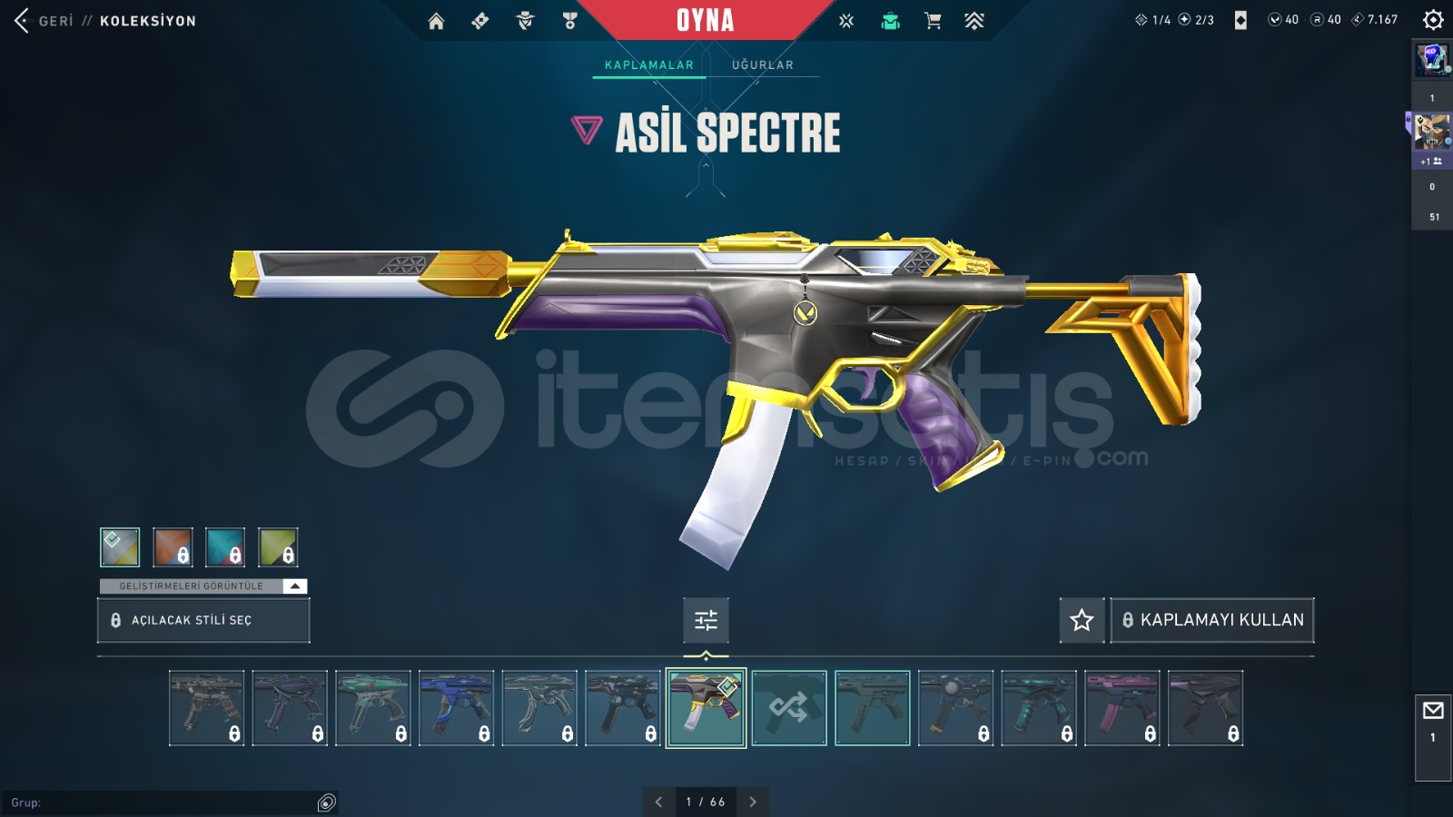FİYATINA GÖRE DOLU HESAP İÇİNDEKİLER:ASİL SPECTREASİL GUARDİANKAOS, GAİA VANDALYAĞMACI, SİHİRPUNK PHANTOMFATİH, R.E.S. GHOSTVALORANT GO 1.CİL BIÇAKBIÇKIN VE BİTİRİM BIÇAK