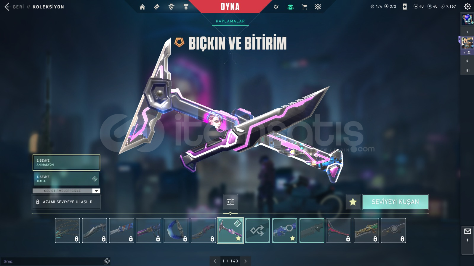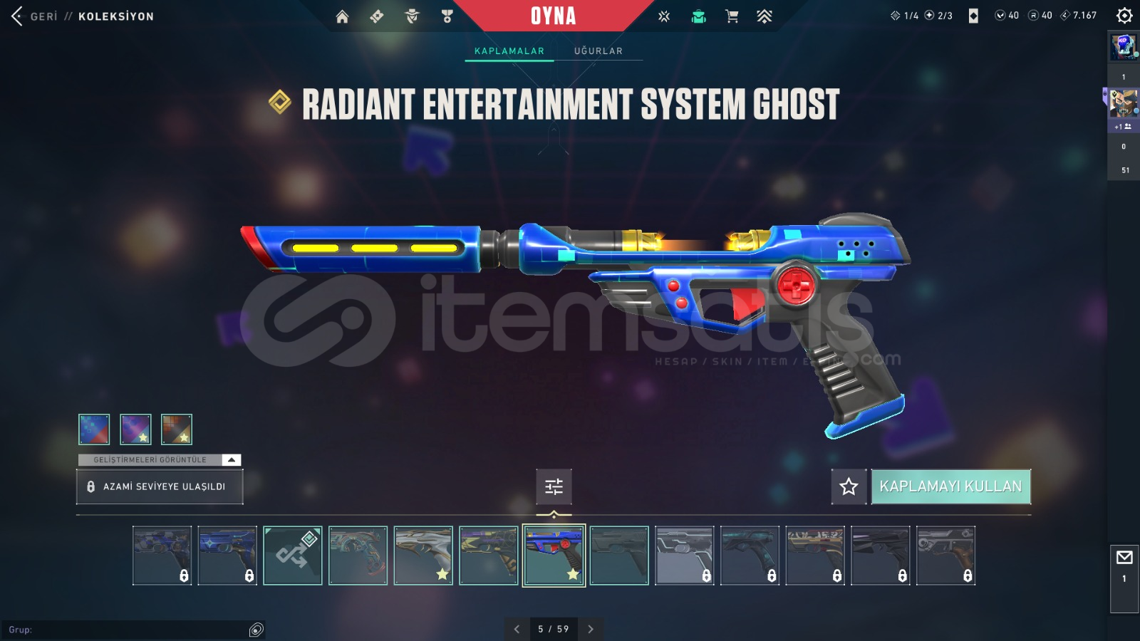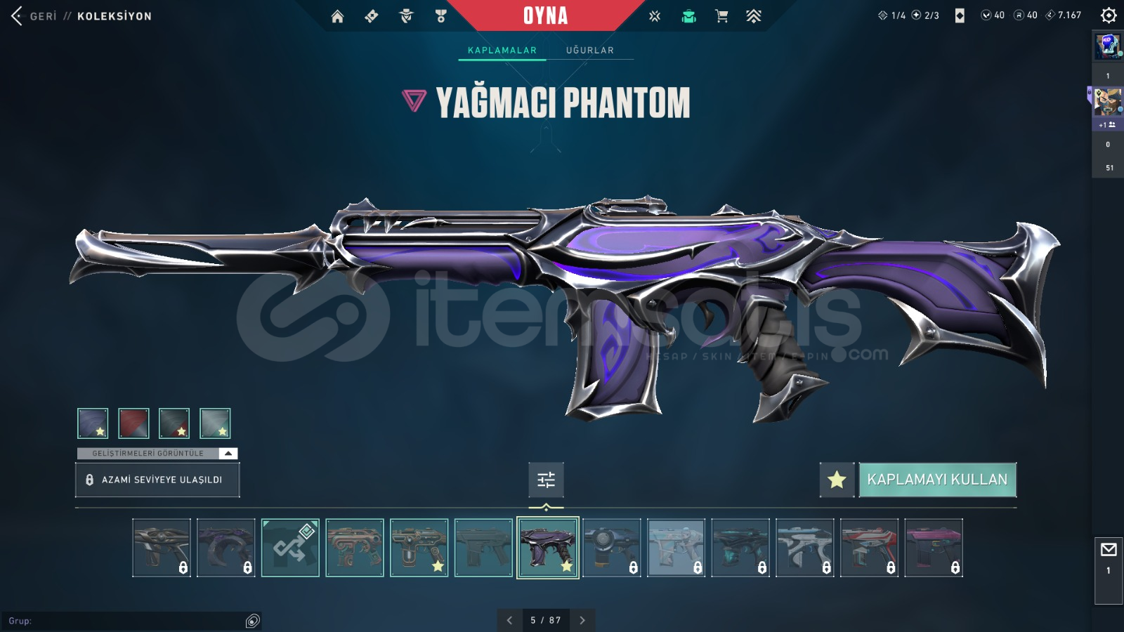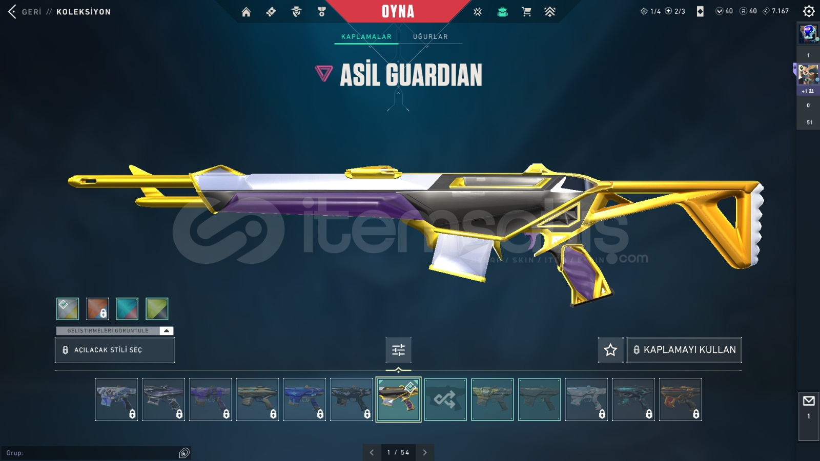 FİYATINA GÖRE DOLU HESAP İÇİNDEKİLER:ASİL SPECTREASİL GUARDİANKAOS, GAİA VANDALYAĞMACI, SİHİRPUNK PHANTOMFATİH, R.E.S. GHOSTVALORANT GO 1.CİL BIÇAKBIÇKIN VE BİTİRİM BIÇAK