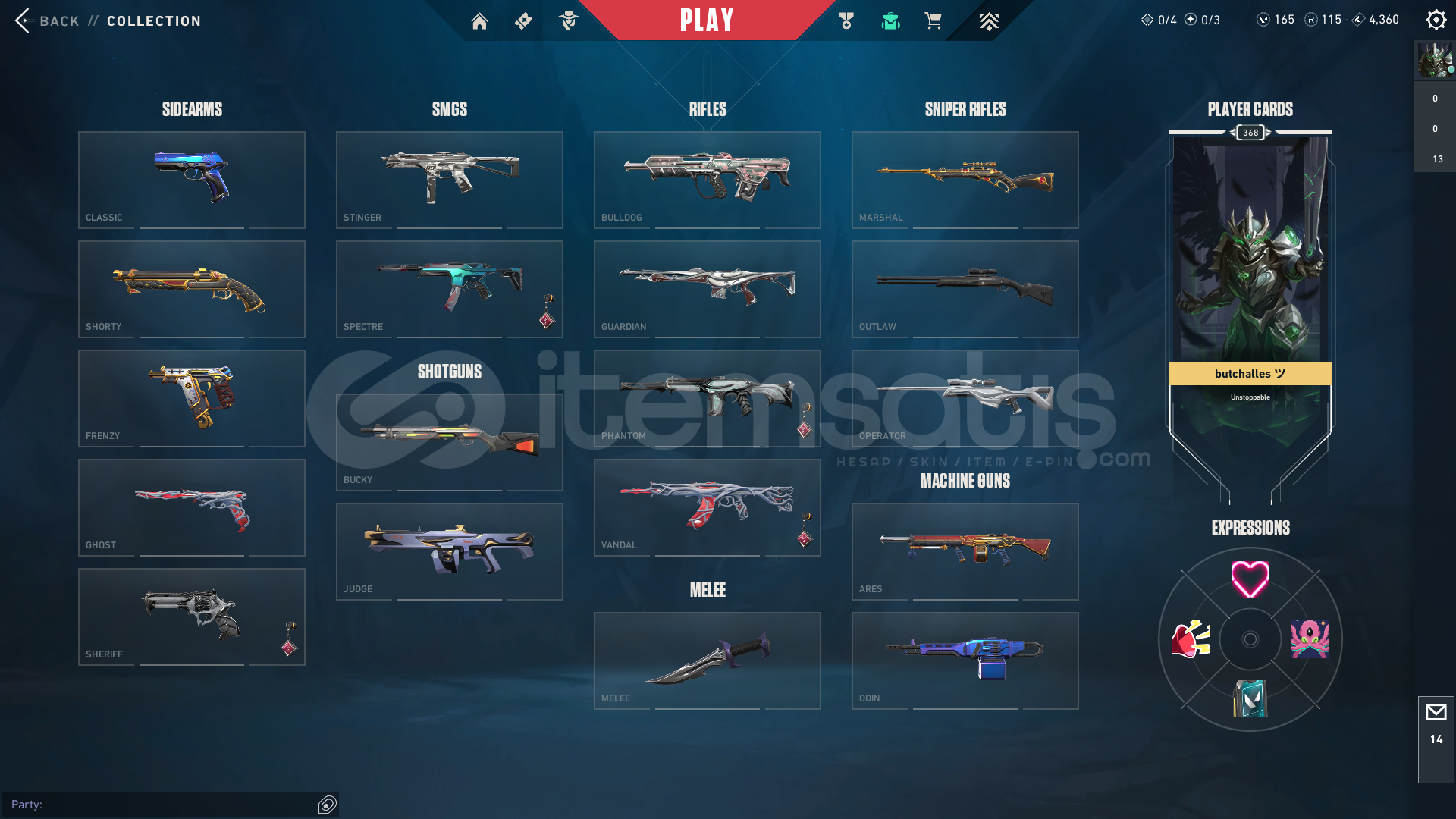 Hesap Leveli 368Bıçak : Yağmacı Bıçak, Altın Afet Hançer, Iyon Enerji Kılıcı, Iyon Karambit, Onımaru Kunıtsuna Katana, Rgx 11z Pro Kelebek, Prizma III Balta, Uzaylı Avcısı BıcağıVandal : Gaia’nın Intıkamı Vandal, Kaos Vandal, Onı Vandal, Rgz 11z Pro Vandal, Yağmacı VandalPhantom : Yağmacı Phantom, Asil//2.0 Phantom, Iyon PhantomDiğer Skinler : On...