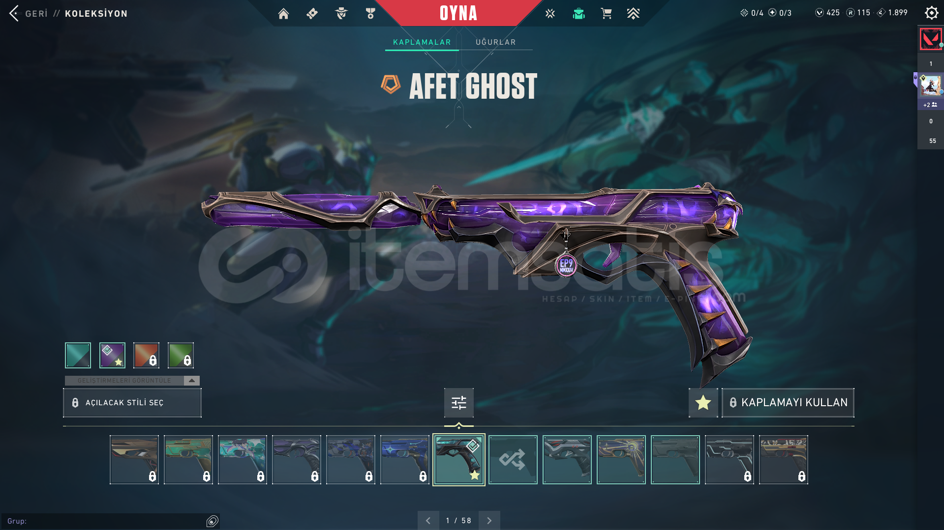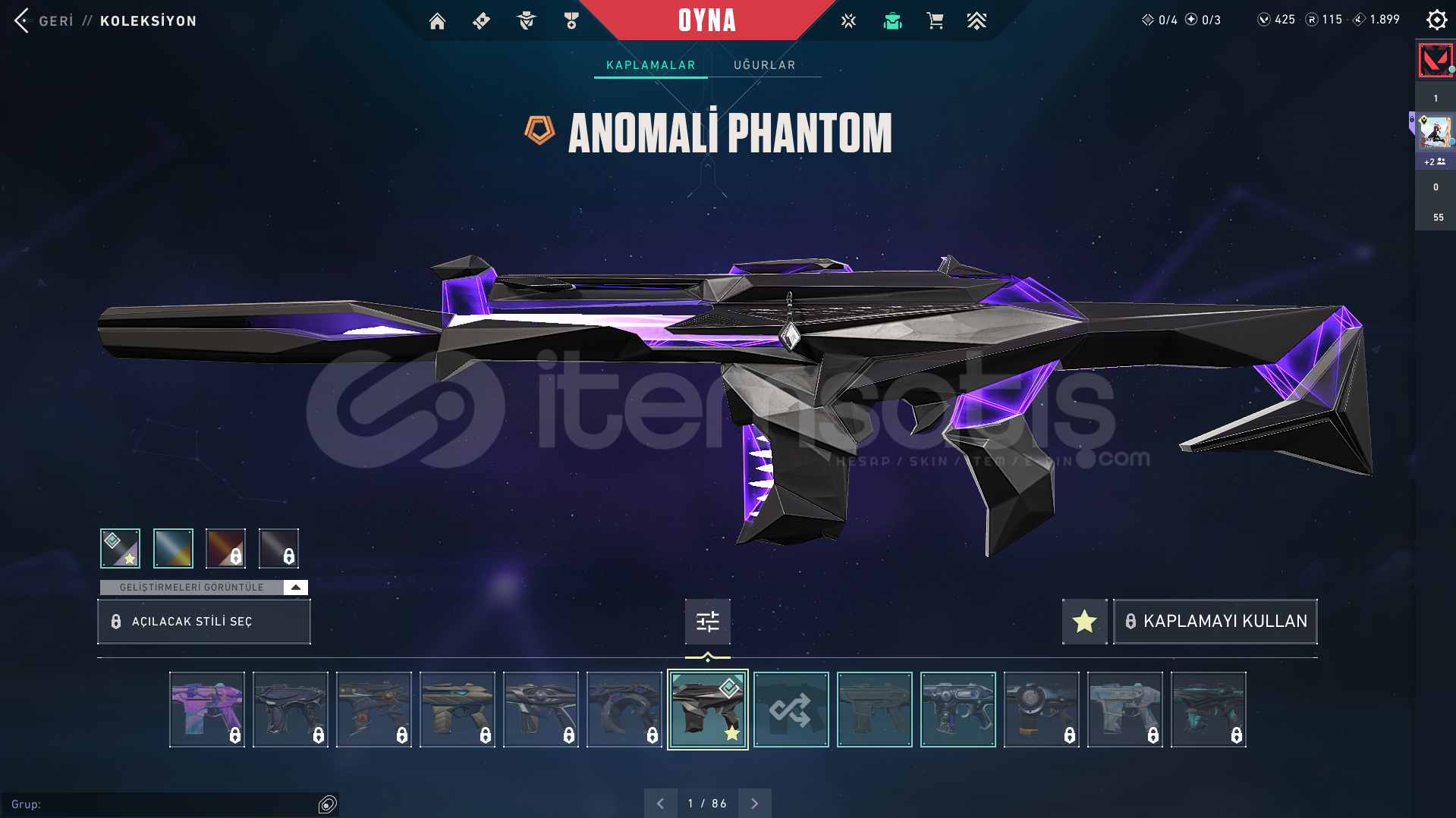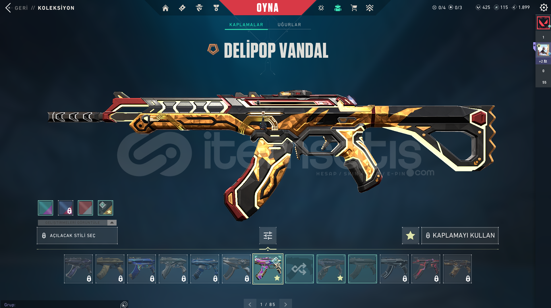 Hesaptaki skinler: