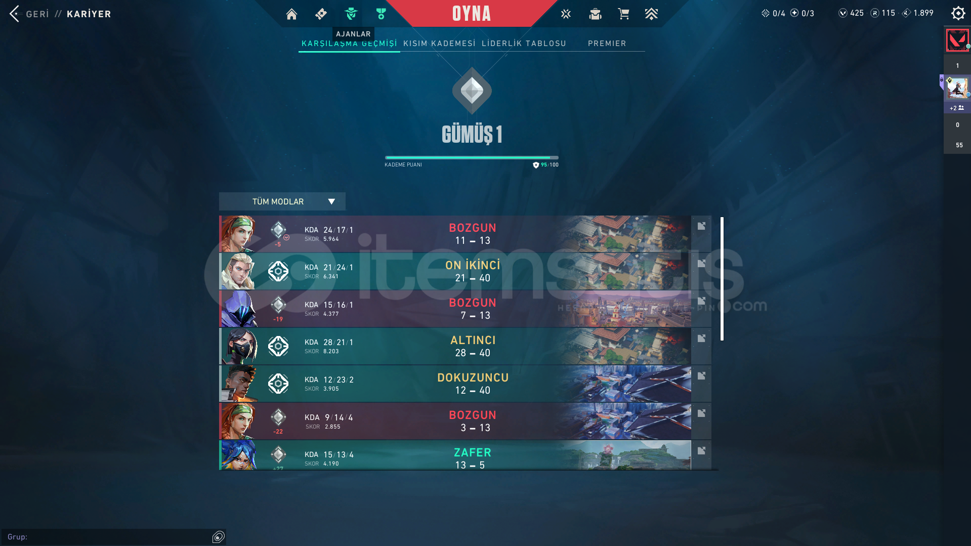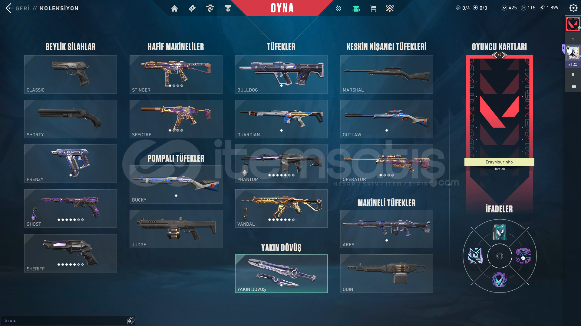 Hesaptaki skinler:fotoğrafları ekledikten sonra hesaba seri tetik marshallda eklendidelipop vandalejder vandalanomali phantomanomali sherrifafet ghostbattlepass bıçakbattlepassten gelen silah skinlerifotoğrafta kilitli olan ajanlar hariç diğer tüm ajanlar açıktır