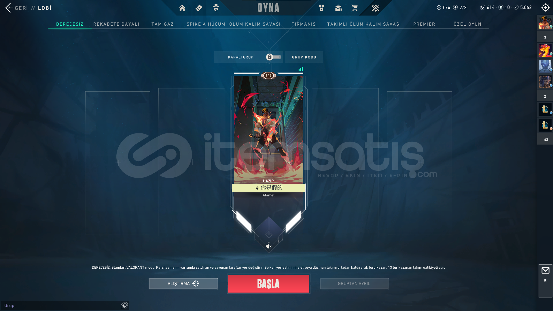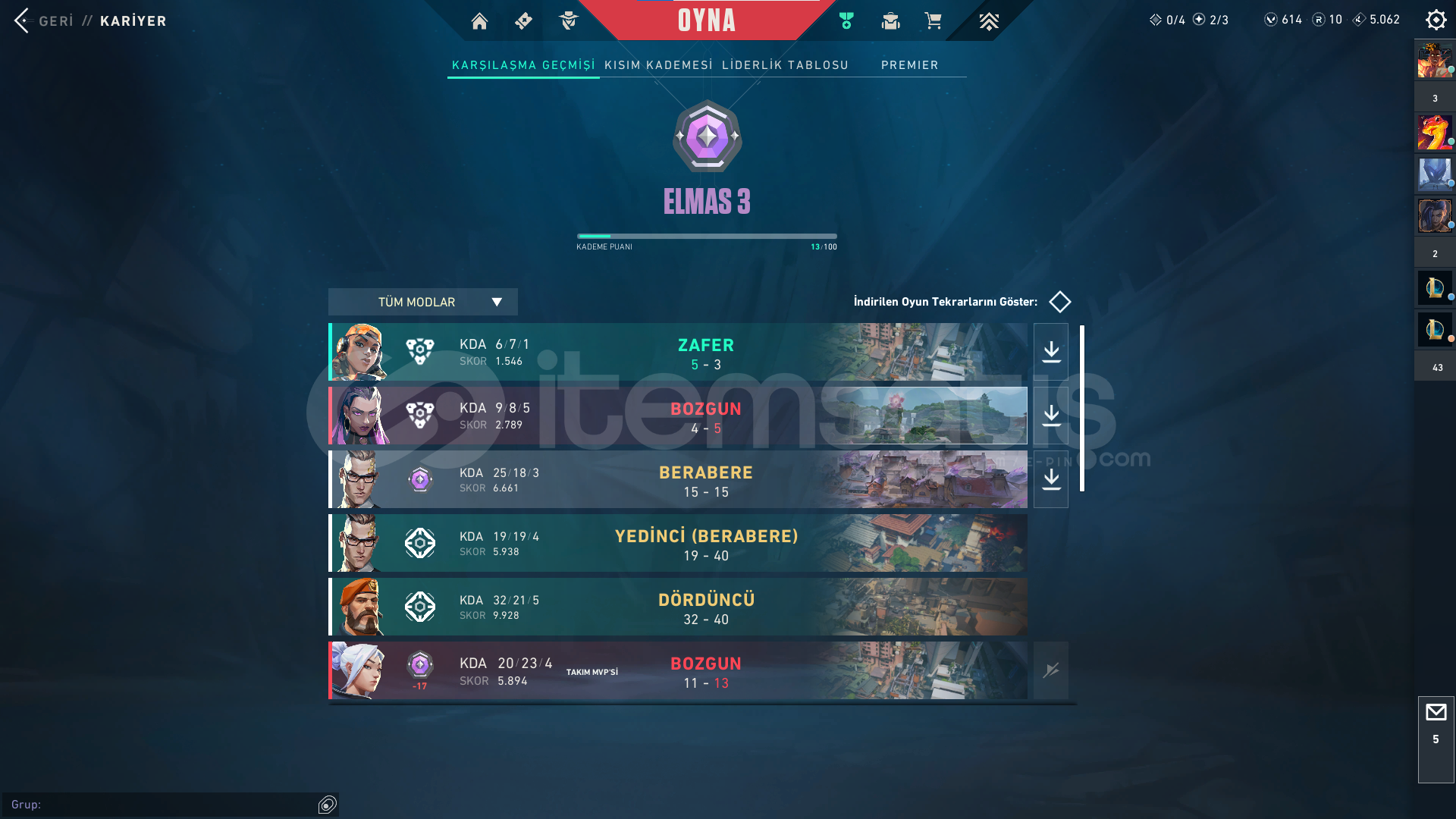 Valorant Mainlik Diamond 3 Bolca skinli Hesap