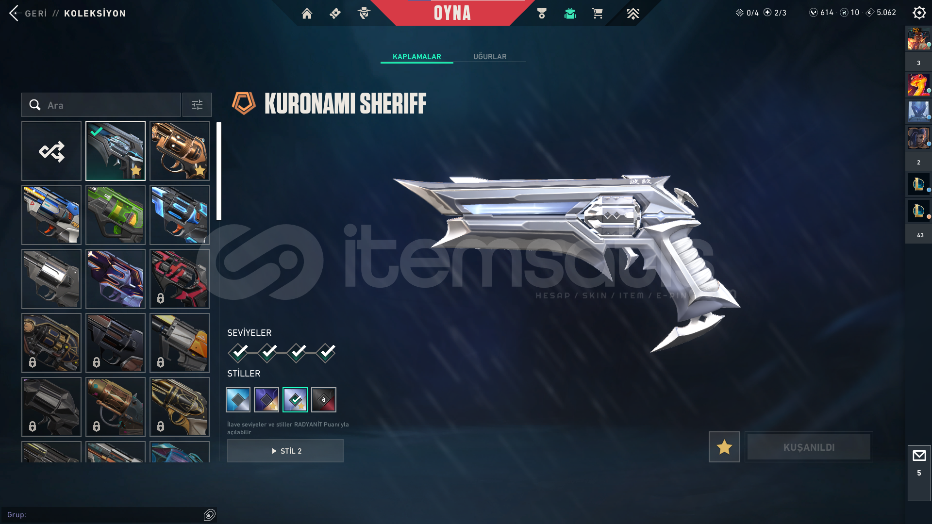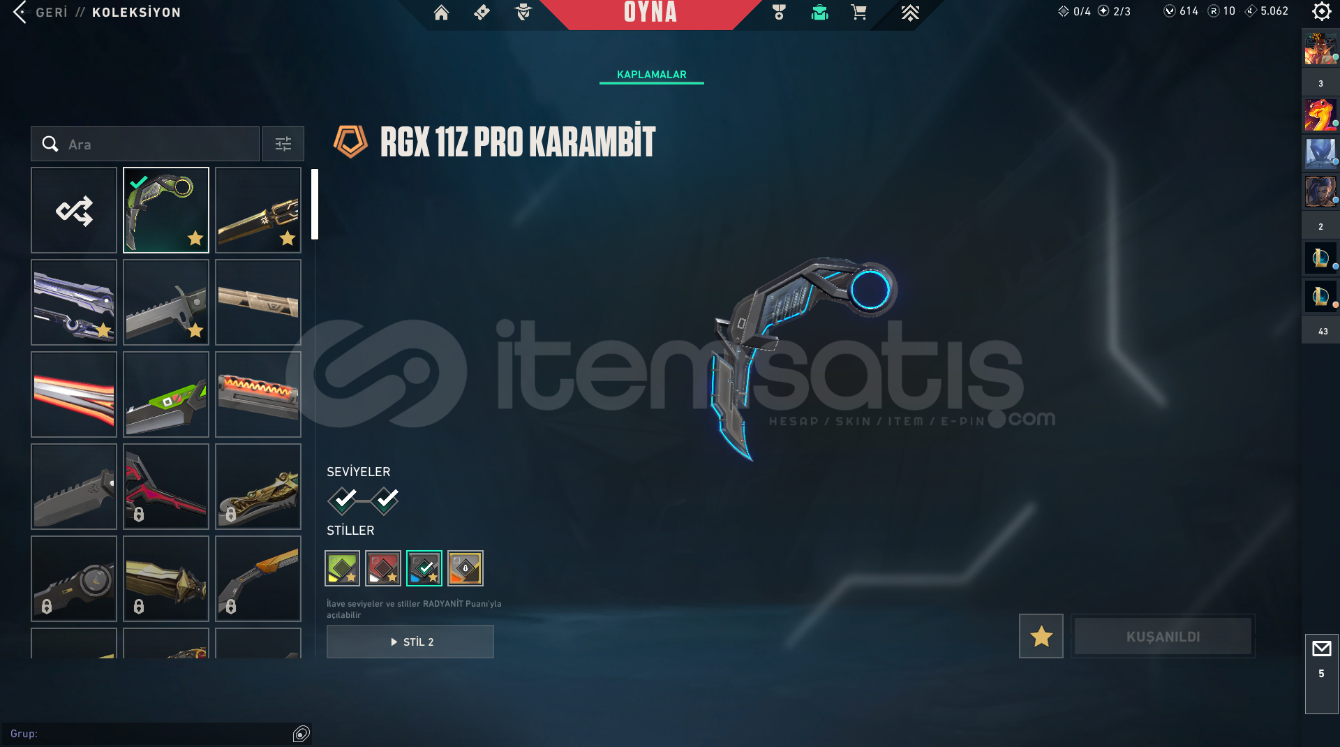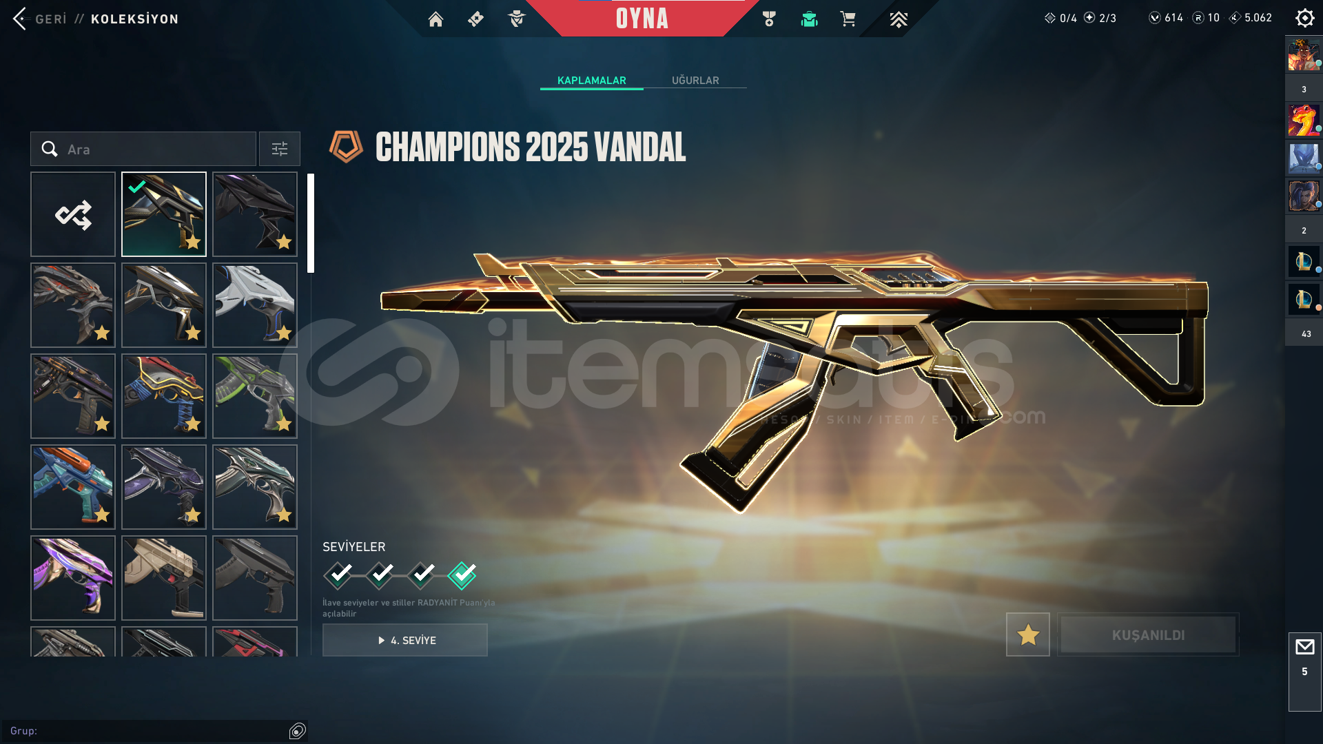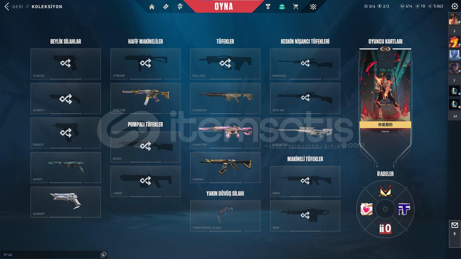 10 Adet Vandal Skini2 Phantom2 SheriffAsil SpectreAfet GhostKöken OperatörÖzel Harekat Guardian3 BıçakDiamond 3614 VP Mevcut