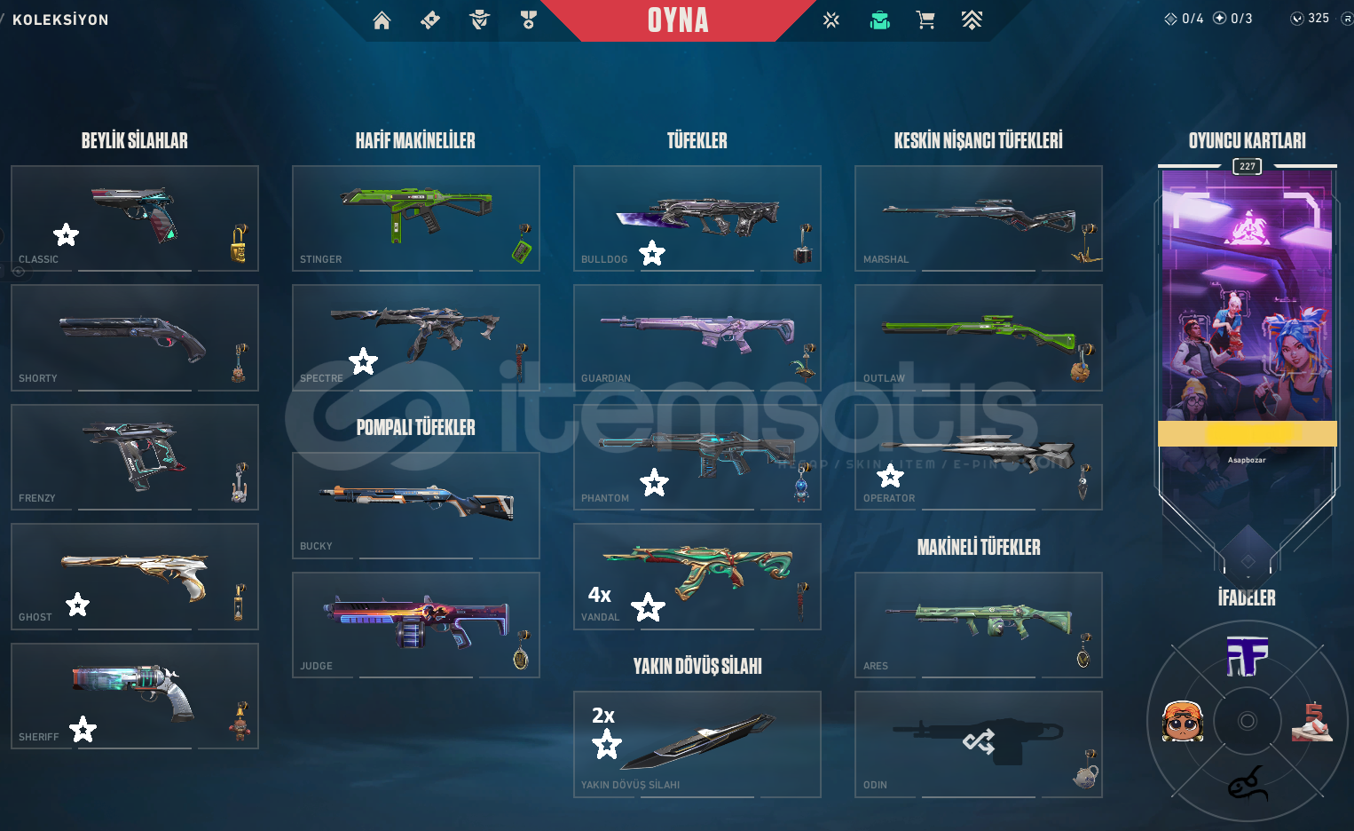 ⭐️ 227 Seviye⭐️⭐️Hesapta 325VP Bulunmaktadır.⭐️Geçen Sezon Gold'du şuan Gümüş 2⭐️Asil Classic⭐️Fatih Ghost⭐️Seri Tetik Sheriff⭐️Felaketin Kalbi Spectre⭐️Aemondir Bulldog⭐️RGX 11Z PRO Phantom⭐️EJDERİN BUYRUĞU Vandal⭐️GAİA Vandal⭐️SPLASHX Vandal⭐️YAĞMACI...