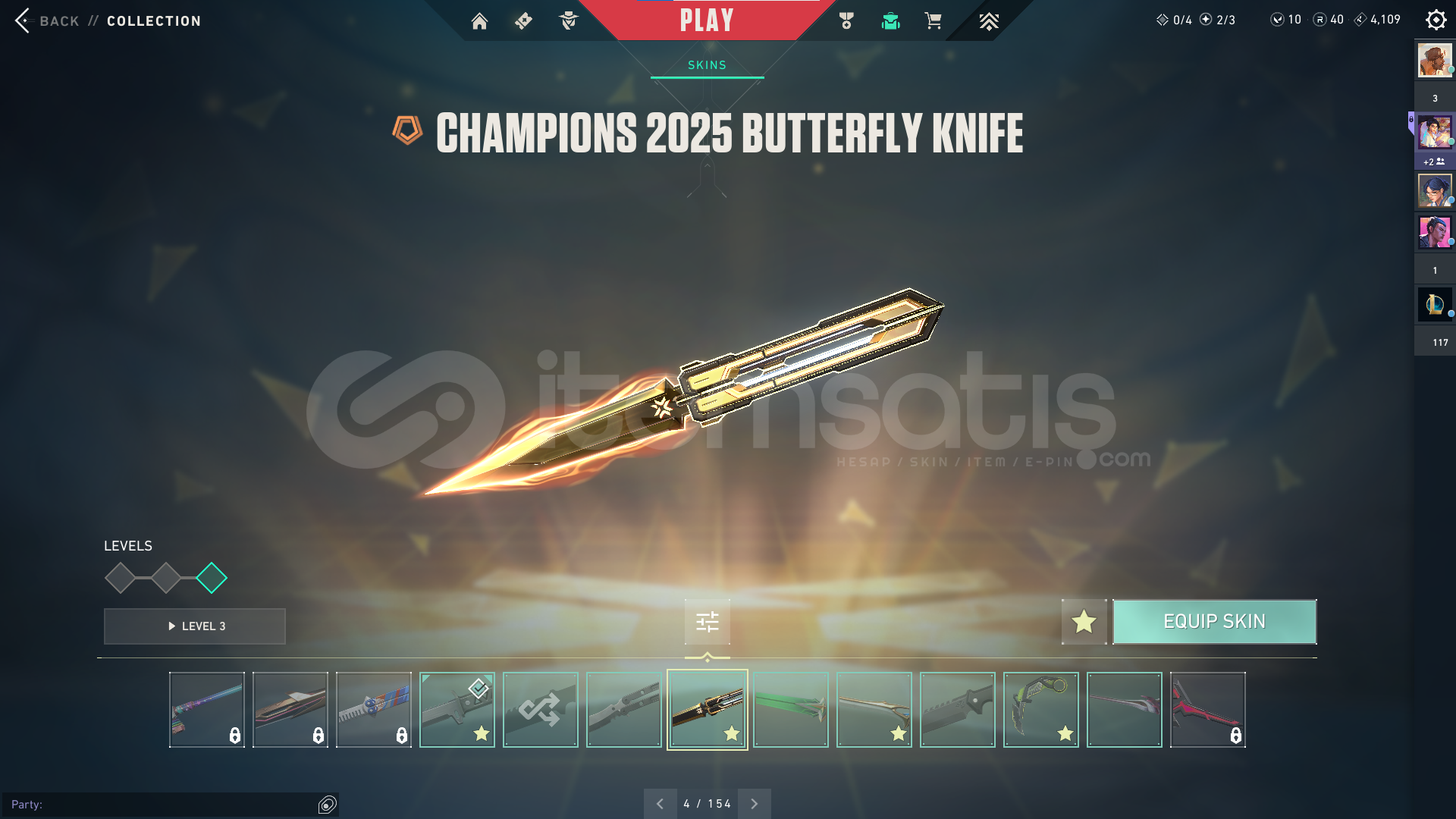 Vandallar: kaos,yagmacı,felakatin kalbi,yitik ve champıons25Bıçaklar: karaborsa kelebek, uzaylı avcısı, rgx karambit, yitik katana ve champıons25 karambitDiğer: yagmacı sherif , ulupençe ghost , yitik op ve setlerin kartları ugurlukları Açıklama: hesap güncel plattır 12k yakın yatırılmıs hesap mail degıstırılecektrirve diger ilanlara göre ucuz bir hesaptır
