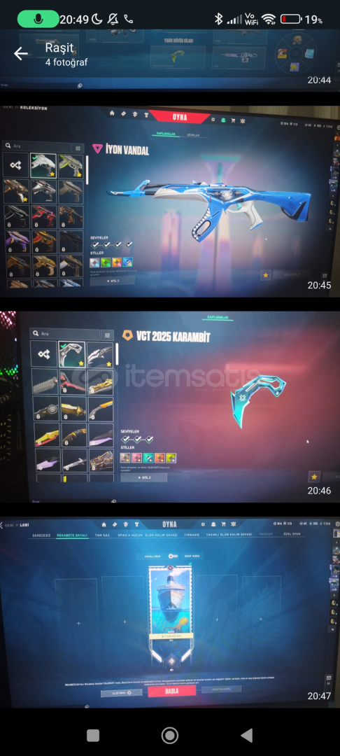 Vct karambit,rgx Vandal,iyon Vandal,zamanın ötesi Vandal ve birde battle pass aciktir.hesap 160 level