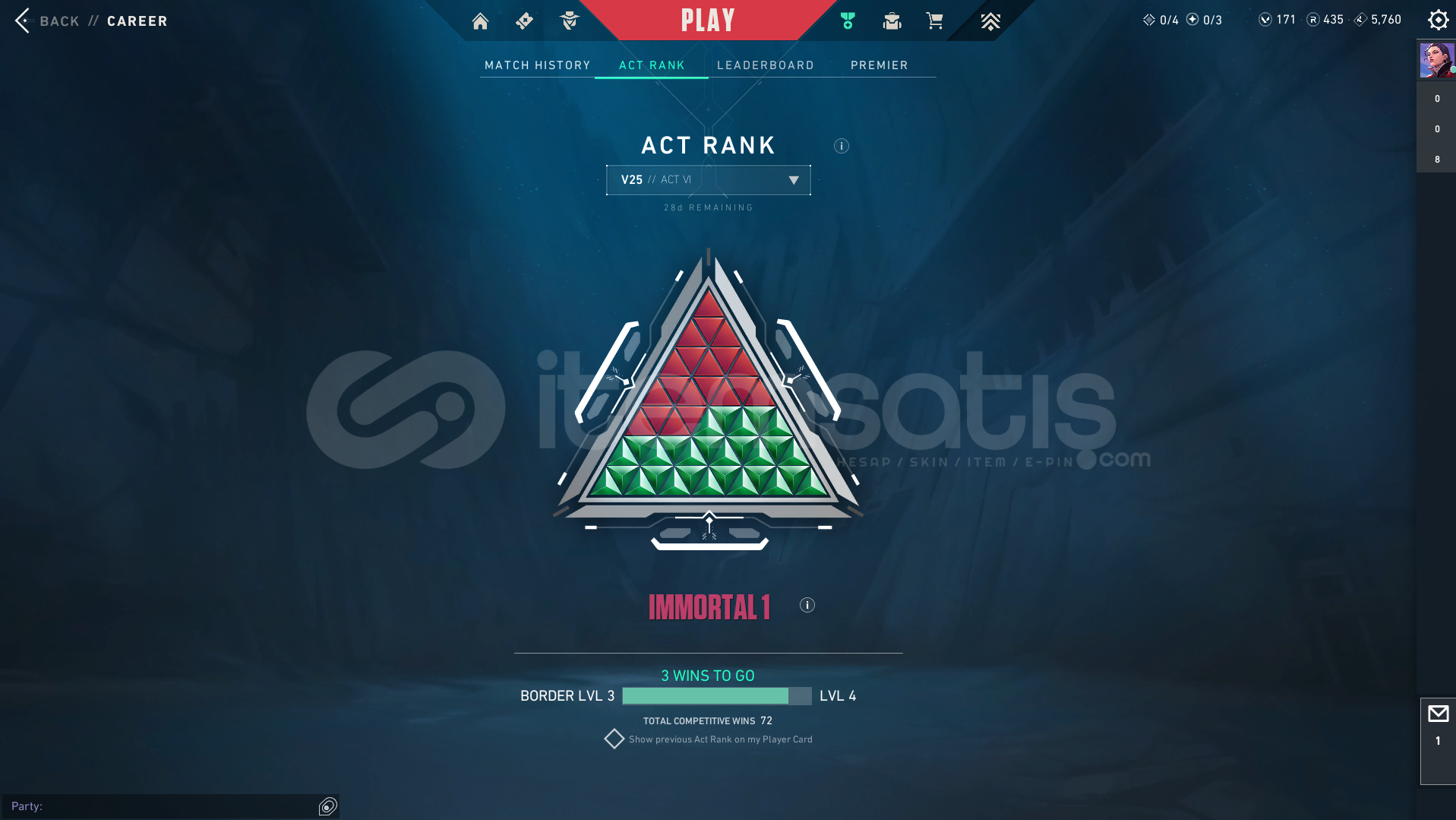 Hesap 288 Leveldir.Hesapta 175 VP , 365 Radyanit mevcut.Hesap anlık olarak Yücelik 3 rankındadır.Önceki sezonlarda immortal olarak bitirmiştir. İmmortal uğurluklar mevcuttur.Hesapta 2 Kere battlepass alınmıştır.Yükseltilebilir Skinler :Asil BuckyKaos PhantomChampions 2024 PhantomYağmacı VandalYağmacı KarambitChampions 2024 Katanaİyon OperatörTFT Oynayanlar için birkaç chibi karakter mevcu...
