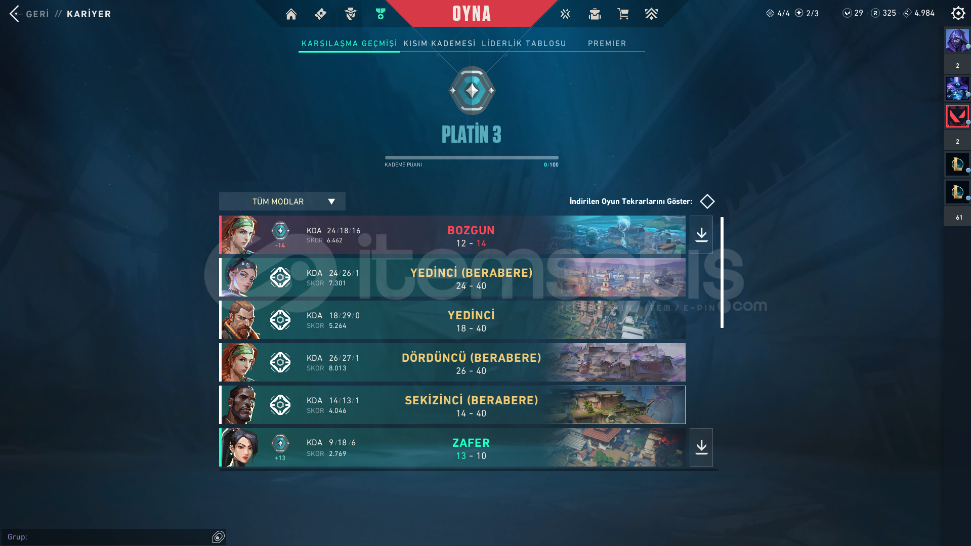 Hesap 194 lvl olup 2020 yılında açılmıştır şu an rankı plat 3 max gördüğüm de dia 3