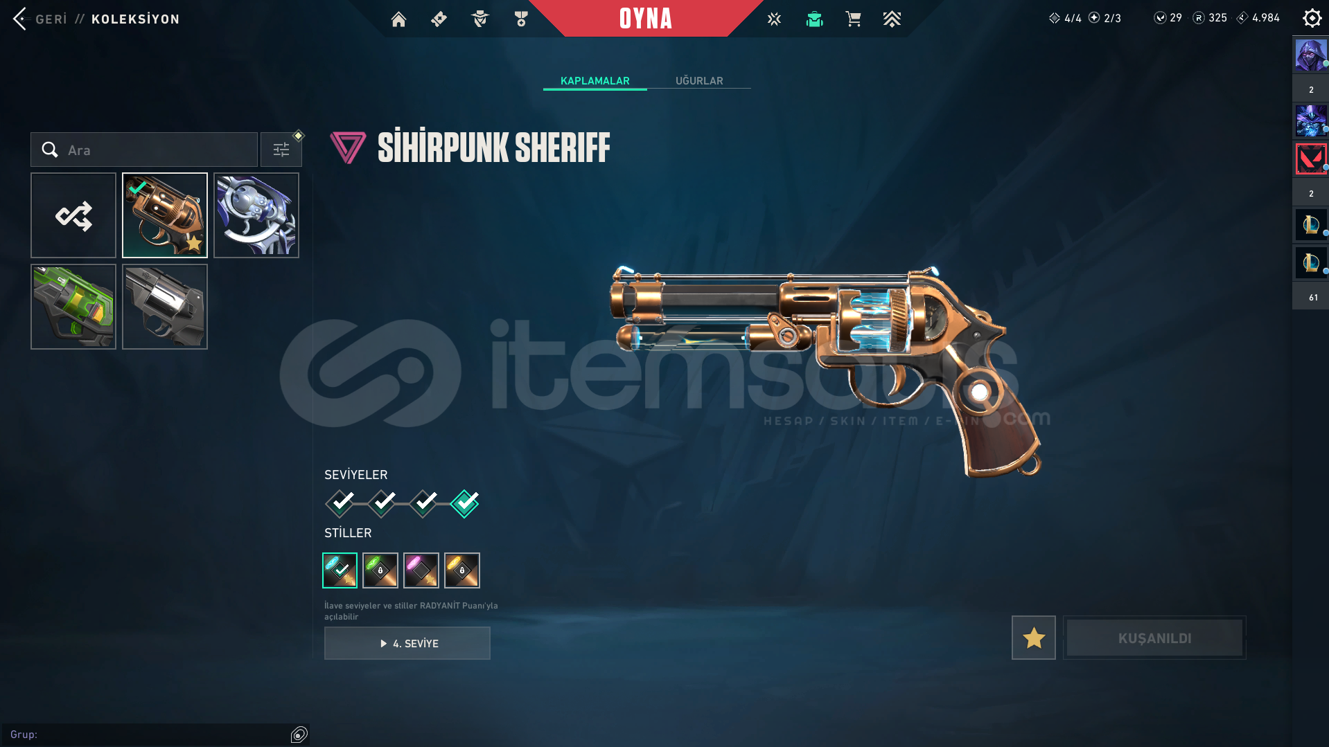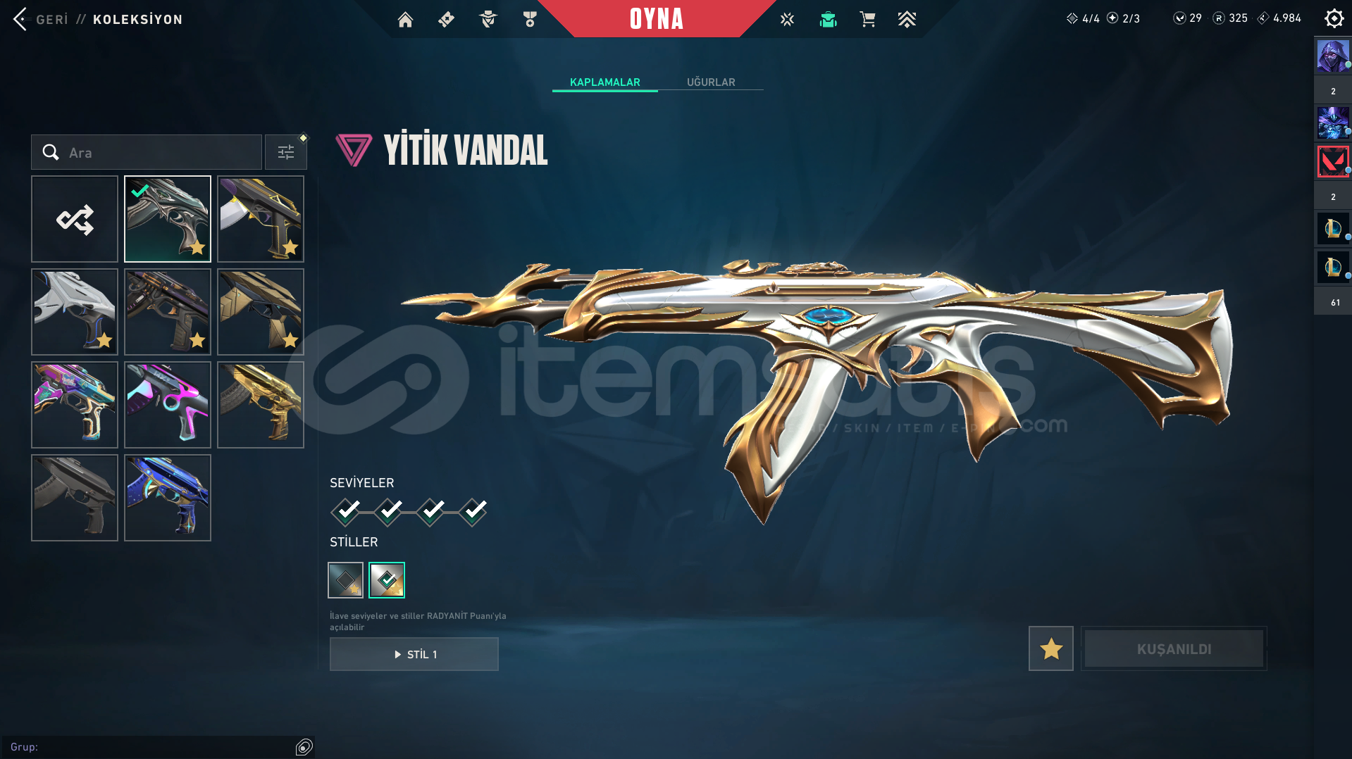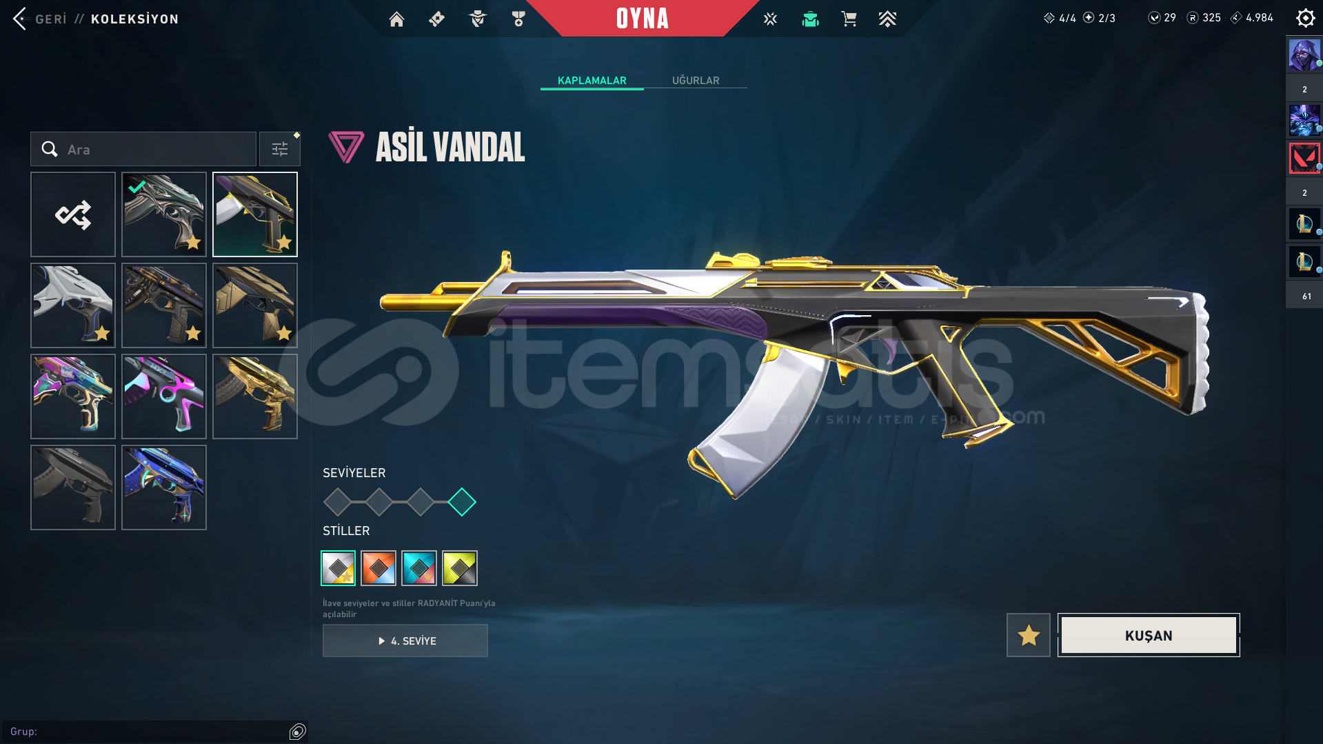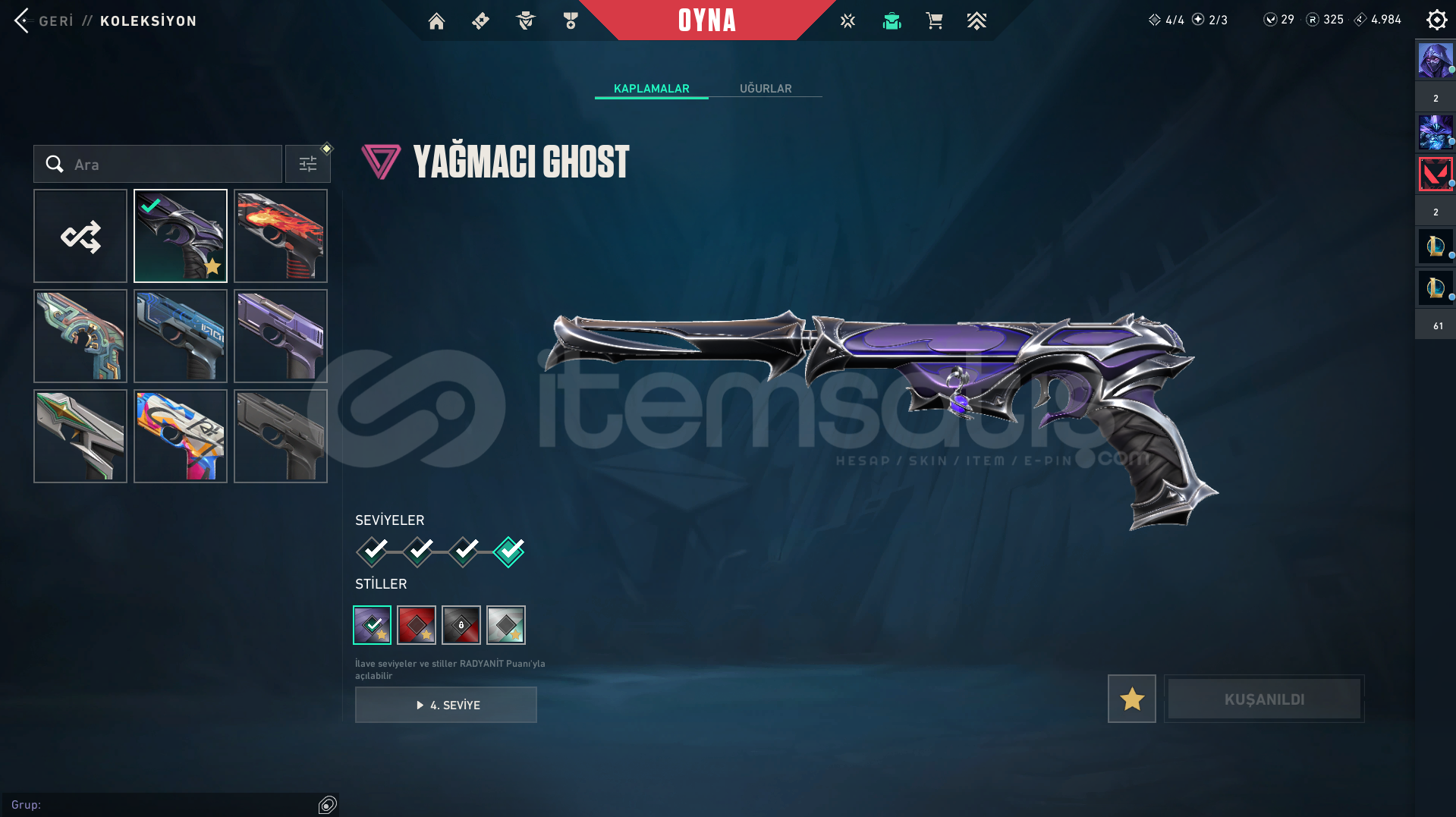 YAĞMACI OP,ODİN,SPECTRE,GHOST,PHANTOM VE YAĞMACI KARAMBİT BULUNMAKTADIR (TÜM SKİNLER FULLENMİŞTİR HER RENKLERİ AÇIK VE 4 LVL DİR.)