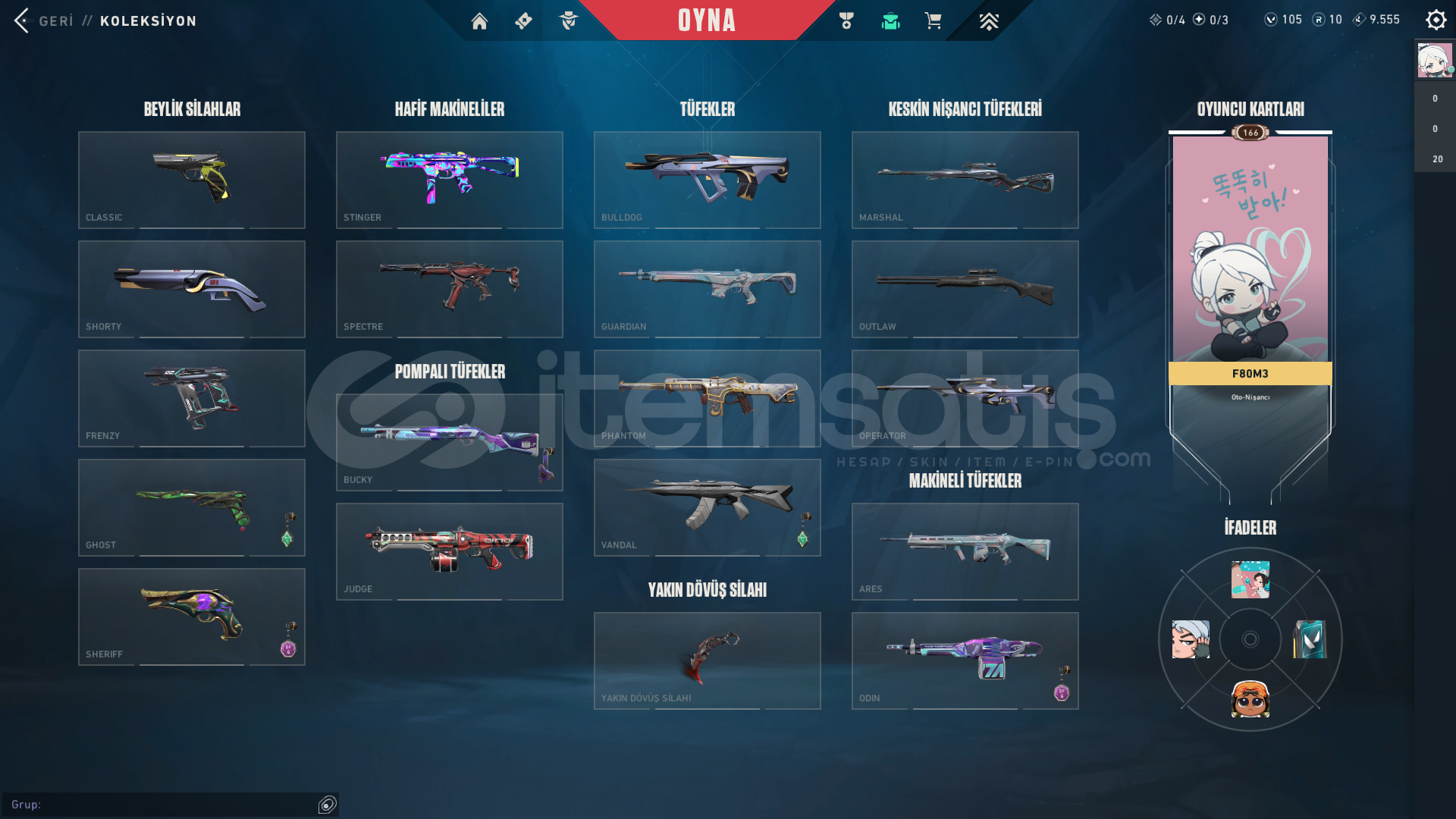 Asil Vandal Vardır.Zamanin Ötesi Vandal Vardır.Yıldız Belası Vandal Vardır.Yagmaci Vandal Vardır.Ion Phantom Vardır.Seri Tetik Phantom Vardır.Asil Phantom Vardır.Oni Phantom Vardır.Yagmacı Karambit Bıçak Vardır.Semavi Yelpaze Bıçak Vardır.Asil Classic Vardır. Gaia Ghost Vardır.Yagmaci Spectre Vardır.Delipop Judge Vard&#...