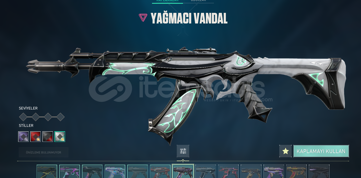 ENVANTER BİLGİLERİBıçaklarUzaylı Avcısı BıçakRGX KarambitVandallarYagmacı VandalSürat Canavarı VandalChampions 2024 VandalCesur Yürek VandalPhantomAsil VandalOperatörEjder OperatörGhost Fatih GhostSpectre Sİhirpunk Spectre