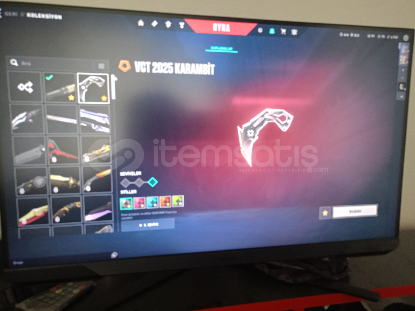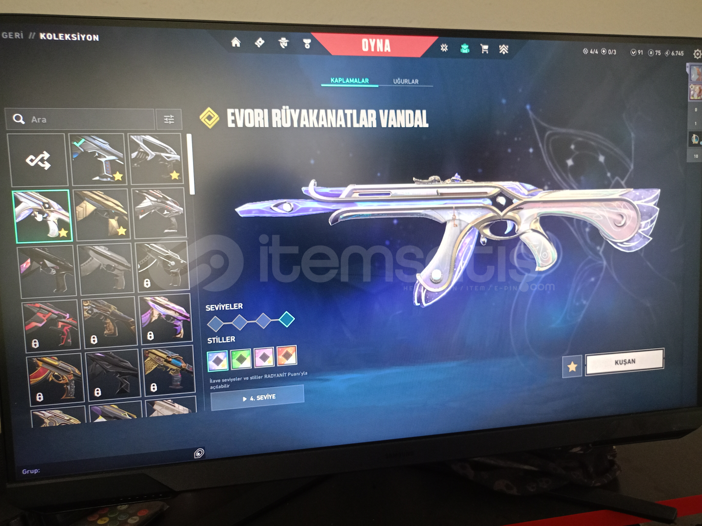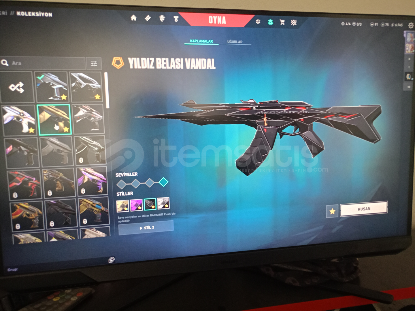 hesaptaki desenlerin fotoğrafı var 2 tane pass açıldı kuronami vandal ve cyrax vandal seri tetik şerif