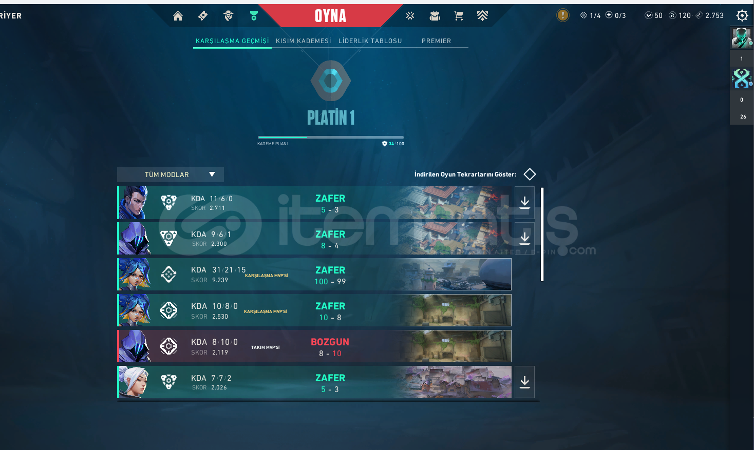 🎯 Valorant Hesap Satışı – Plat 1 | Evori Vandal + Özel Harekat Phantom📌 Seviye: 46📌 Rank: Platinum 1📌 Skinler:Evori (Elderflame) Vandal 🔥Özel Harekat Phantom📌 Mail ve Riot ID değiştirilebilir ✅📌 VP: 50💼 Hesap tamamen sorunsuzdur. İlk sahibi benim. Mail ve kullanıcı adı değiştirilebilir, alıcı üzerine tamamen geçirilebilir.💸 Fiy...