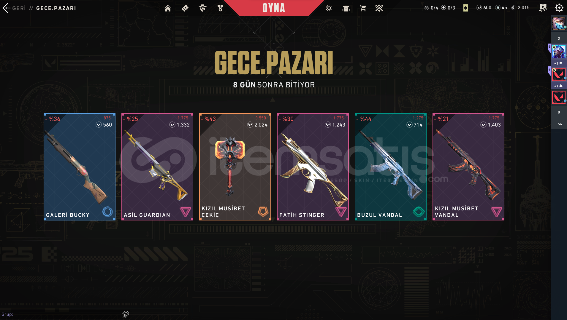 Hesap Dia ranktır içinde 600 vp var ve RGX 2 - Arcane 2 set var ayrıca kaos vandal ve yağmacı ghost var tüm skinlerin seviyeleri maxlanmıştır her ajan açıktır hesap yeni zaten 5-6 aylık oyun sıktı diye satıyorum mail ve her şeyi üstünüze devredeceğim alana hayırlı olsun pazarlık olabilir.