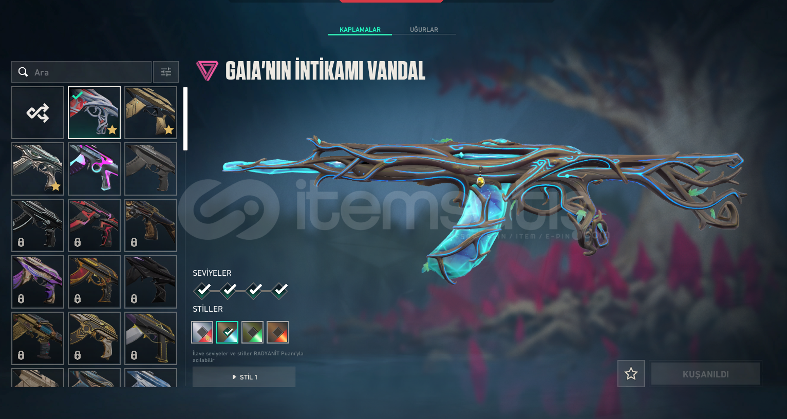 Valorant RGX KATANALI HESAPPAZARLIK YAPILIRHESABIN İCİNDEKİLERGAİA VANDALYILDIZBELASİ VANDALYİTİK VANDALYAGMACI PHANTOMİYON PHANTOMASİL CLASİCSERİTETİK SHERİF2 BP
