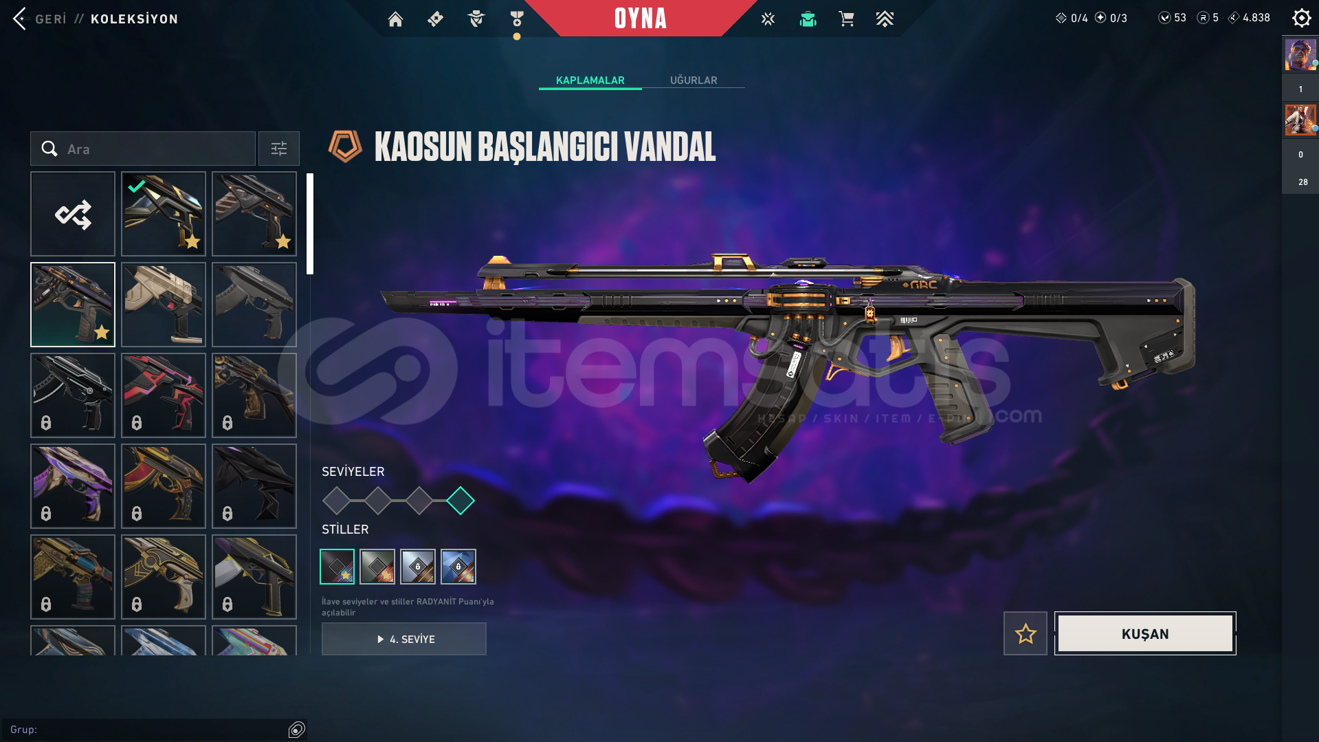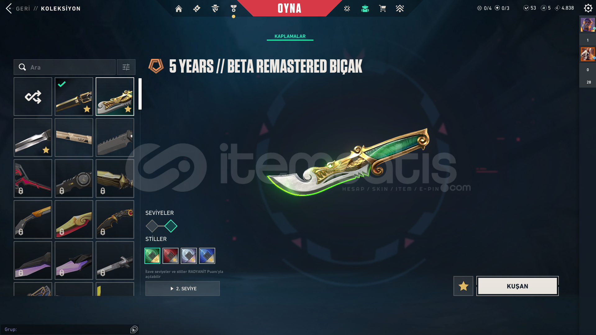 Hesapta:Champions 2025 Seti Vardır5 Years Beta Remastered Seti VardırFaz Koruyucu Seti VardırKaos Vandal VardırOni Ares VardırVe bir tane battlepass vardırPazarlığa açığım tekliflerinize açığım hesabın ilk sahibi benim mail hiç değişmemiştir.