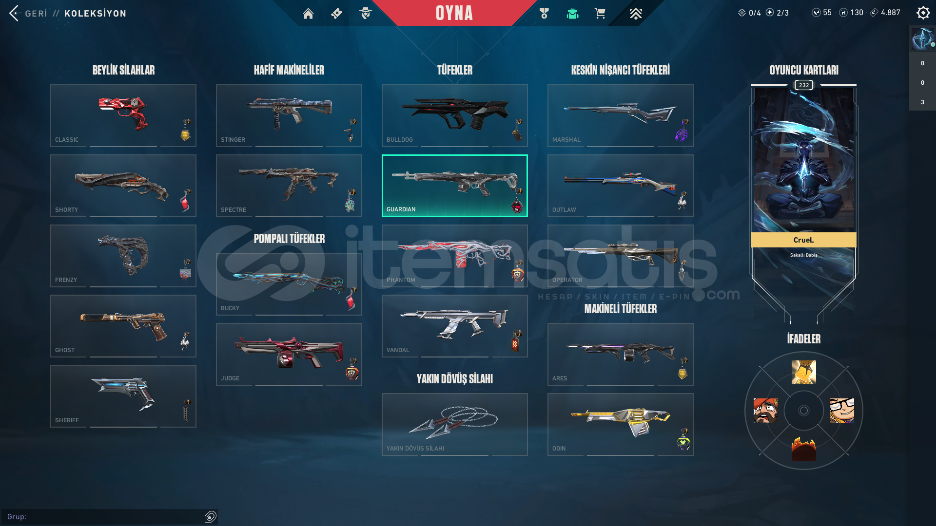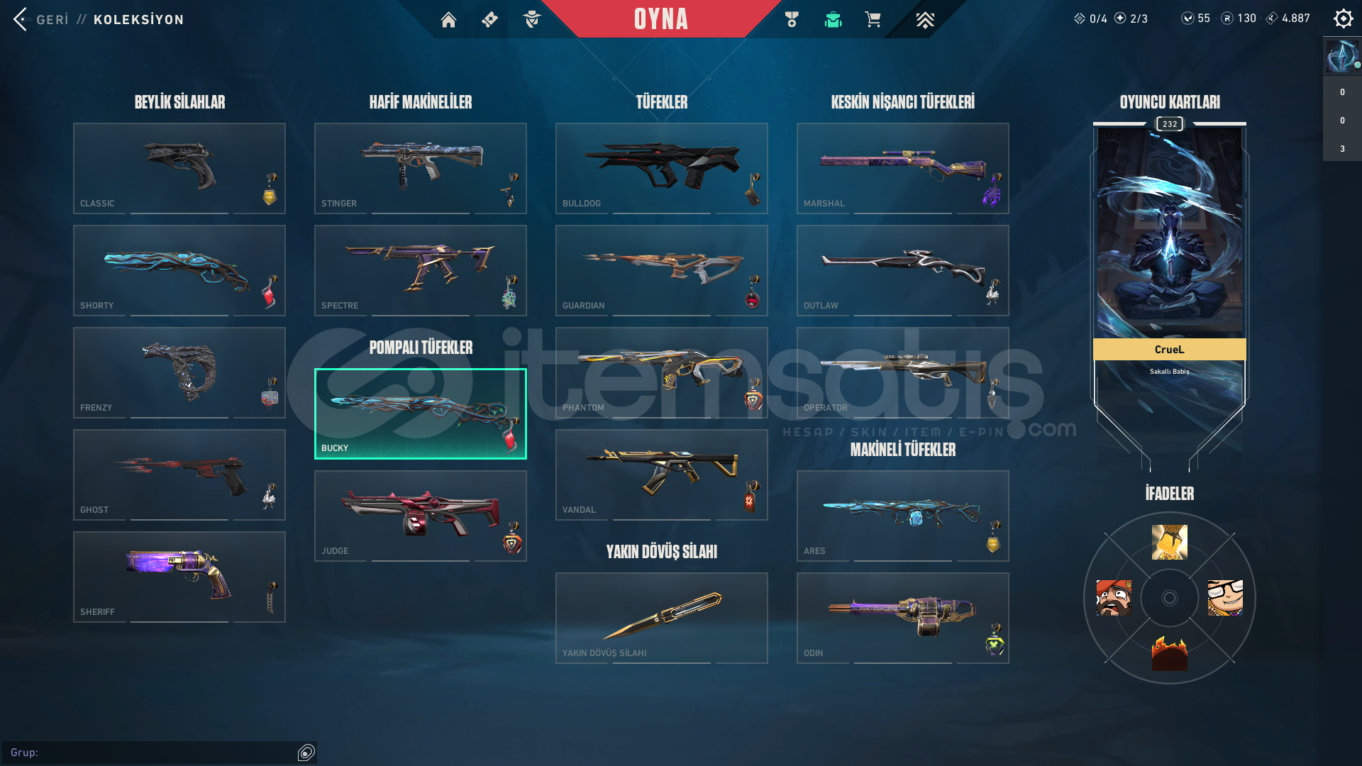 toplamda 170 adet skin vardu dolular dolusu bir hesdap