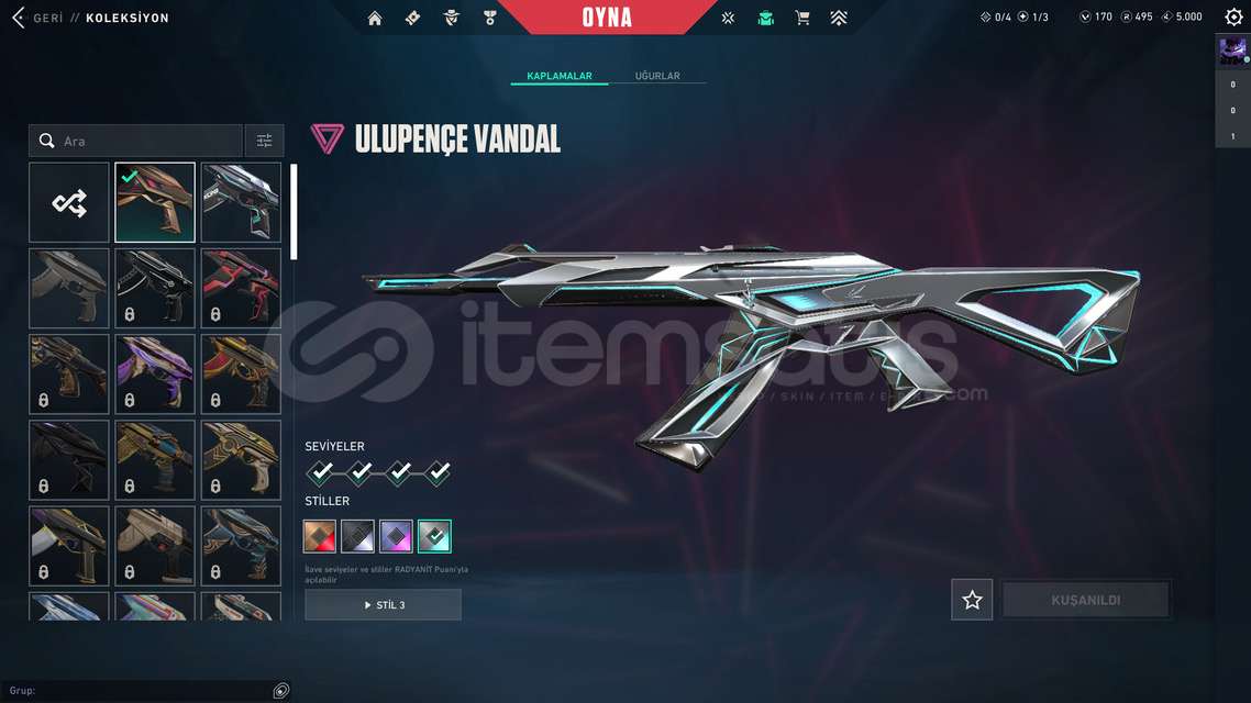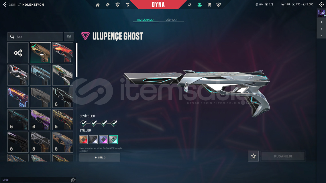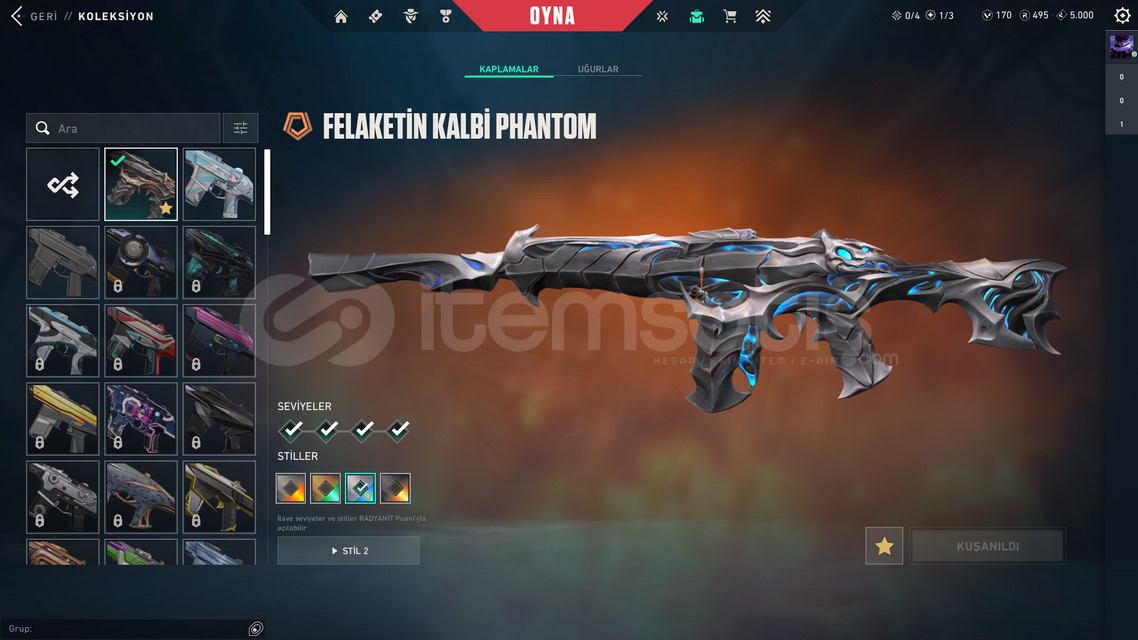 Hesap rus hesabıdır156 seviyededirelması görmüştüriçinde ulupençe full set ve felaketin kalbi phantom vardırdiğer skinler battle pass ve normal skindir