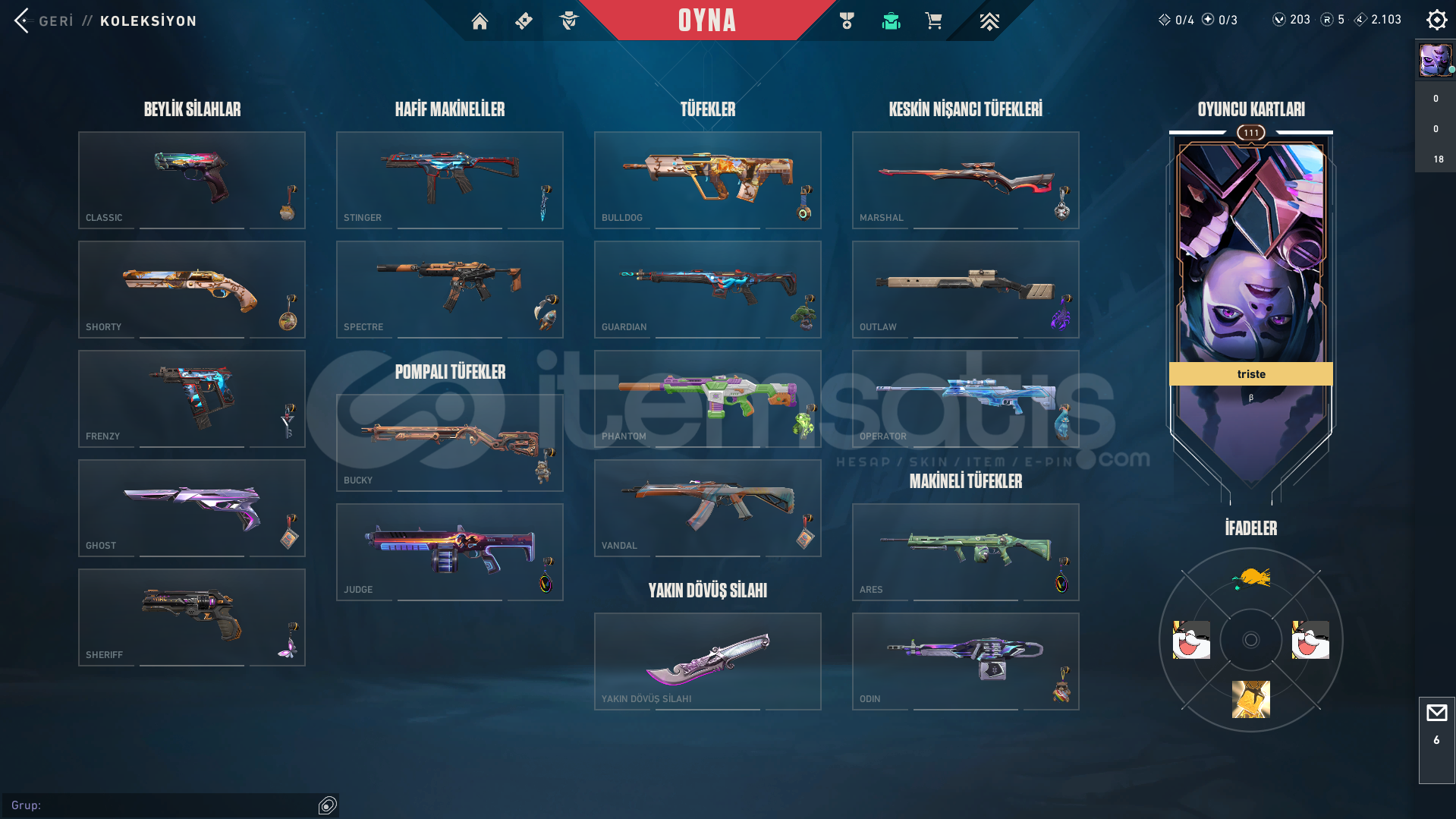 Hesap Açılma Tarihi: 2022 Hesaptaki Toplam Skin: 82 (Battle Pass Dahil) Hesap Seviyesi: 110 Hesap Rütbesi: Gümüş I • Hesaptaki Valorant Puanı: 203 • Hesaptaki Radyanit Puanı: 5 • Hesaptaki Kindgom Kredisi: 721 Hesaptaki Açık Olan Ajan Sayısı: 20 (BANA YAZARSANIZ FIYATTA ANLAŞMA YAPARIZ. PAZARLIK SÜNNETTİR KANKİİİ)