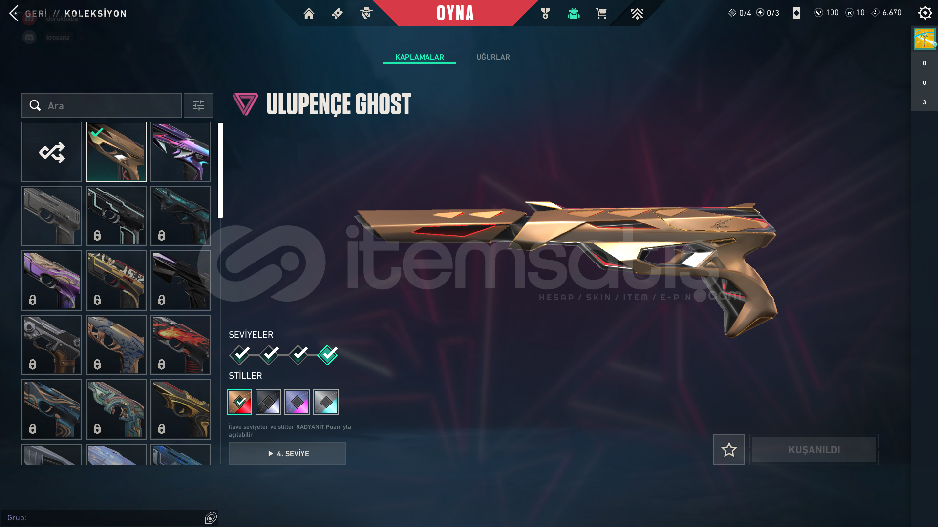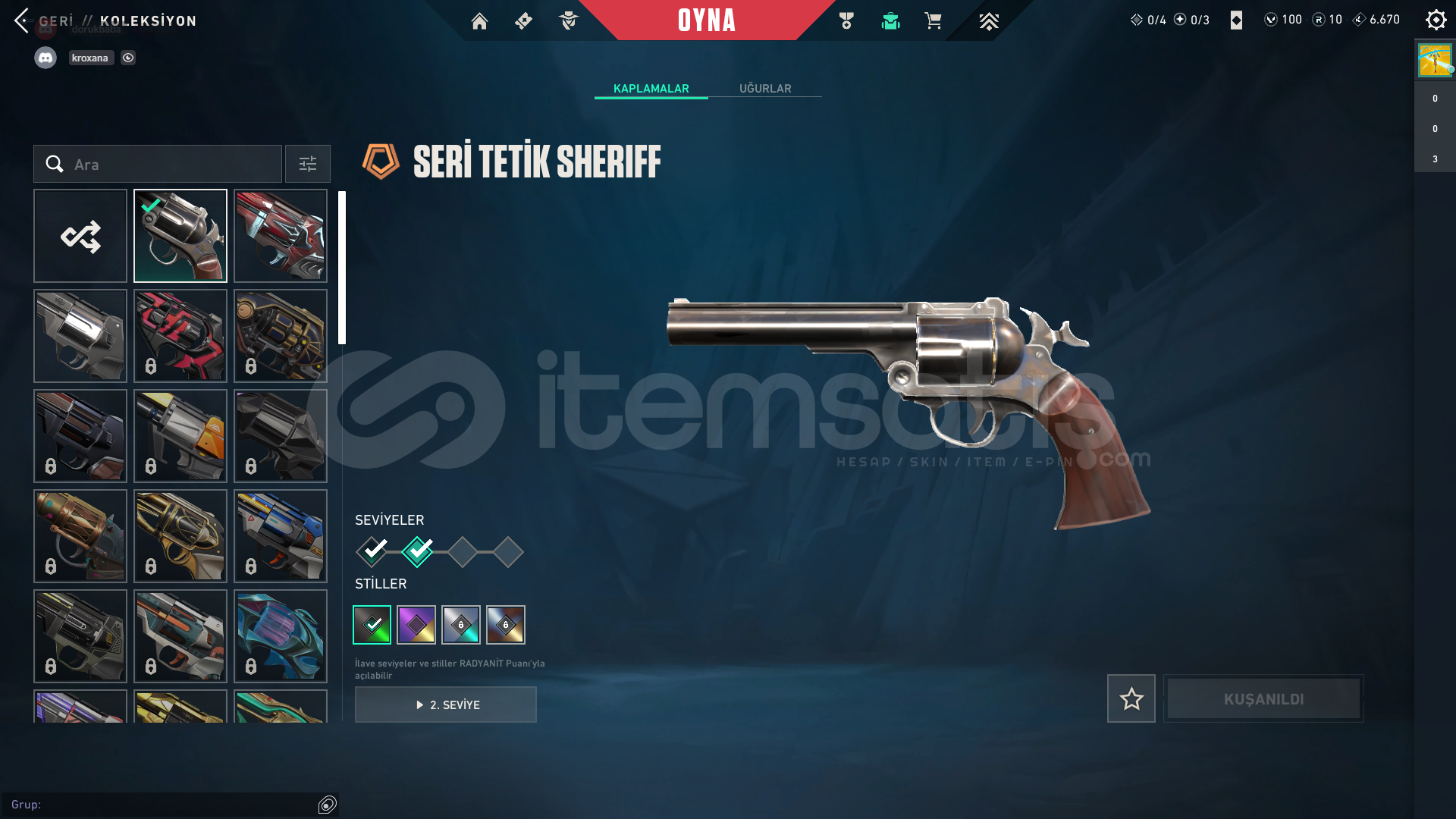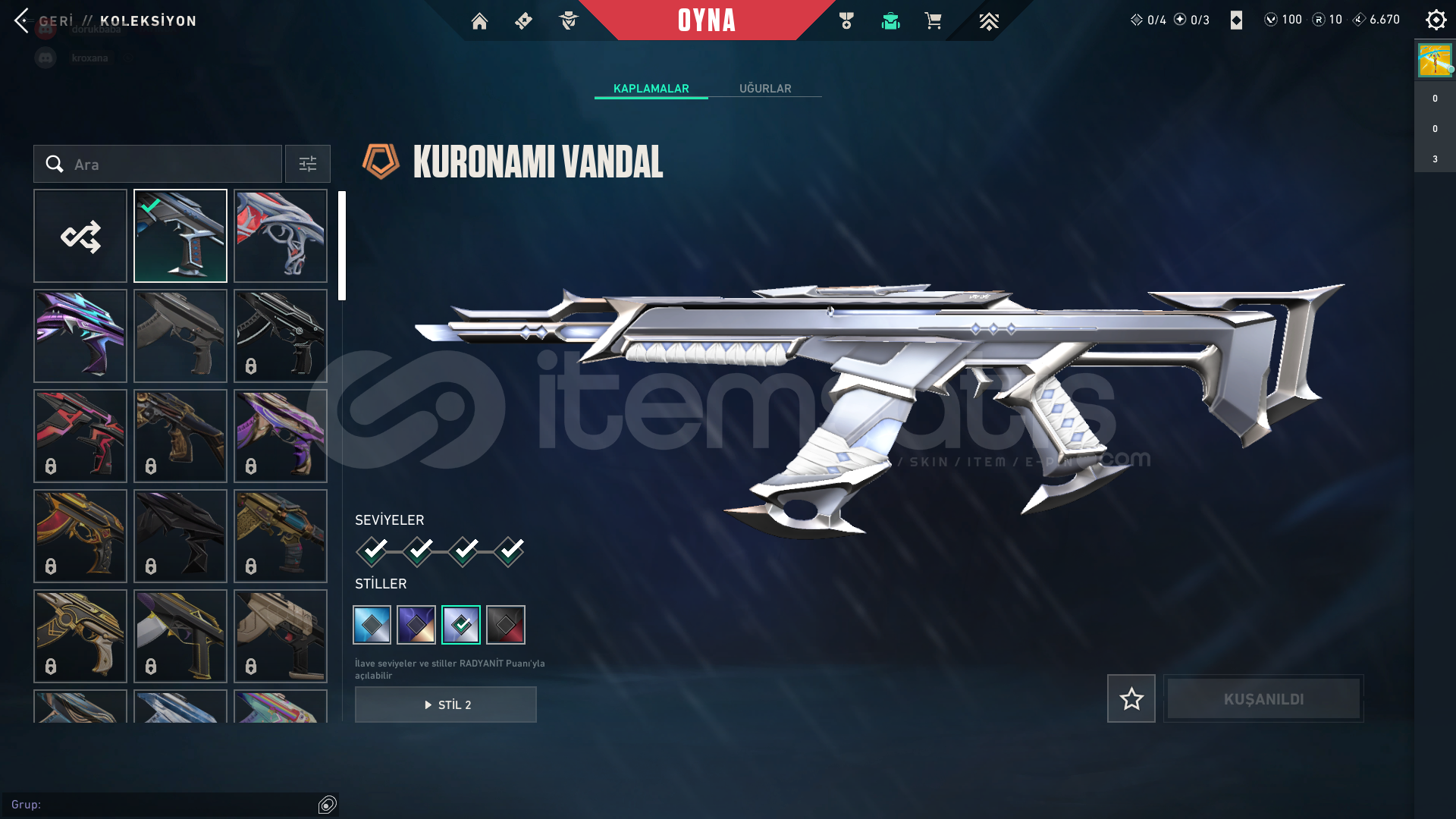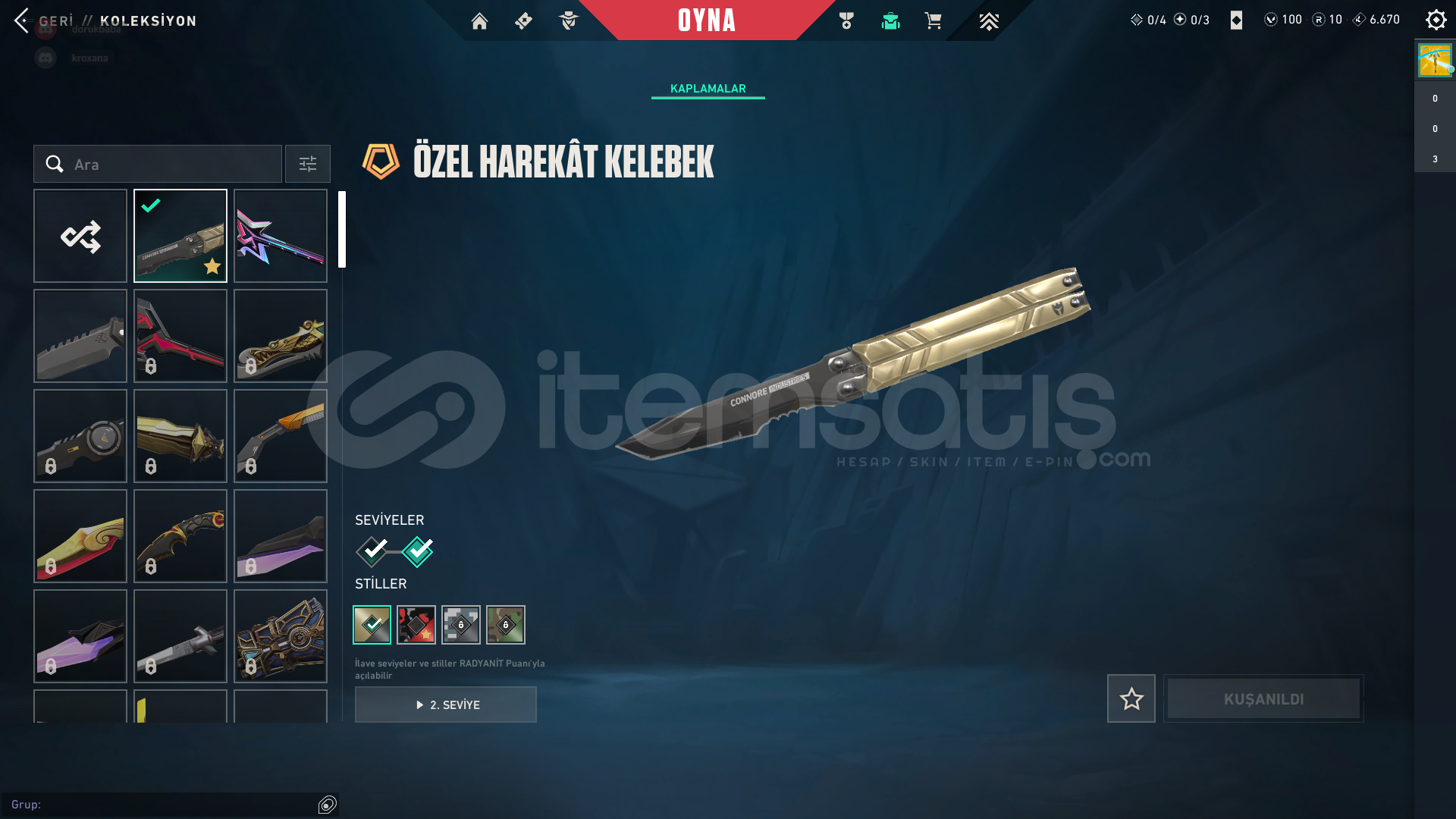 Hesabın İçinde ;• Kuronami Vandal• Gaia Vandal• Seri Tetik Sheriff• Ulupençe Ghost• Özel Harekat kelebek• PassPazarlık yapılır ilk mail vardır mail devir yapılır.