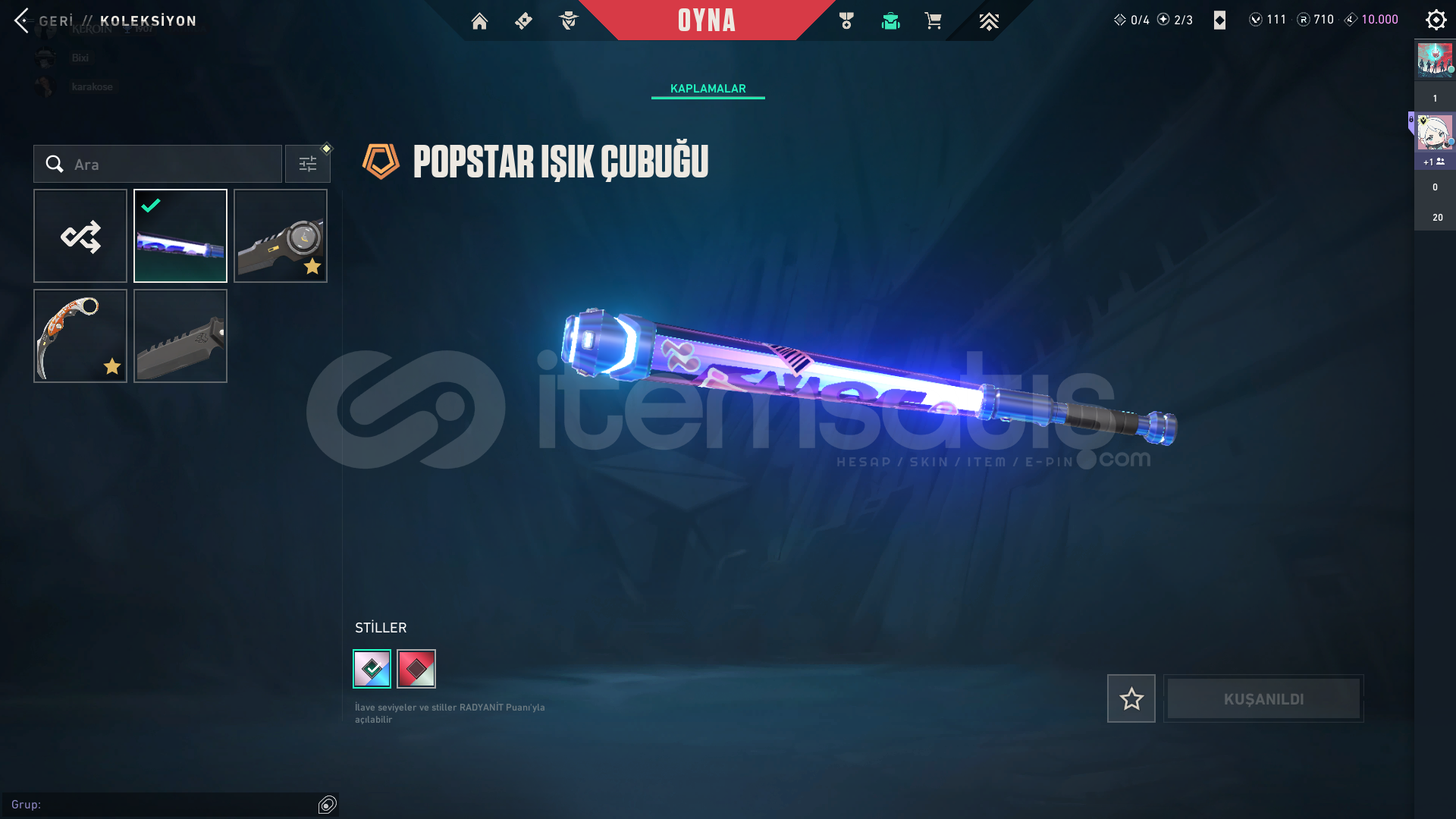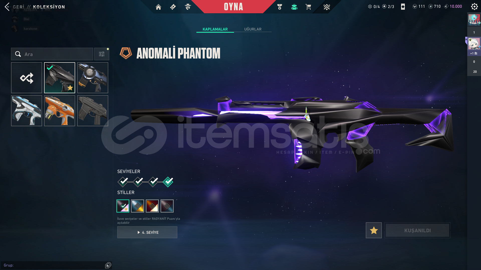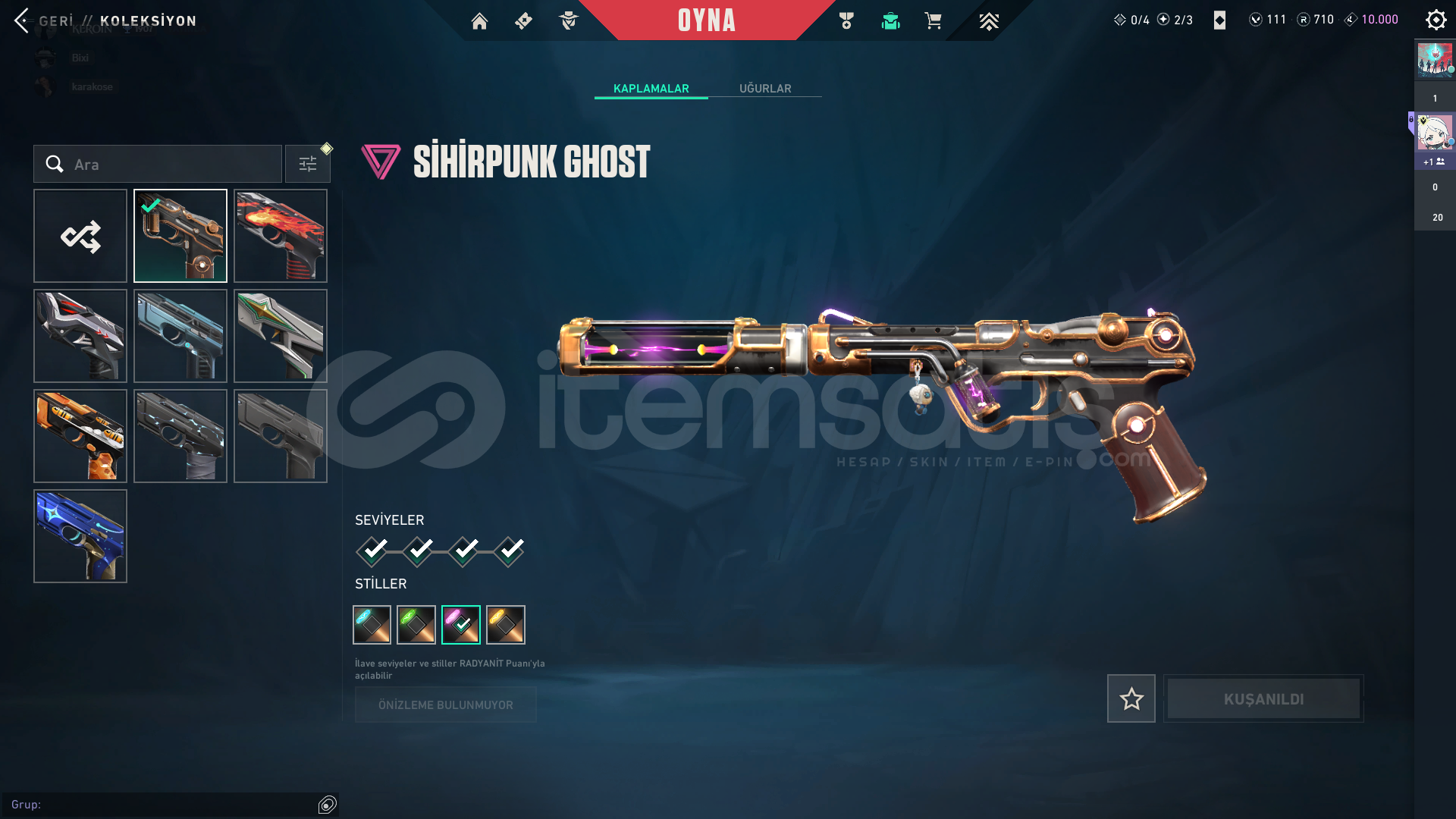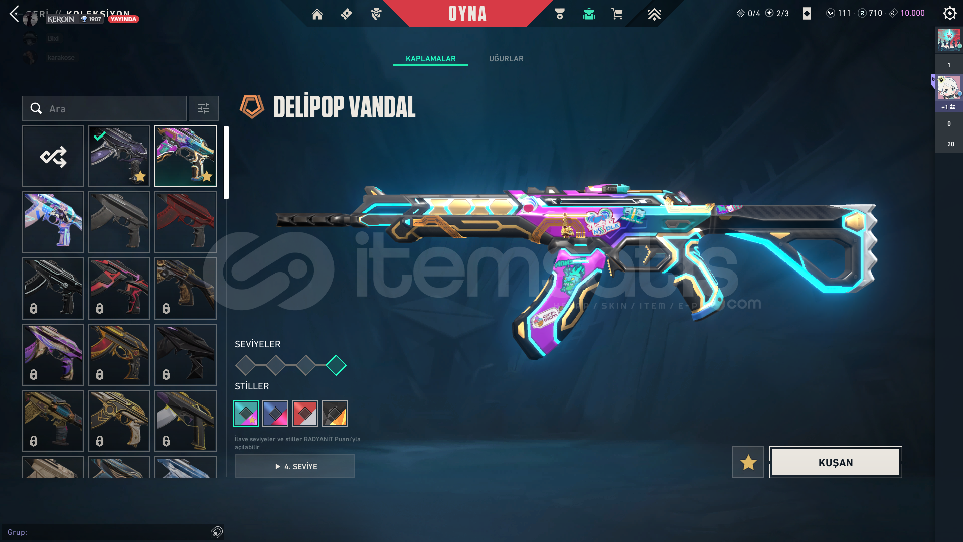 Ekran görüntüsünde skinler gözükmektedir, uzun süredir oynadığım bir hesaptı, üç yüz küsür leveli var.