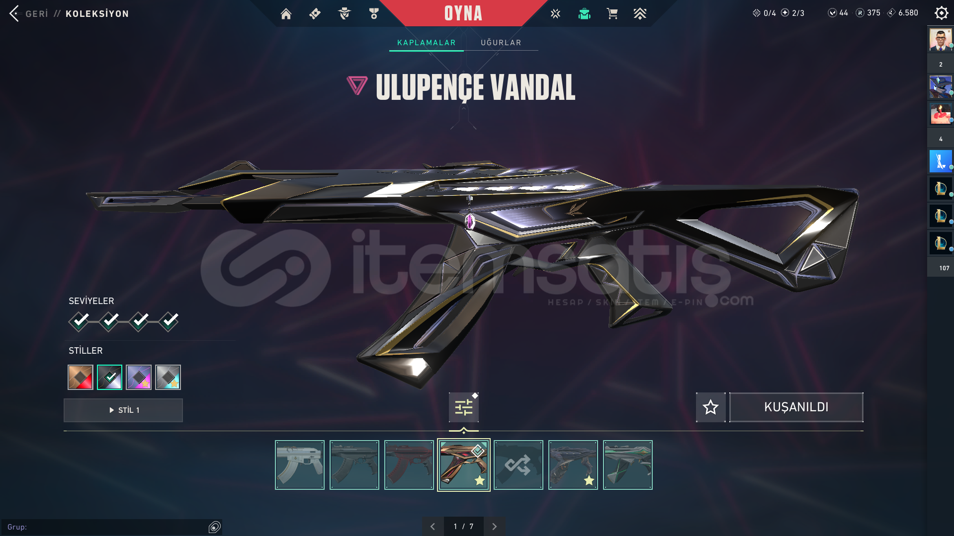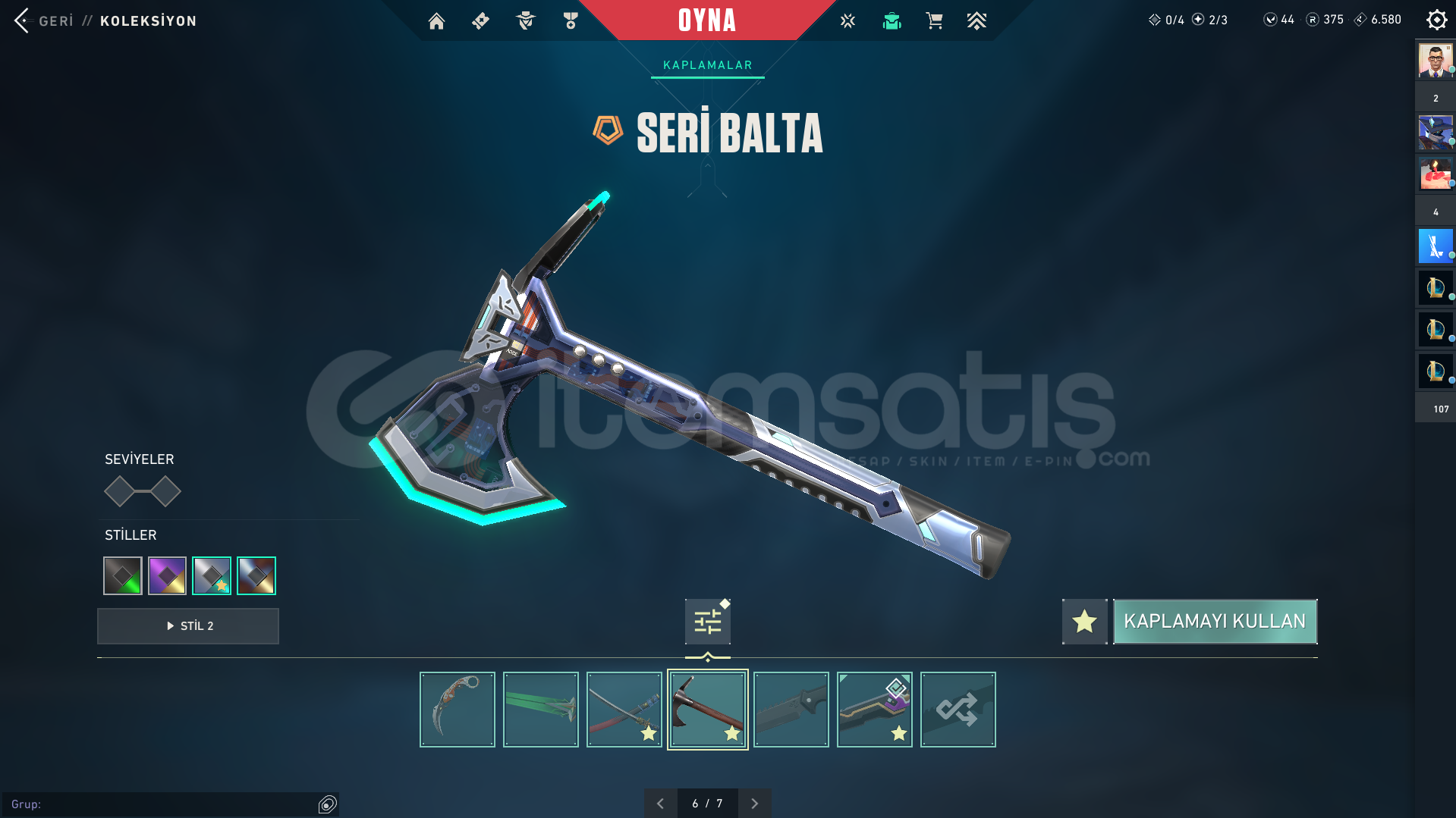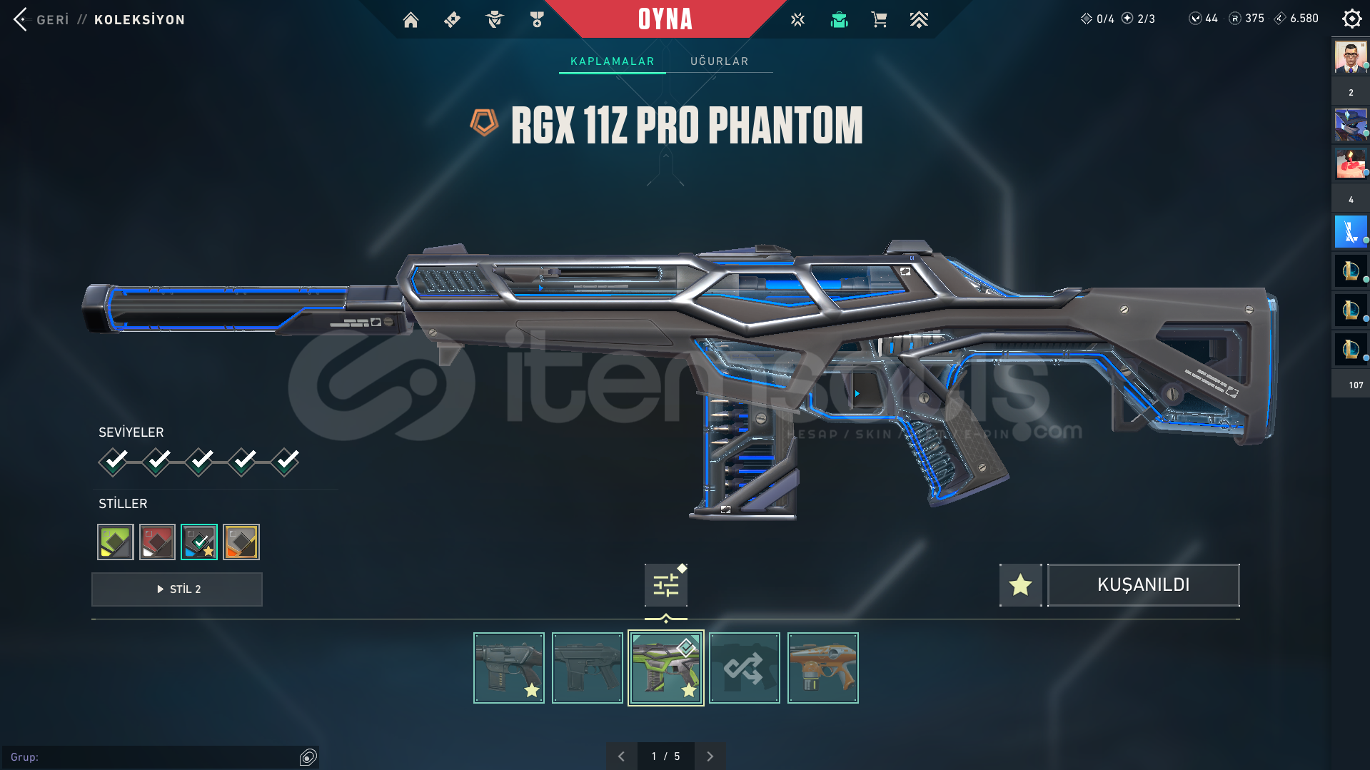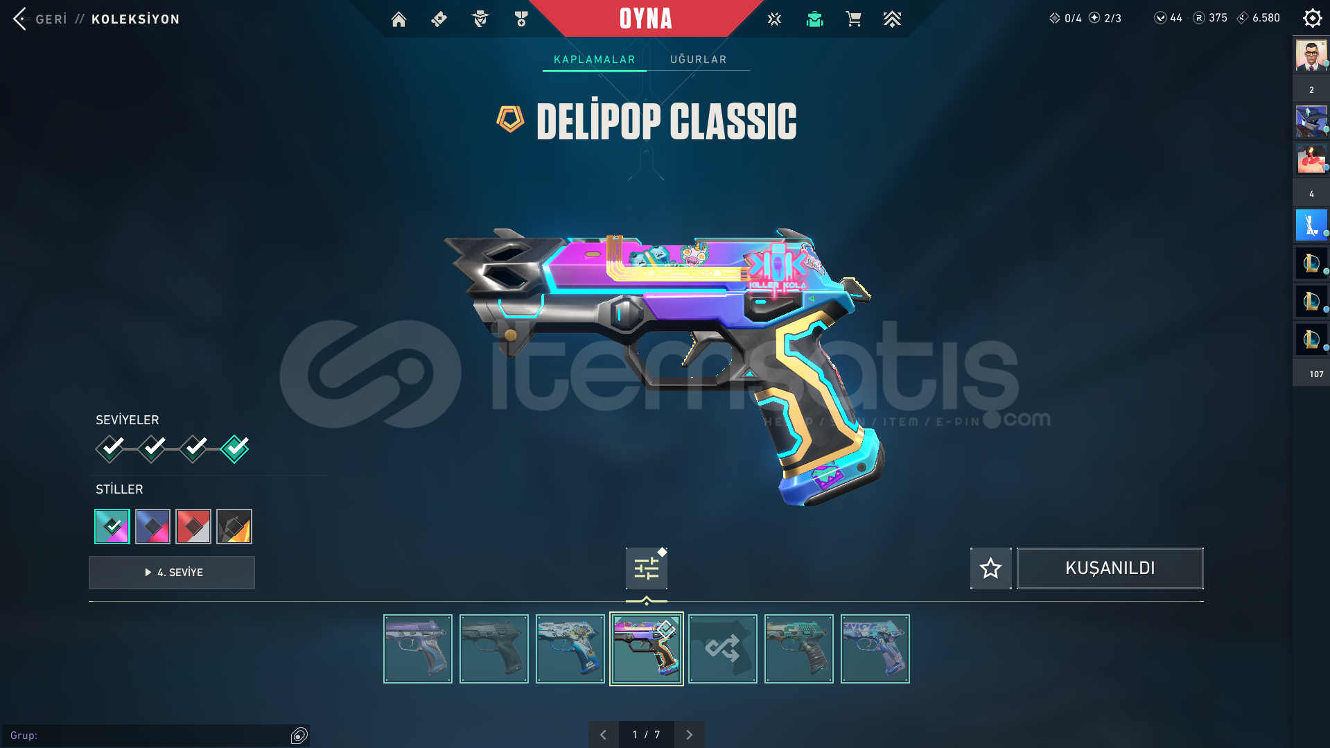 Valorant önceden oynadığım kendi hesabımı satıyorumİÇİNDEKİLERVandallarUlupençe VandalEjder Ateşi VandalNeptün Vandal2 Battle Pass VandalPhantomlarRGX PhantomSeri Tetik Phantom1 Battle Pass PhantomBıçaklarDelipop HançerOni Katana Seri BaltaHızlı Ve Ölümcül Karambit(Battlepass)Kuyrukluyıldız Kılıcı(Battlepass)Diğer SkinlerDelipop ClassicSeri Tetik She...