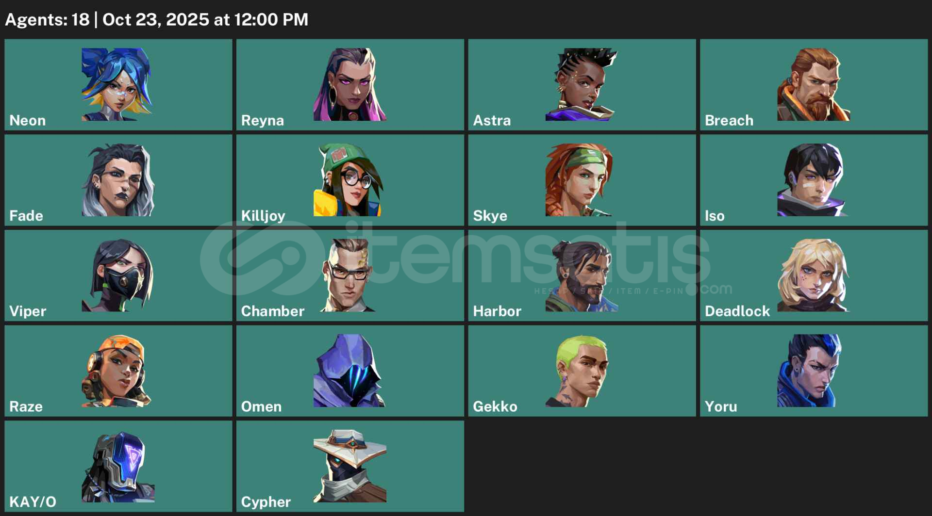 EU | Demir Rank Smurf | Level 100+ | Süresi Dolmuş EP7 3. Bölüm | Tam Erişim/Veri Değişikliği | Bot/Ban Yok | Tam Erişim Ana Hesaplara Güvenli Tüm hesaplar PC, PlayStation ve Xbox'ta oynanabilir. Rütbe ilerlemesi yalnızca PC'de geçerlidir. 6 Skins 31 Buddies 18 Ajan Riot Games, hesaplarının satılmasına izin vermediğinden, Riot Games destek ekibiyle yapılan tüm iletişimler hesabın kilitlenmesine neden olacaktır.