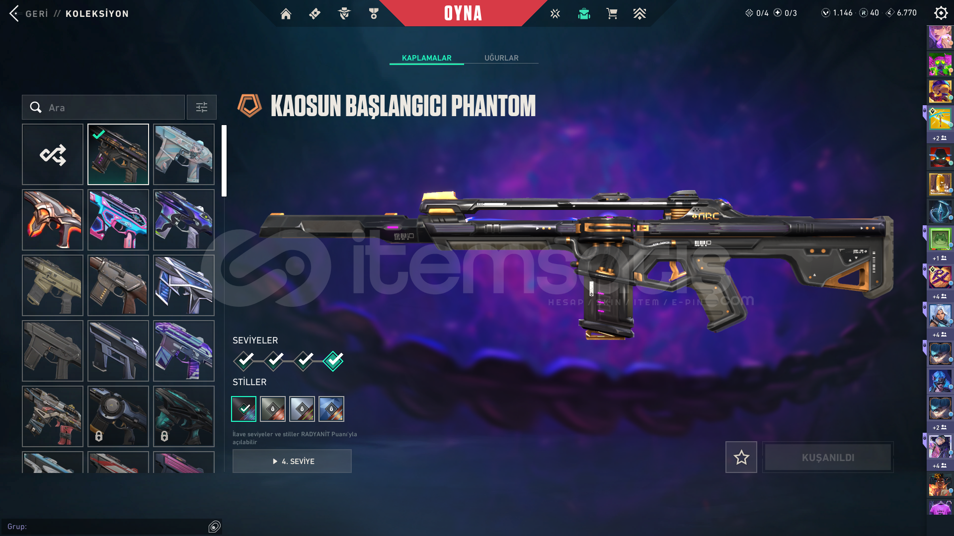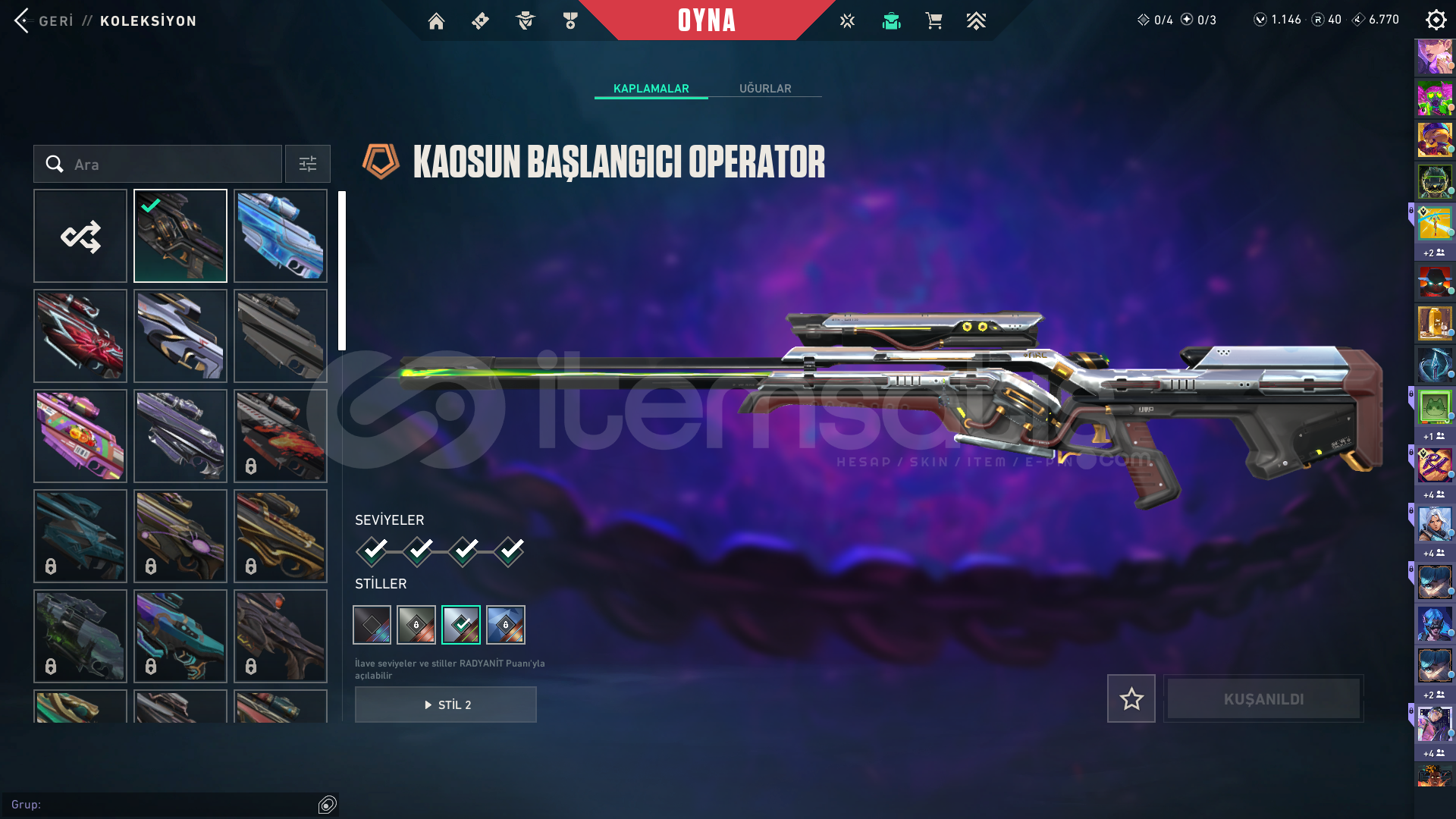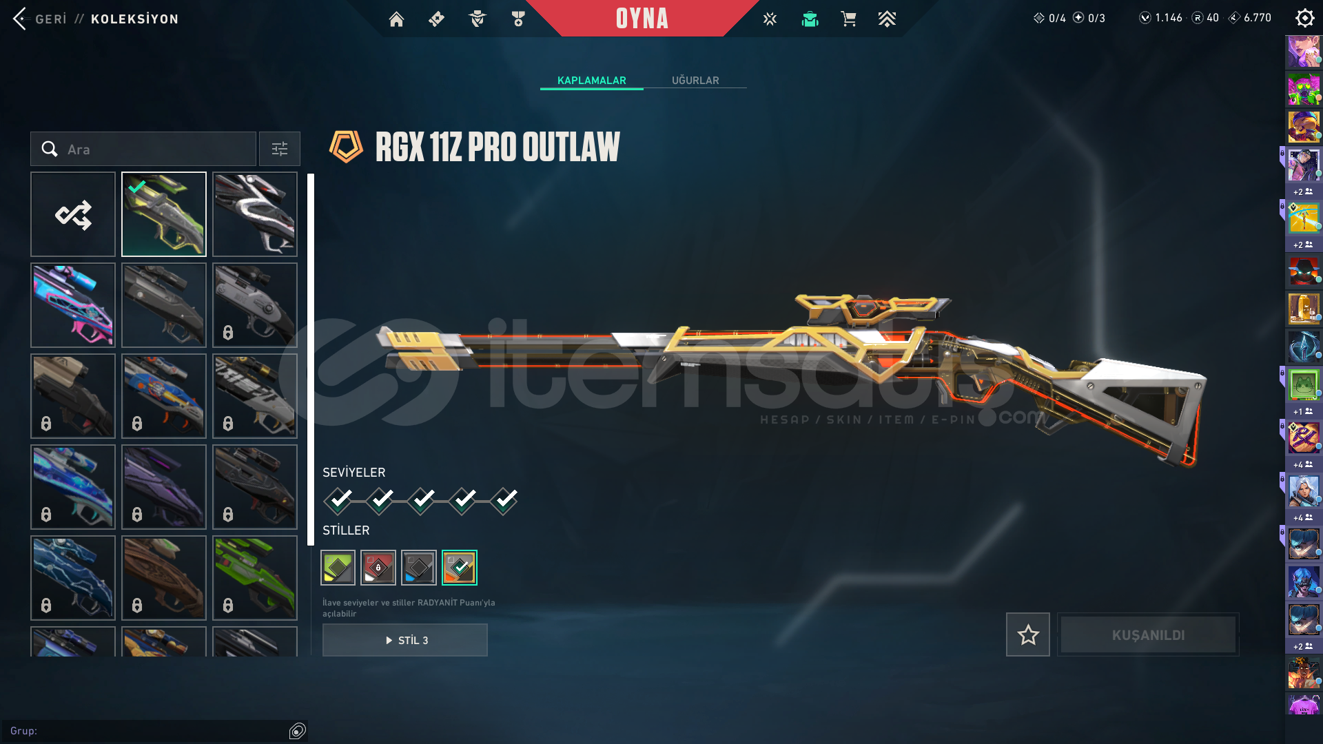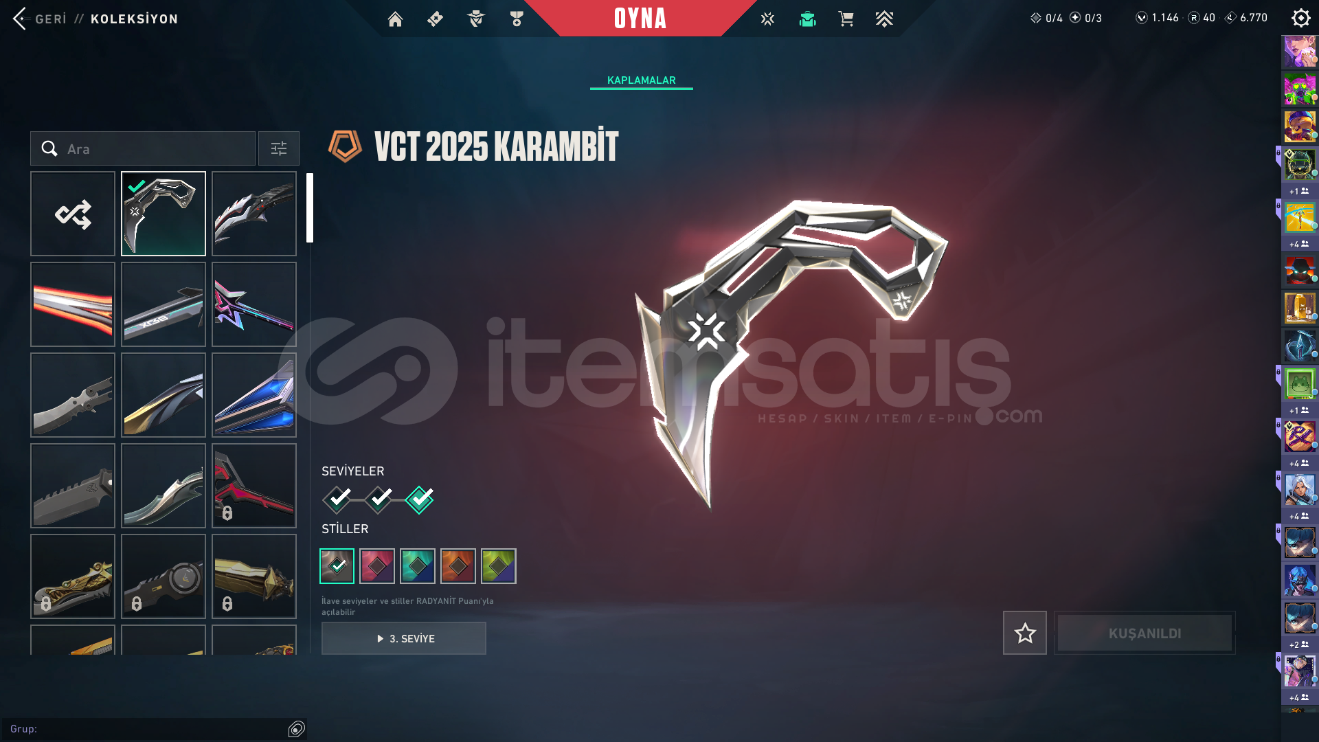 11 adet vandal 2 adet şherif2 adet operatör3 adet phantom3 adet bıçak ve devamı var
